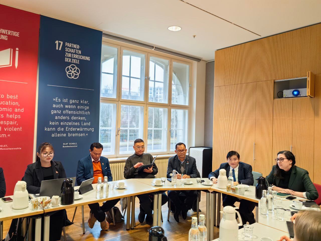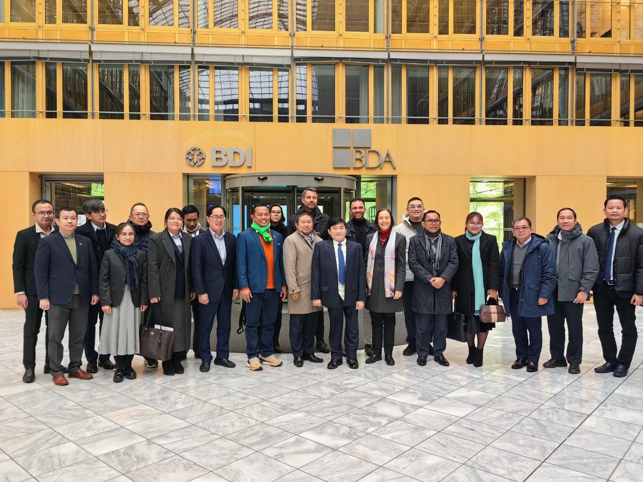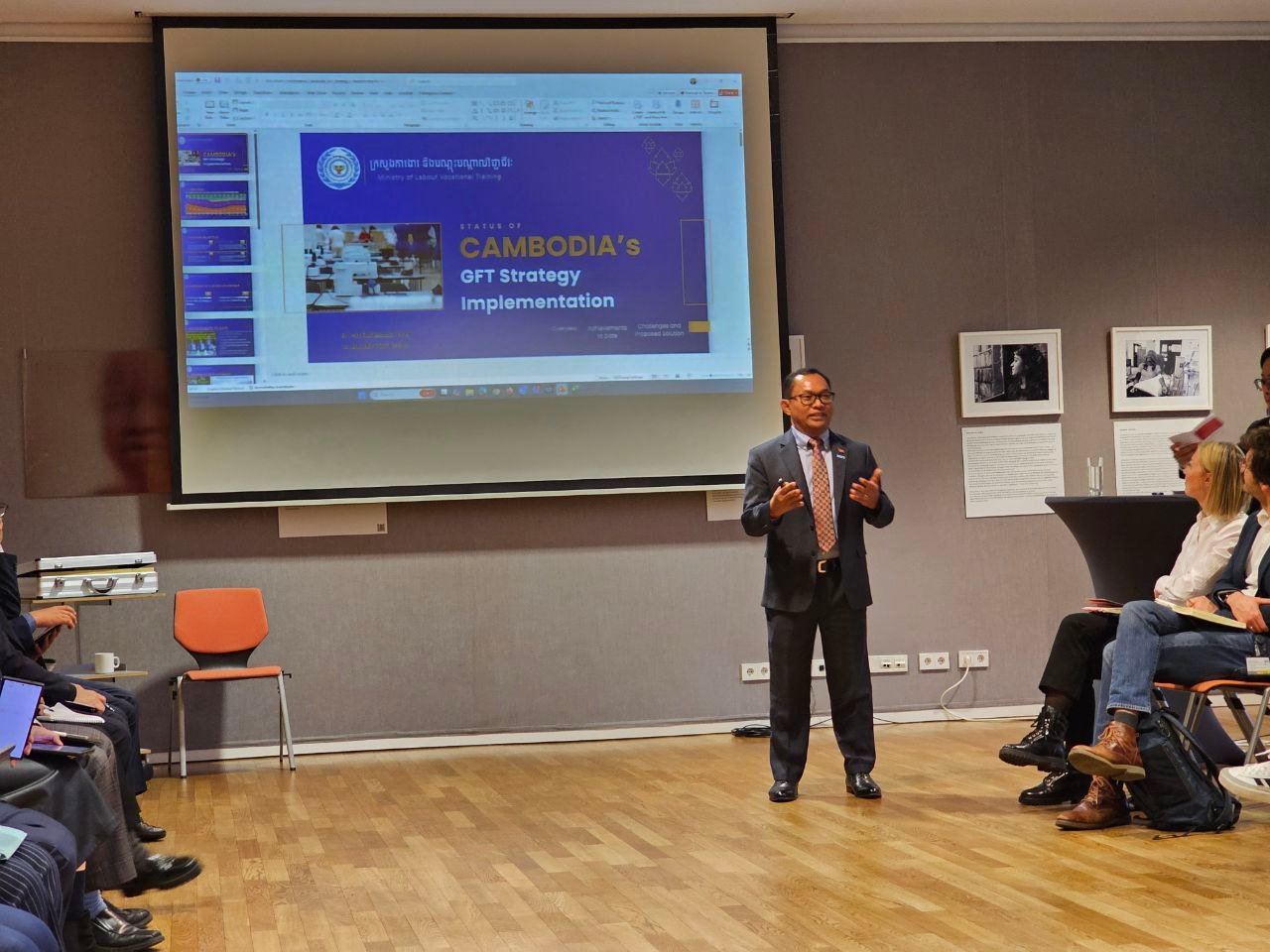 (អាល្លឺម៉ង់)៖ តបតាមការអញ្ជើញរបស់ទីភ្នាក់ងារសហប្រតិបត្តិការអាល្លីម៉ង់ (GIZ) ឯកឧត្តម ហេង សួរ រដ្ឋមន្ត្រីក្រសួងការងារ និងបណ្តុះបណ្តាលវិជ្ជាជីវៈ បានដឹកនាំគណៈប្រតិភូអន្តរក្រសួងកម្ពុជាទៅបំពេញទស្សនកិច្ចនៅសាធារណរដ្ឋសហព័ន្ធអាល្លឺម៉ង់ ចាប់ពីថ្ងៃទី១៣ រហូតដល់ថ្ងៃទី១៧ ខែមករា ឆ្នាំ២០២៥។ ដំណើរទស្សនកិច្ចនេះ គឺដើម្បីស្វែងយល់អំពីគោលនយោបាយ និងច្បាប់នានាពាក់ព័ន្ធនឹងវិស័យវាយនភណ្ឌ កាត់ដេរ ស្បែកជើង និងផលិតផលធ្វើដំណើរនិងកាបូប នៅក្នុងសហគមន៍អឺរ៉ុប និងអាល្លឺម៉ង់។