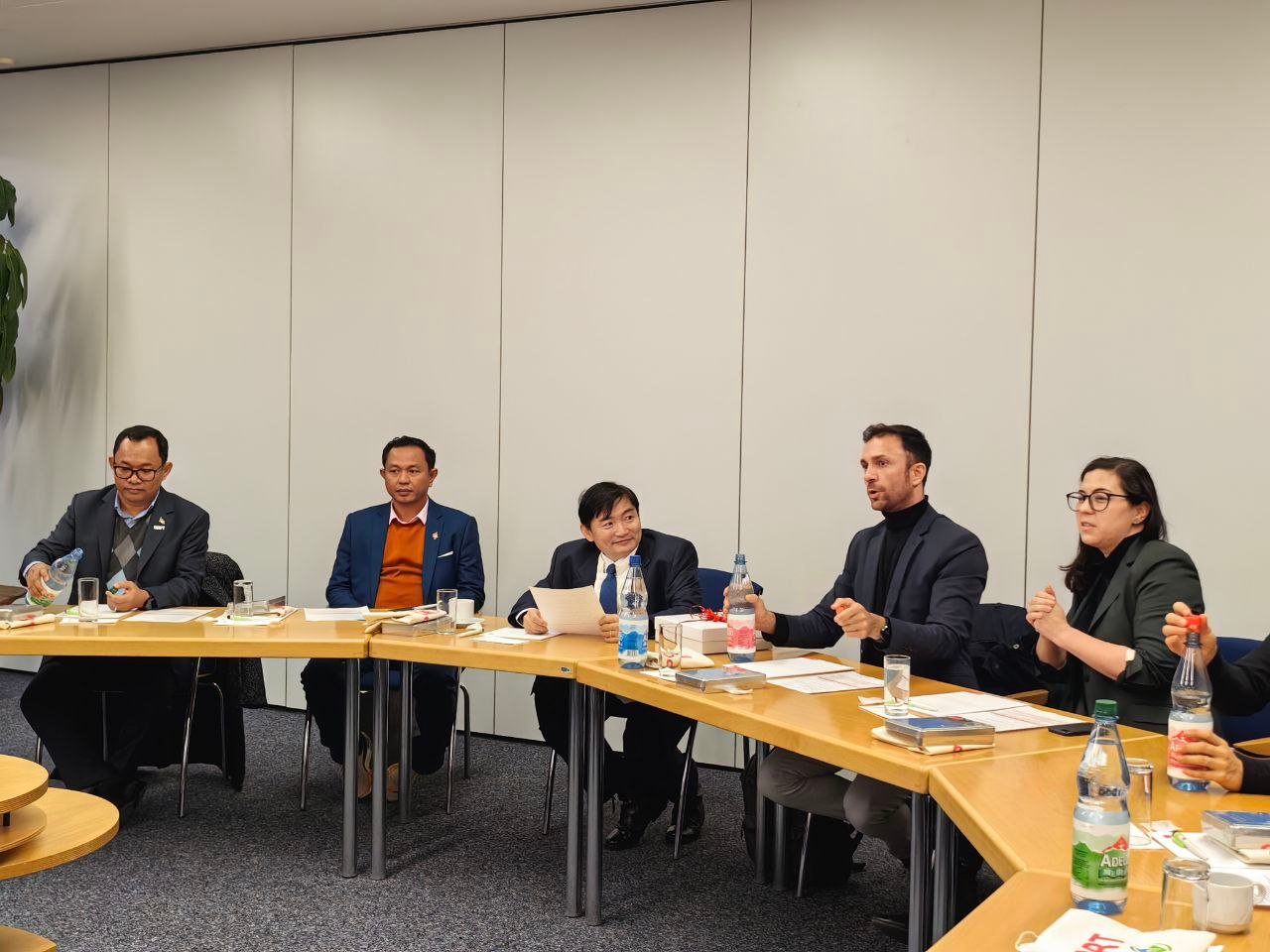 ក្នុងដំណើរទស្សនកិច្ចនេះ គណៈប្រតិភូអន្តរក្រសួងកម្ពុជា បានជួបពិភាក្សាការងារជាមួយតំណាងគណៈកម្មការអឺរ៉ុប (EU Commission), តំណាងនៃក្រសួងការងារ និងសង្គមកិច្ចអាល្លឺម៉ង់, តំណាងនៃក្រសួងសហព័ន្ធសម្រាប់កិច្ចសហប្រតិបត្តិការនិងអភិវឌ្ឍន៍សេដ្ឋកិច្ចអាល្លឺម៉ង់, តំណាង IndustriAll, តំណាងសហព័ន្ធនិយោជក, សហព័ន្ធសហជីពអាល្លឺម៉ង់, តំណាងស្ថាប័ន ACT, និងក្រុមហ៊ុនម្ចាស់ម៉ាកសំខាន់ៗមួយចំនួនរបស់អាល្លឺម៉ង់ ដែលកំពុងបញ្ជាទិញផលិតផលវាយនភណ្ឌ កាត់ដេរ ស្បែកជើង ផលិតផលធ្វើដំណើរនិងកាបូបពីកម្ពុជា។