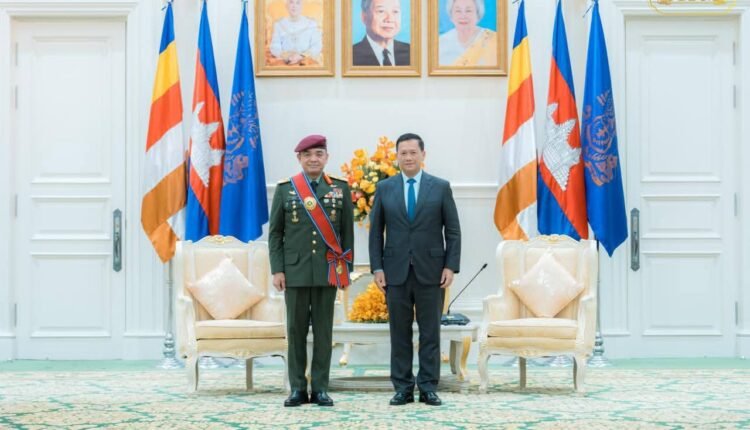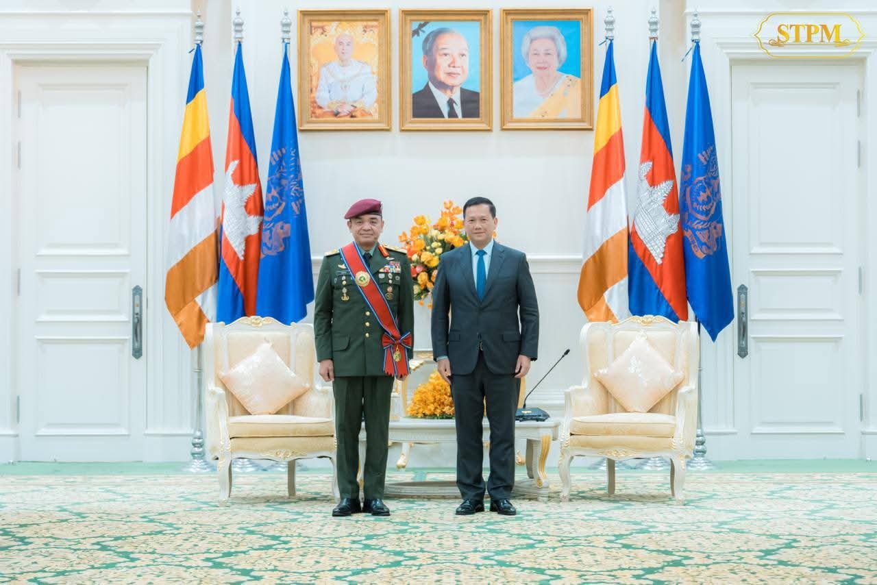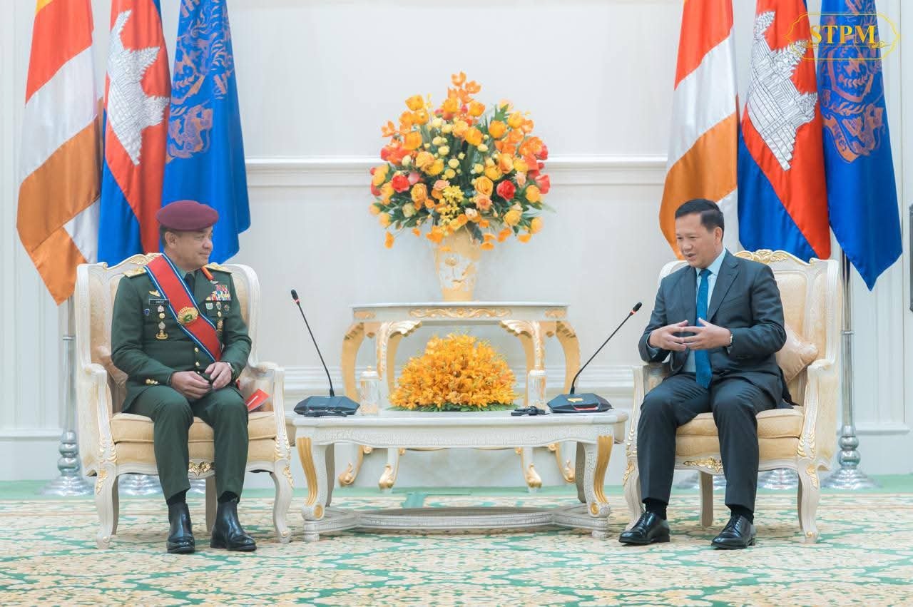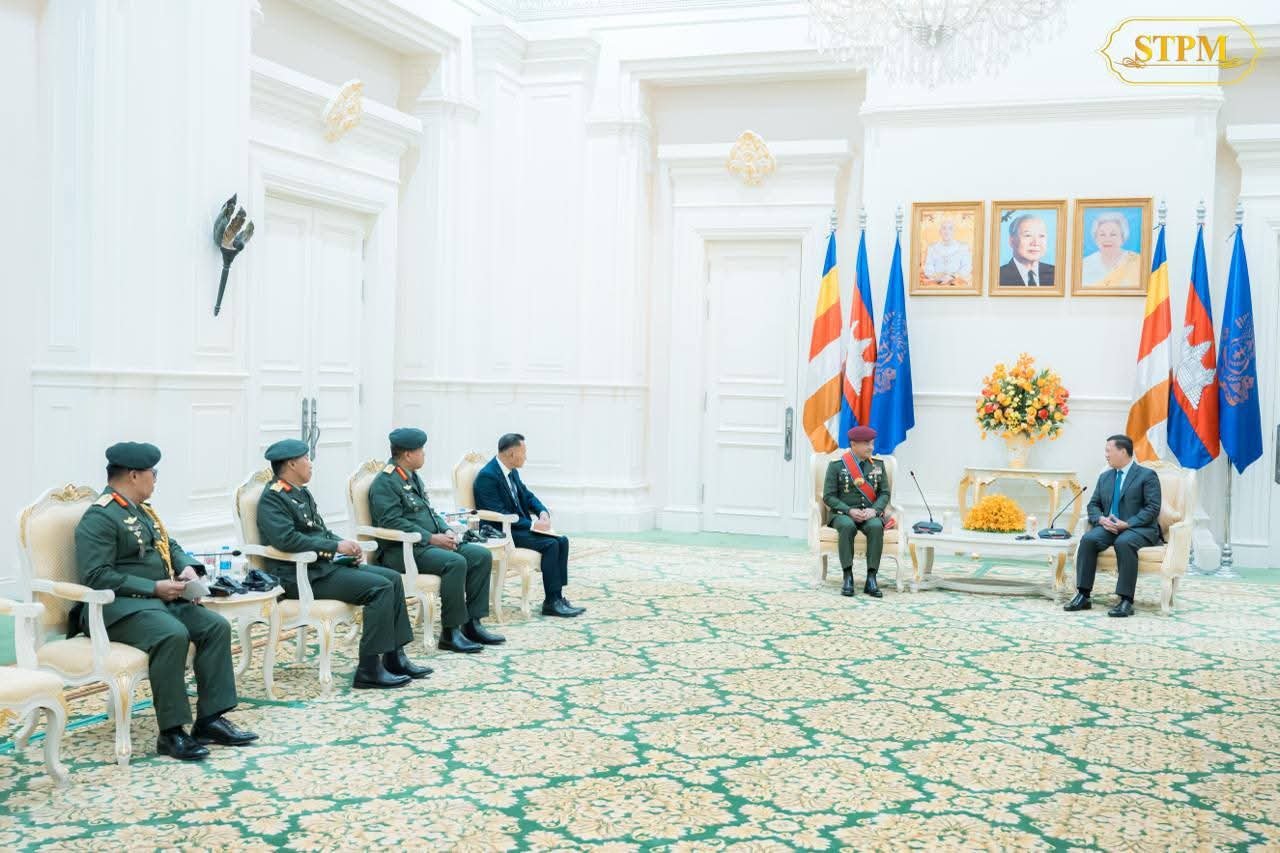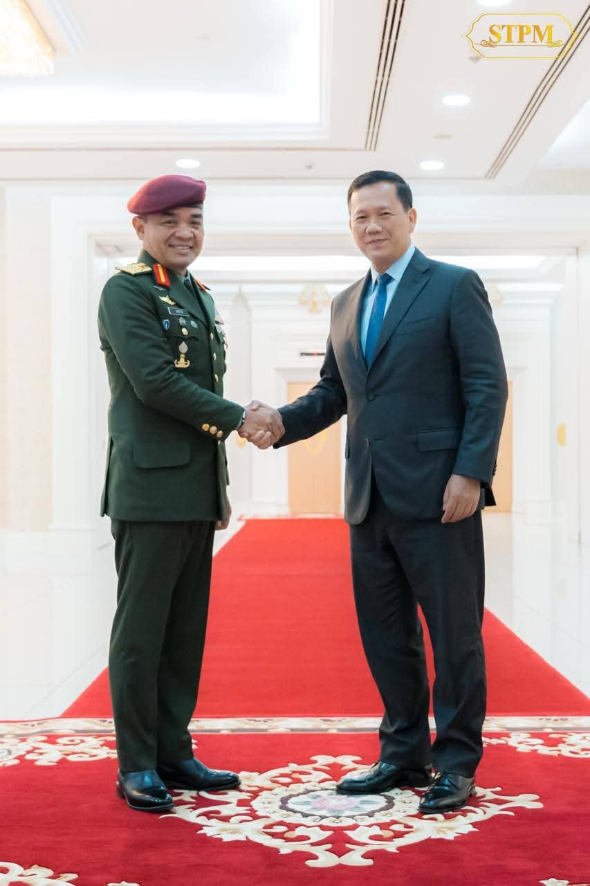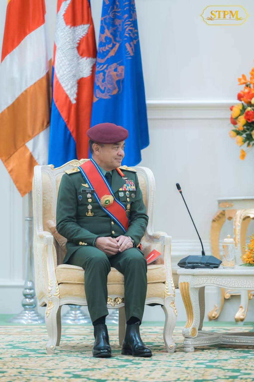 សម្តេចមហាបវរធិបតី ហ៊ុន ម៉ាណែត ជួបជាមួយ ឯកឧត្តម នាយឧត្តមសេនីយ៍ Tan Sri Dato Wira Muhammad Hafizuddeain Bin Jantan មេបញ្ជាការកងទ័ពជើងគោកម៉ាឡេស៊ី ក្នុងជំនួបសម្តែងការគួរសម និងពិភាក្សារការងារ