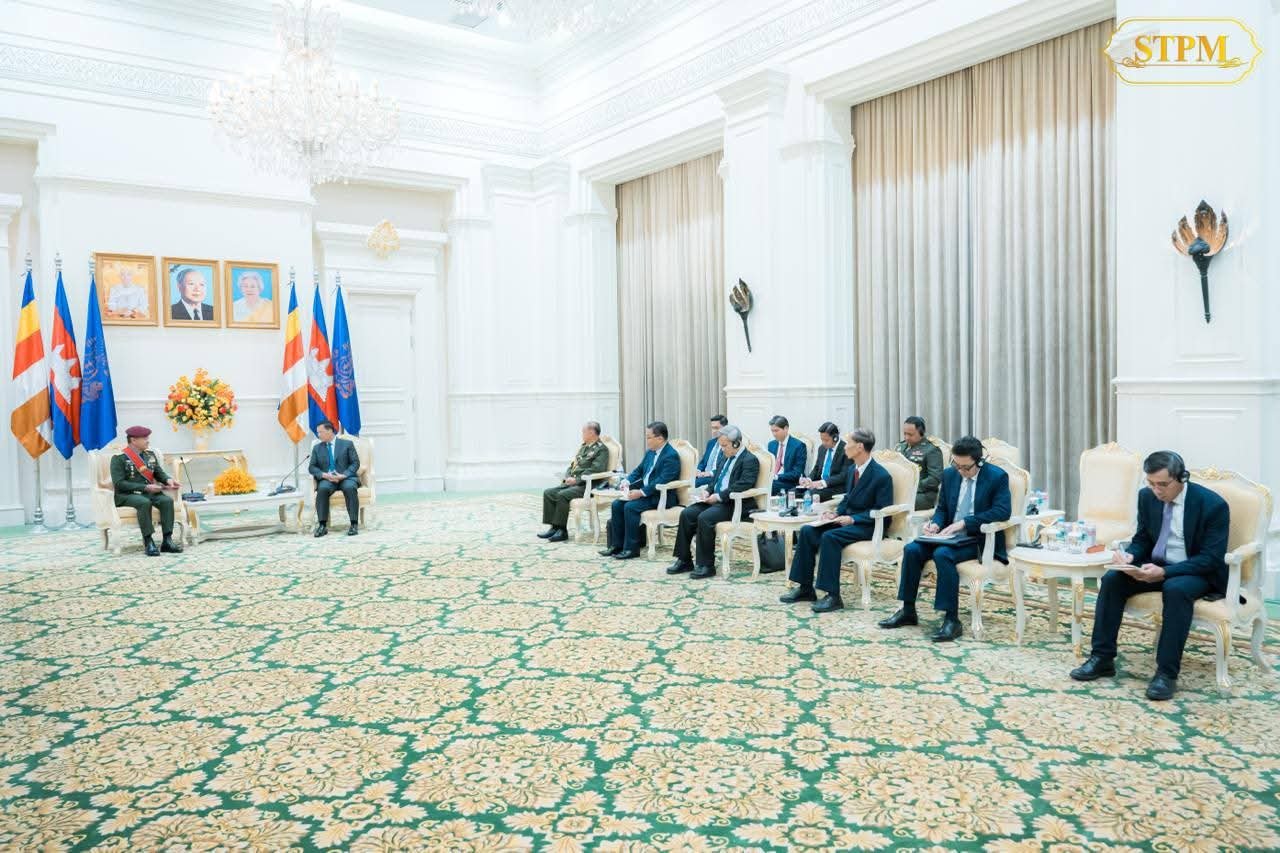 សម្តេចមហាបវរធិបតី ហ៊ុន ម៉ាណែត ជួបជាមួយ ឯកឧត្តម នាយឧត្តមសេនីយ៍ Tan Sri Dato Wira Muhammad Hafizuddeain Bin Jantan មេបញ្ជាការកងទ័ពជើងគោកម៉ាឡេស៊ី ក្នុងជំនួបសម្តែងការគួរសម និងពិភាក្សារការងារនៅវិមានសន្តិភាព ។