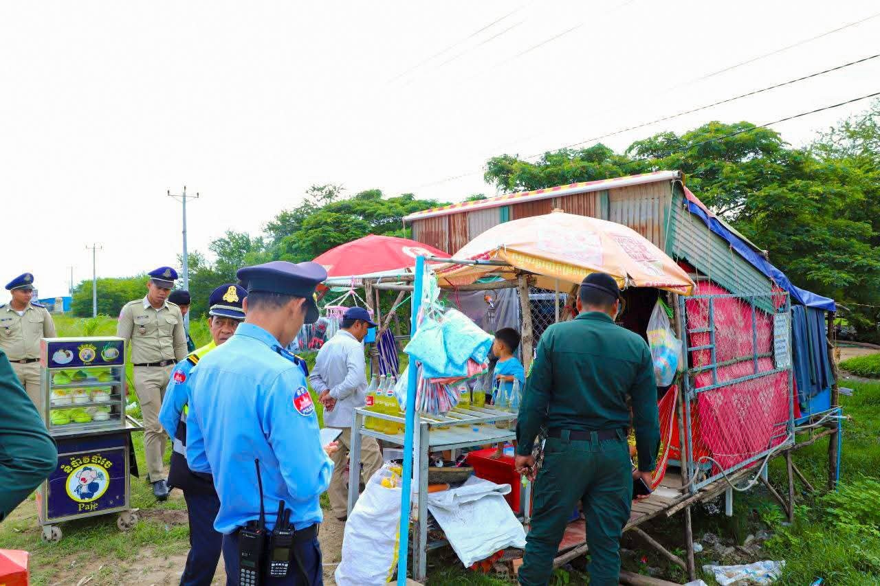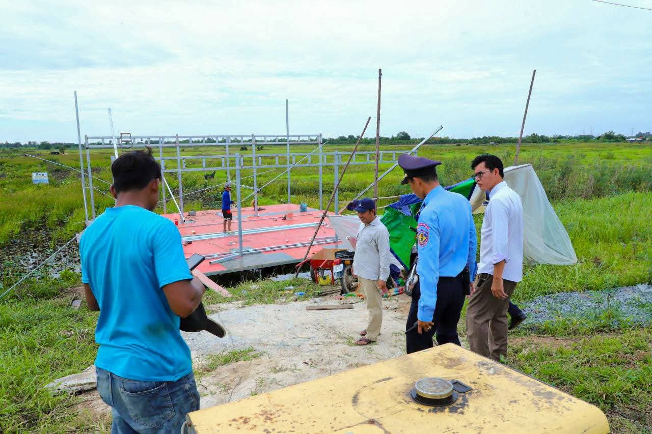 កណ្ដាល៖ រសៀលថ្ងៃទី០៣ ខែមិថុនា ឆ្នាំ២០២៥ រដ្ឋបាលក្រុងតាខ្មៅ ដឹកនាំដោយ លោក ឃឹម សំភារ អភិបាលក្រុងតាខ្មៅ បានចុះពិនិត្យ និងណែនាំទៅដល់ប្រជាពលរដ្ឋសាងសង់រំលោភលើចំណីផ្លូវ អោយធ្វើការរុះរើឡើងវិញជាបន្ទាន់ លើបណ្ដោយកំណាត់ផ្លូវមហាវិថីស៊ីជិនពីង (ក្រវ៉ាត់ក្រុងទី៣) ក្នុងសង្កាត់សិត្បូ សង្កាត់ស្វាយរលំ សង្កាត់រការខ្ពស់។