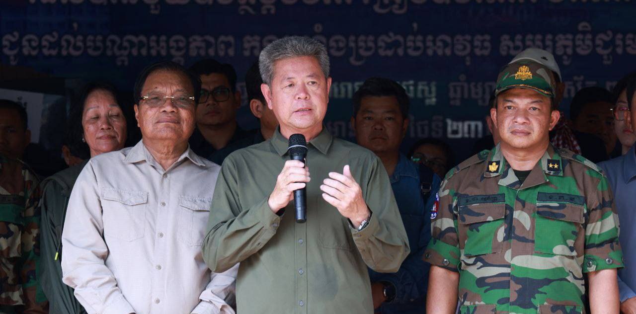 រសៀលថ្ងៃទី២៣ ខែមិថុនា ឆ្នាំ២០២៥ ឯកឧត្តម នូ សាខន ប្រធានក្រុមប្រឹក្សាខេត្តកណ្តាល និងឯកឧត្តម គួច ចំរើន អភិបាល នៃគណៈអភិបាលខេត្តកណ្តាល បានដឹកនាំប្រតិភូខេត្តកណ្ដាល អញ្ជើញជួបសំណេះសំណាលសួរសុខទុក្ខ និងនាំយកនូវគ្រឿងឧបភោគបរិភោគ សម្ភារៈបរិក្ខារ ឱសថ និងថវិកា ដែលជាសមានចិត្ត សេចក្តីស្រឡាញ់រាប់អាន និងការដឹងគុណដ៏ជ្រាលជ្រៅ ពីសំណាក់ ថ្នាក់ដឹកនាំ មន្ត្រីរាជការ ចំណុះរដ្ឋបាលខេត្តកណ្តាល ព្រមទាំងសប្បុរសជននានាជូនដល់ បងប្អូនកងកម្លាំងប្រដាប់អាវុធ នៅតាមបណ្តាកងឯកភាព ចំណុះគណៈបញ្ជាការឯកភាពទិសទី២ យោធភូមិភាគទី៤ នៅទីបញ្ជាការកងការពារព្រំដែនគោកលេខ៤០៣ ស្ថិតក្នុងស្រុកអន្លង់វែង ខេត្តឧត្តរមានជ័យ៕