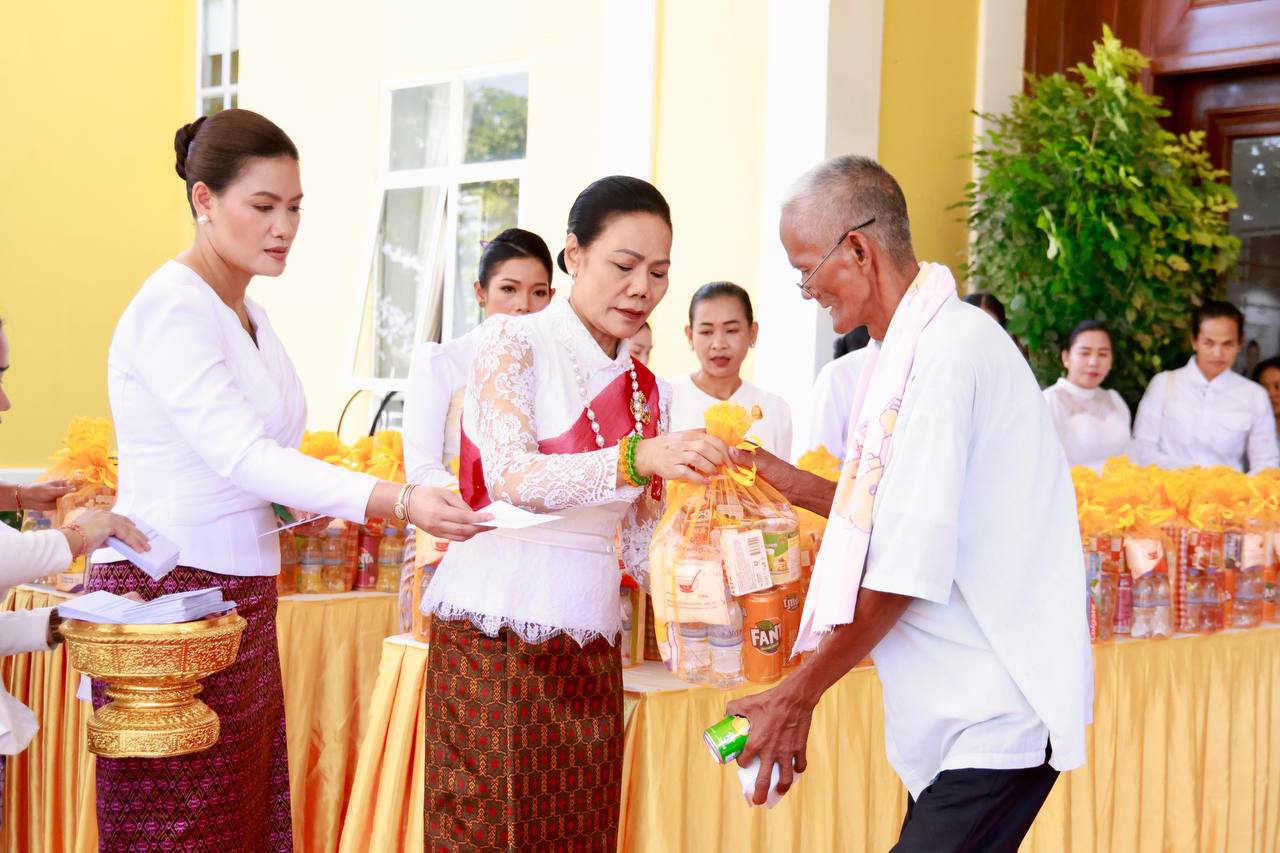 ទេយ្យទានសម្តេចក្រឡាហោម និងលោកជំទាវ ដែលបានប្រគេនដល់ព្រះសង្ឃទាំង ៣៩វត្ត នាឱកាសនោះ រួមមាន ៖ សាដក ១ប្រអប់, ទៀន ១គូ, អង្ករ ៥០គីឡូក្រាម, មី ១កេសធំ, ត្រីខកំប៉ុង ១កេសធំ, ទឹកដោះគោ ១កេសធំ, ស្ករស ២៥គីឡូក្រាម, ទឹកបរិសុទ្ធ ២កេស, ទឹកក្រូច ២កេស, ផ្លែឈើ ១កន្ត្រក, ប្រេងឆា ១០លីត្រ, ទឹកត្រី ១ឡូ, ទឹកស៊ីអ៉ីវ ១ឡូ, ប៊ីចេង ៥គីឡូក្រាម, អំបិល ១៨គីឡូក្រាម និងបច្ច័យ ចំនួន ៧៥០ ០០០រៀល(ចិតសិបប្រាំ)។