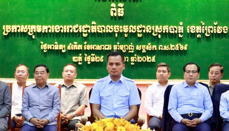នៅរសៀលថ្ងៃទី២៩ ខែមិថុនា ឆ្នាំ២០២៥ នេះ ឯកឧត្តមអភិសន្តិបណ្ឌិត ស សុខា ឧបនាយករដ្ឋមន្ត្រី រដ្ឋមន្ត្រីក្រសួងមហាផ្ទៃ និងជាប្រធានក្រុមការងាររាជរដ្ឋាភិបាលចុះមូលដ្ឋានខេត្តព្រៃវែង បានអញ្ជើញជាអធិបតីពិធីប្រកាសក្រុមការងាររាជរដ្ឋាភិបាលចុះមូលដ្ឋានស្រុកបាភ្នំ នៅសាលប្រជុំសាលាស្រុកបាភ្នំ ខេត្តព្រៃវែង។