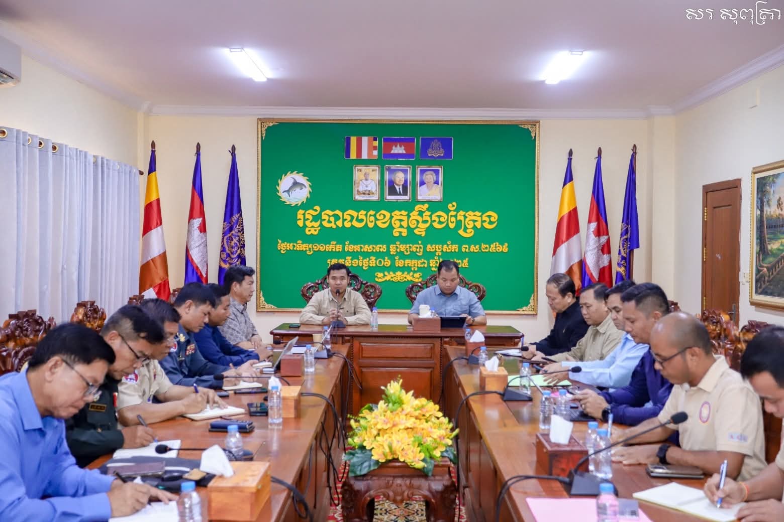 (ស្ទឹងត្រែង)៖ ព្រឹកថ្ងៃទី០៦ខែកក្កដាឆ្នាំ២០២៥ ឯកឧត្តមបណ្ឌិត ប៉ាន់ខែម ប៊ុនថន នាយករងខុទ្ទកាល័យសម្តេចមហាបវរធិបតី ហ៊ុន ម៉ាណែត នាយករដ្ឋមន្ត្រី នៃព្រះរាជាណាចក្រកម្ពុជា និងឯកឧត្តម សរ សុពុត្រា អភិបាល នៃគណៈអភិបាលខេត្តស្ទឹងត្រែង បានដឹកនាំក្រុមការងារពិសេសប្រជុំបូកសរុបលទ្ធផលការងារបង្ក្រាបទប់ស្កាត់ការកាប់ទន្ទ្រានដីព្រៃរបស់រដ្ឋនិងដោះស្រាយបញ្ហាវិវាទដីធ្លីក្នុងរយៈពេលប៉ុន្មានថ្ងៃនេះនៅក្នុងភូមិសាស្រ្តចំណុចអូរសេវ៣ ស្រុកសេសាន ខេត្តស្ទឹងត្រែង។