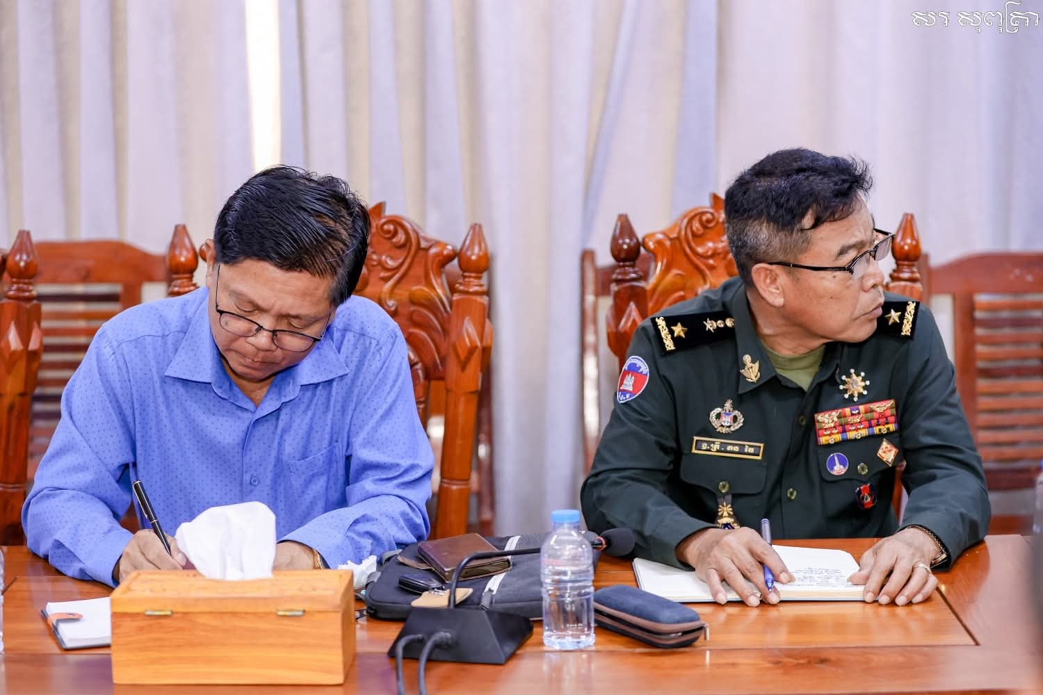 ឯកឧត្តមបណ្ឌិត ប៉ាន់ខែម ប៊ុនថន និងឯកឧត្តម សរ សុពុត្រា ដឹកនាំក្រុមការងារប្រជុំបូកសរុបលទ្ធផលការងារបង្ក្រាបទប់ស្កាត់ការកាប់ទន្ទ្រានដីព្រៃរបស់រដ្ឋនិងដោះស្រាយបញ្ហាវិវាទដីធ្លីនៅក្នុងភូមិសាស្រ្តចំណុចអូរសេវ៣ ស្រុកសេសាន ខេត្តស្ទឹងត្រែង