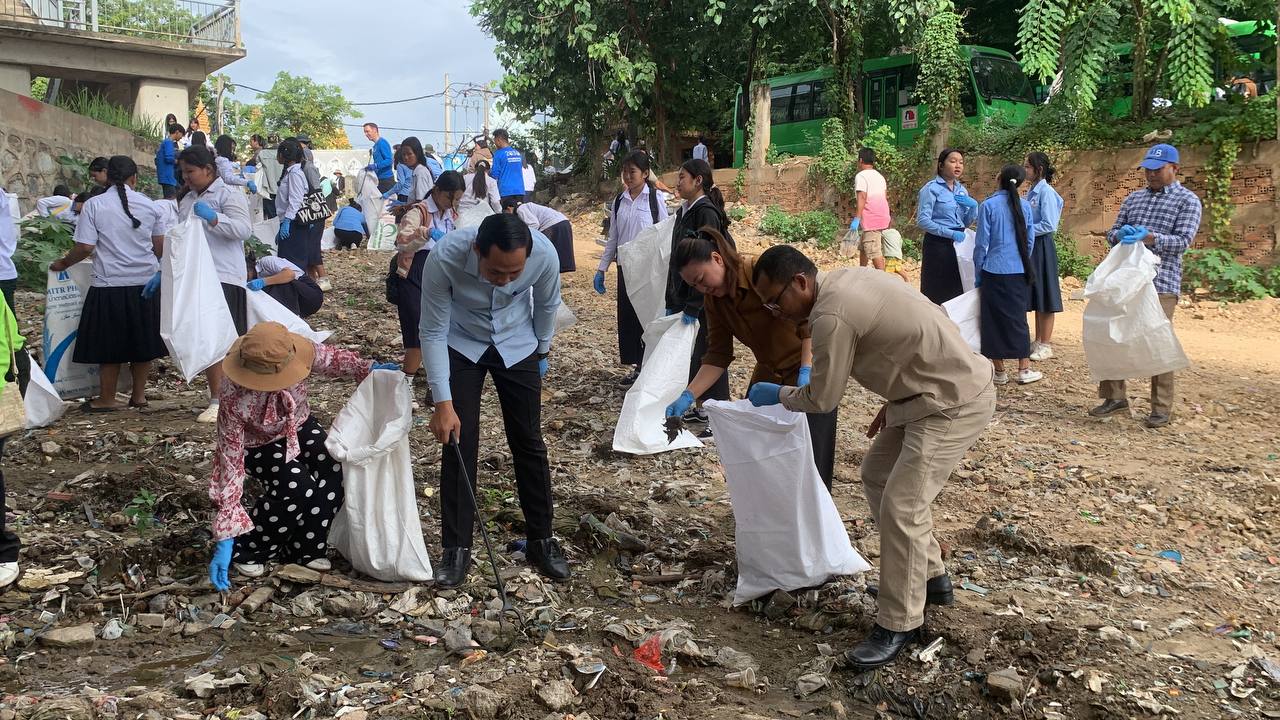 ក្រុងតាខ្មៅស្អាត ខ្មែរធ្វើបាន នូវយុទ្ធនាកាសម្អាតផ្លូវជាតិ ទន្លេ សមុទ្រគ្មានសំរាម និងសំណល់ប្លាស្ទិកនៅភូមិព្រែកសំរោង សង្កាត់តាខ្មៅ ក្រុងតាខ្មៅខេត្តកណ្ដាល