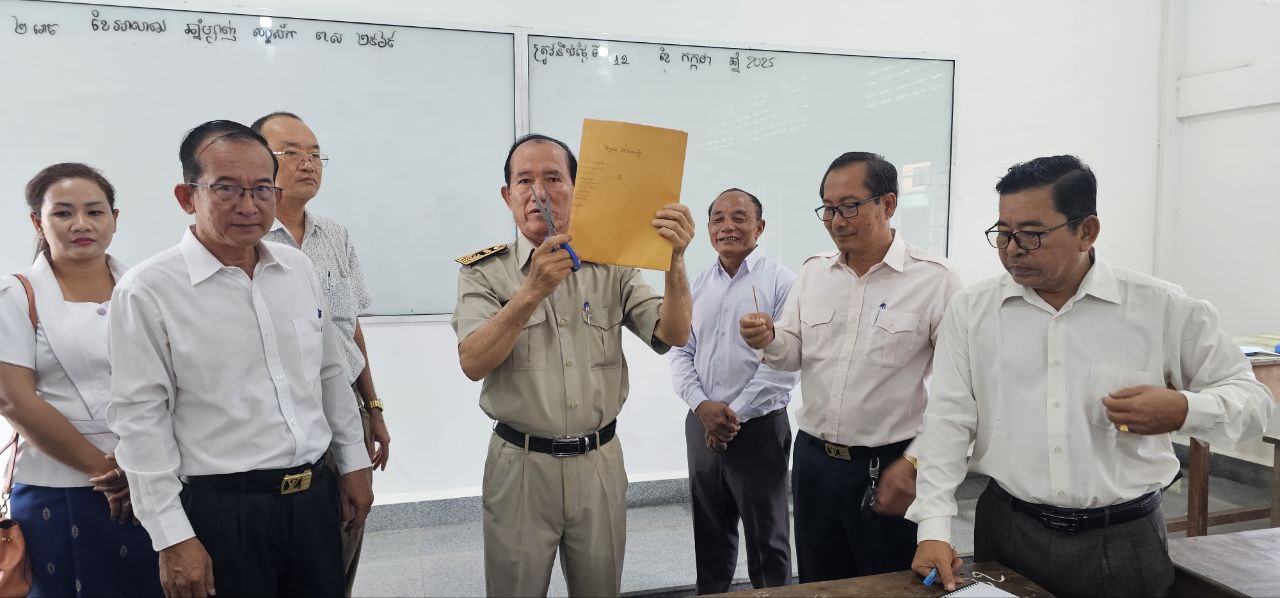 លោកជៀម ខូយចៅសង្កាត់តាខ្មៅបានអញ្ជើញកាត់បើកវិញ្ញាសារប្រឡងសញ្ញាបត្រមធ្យមសិក្សាបឋមភូមិ សាលាវិទ្យាល័យហ៊ុនសែនតាខ្មៅ ឆ្នាំសិក្សា២០២៤ – ២០២៥