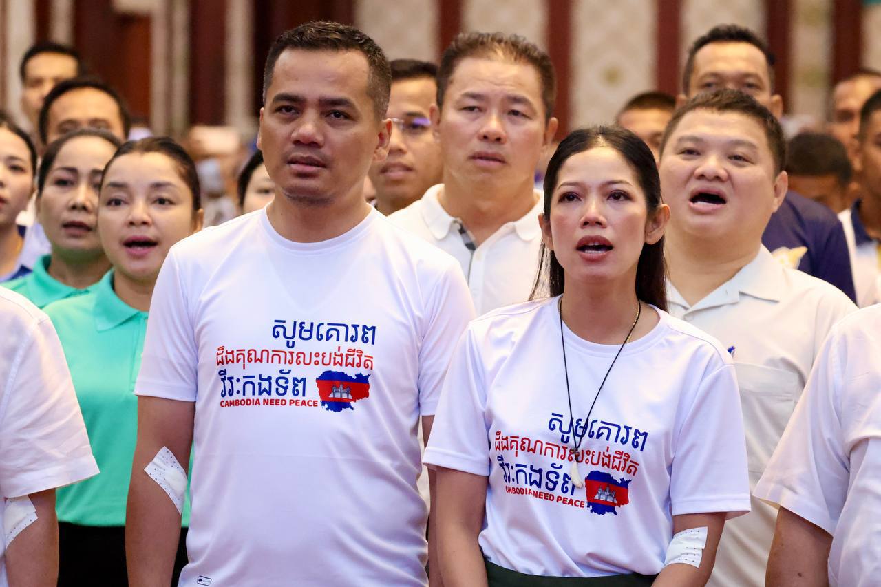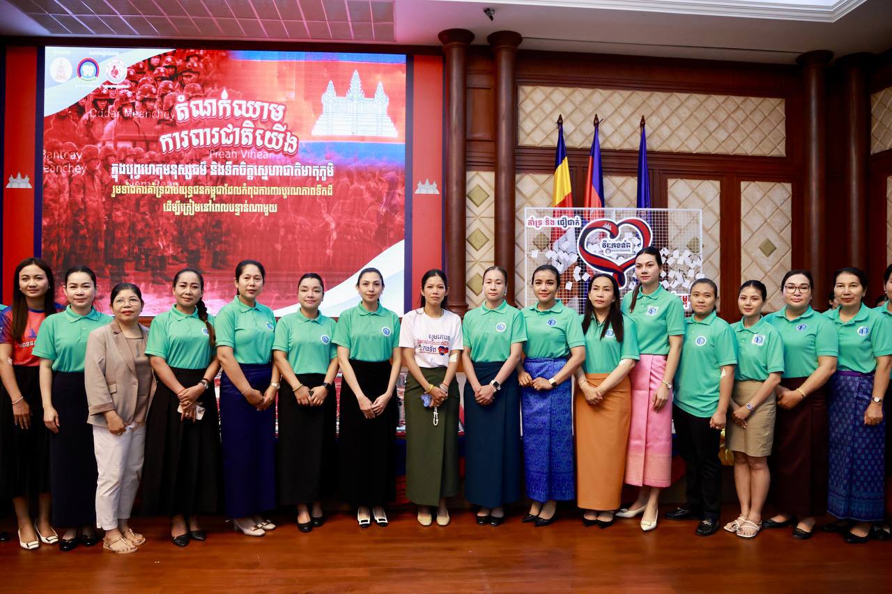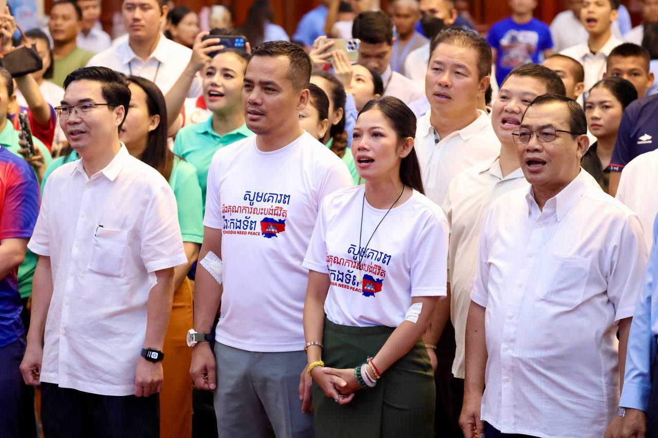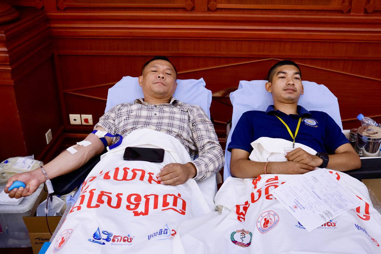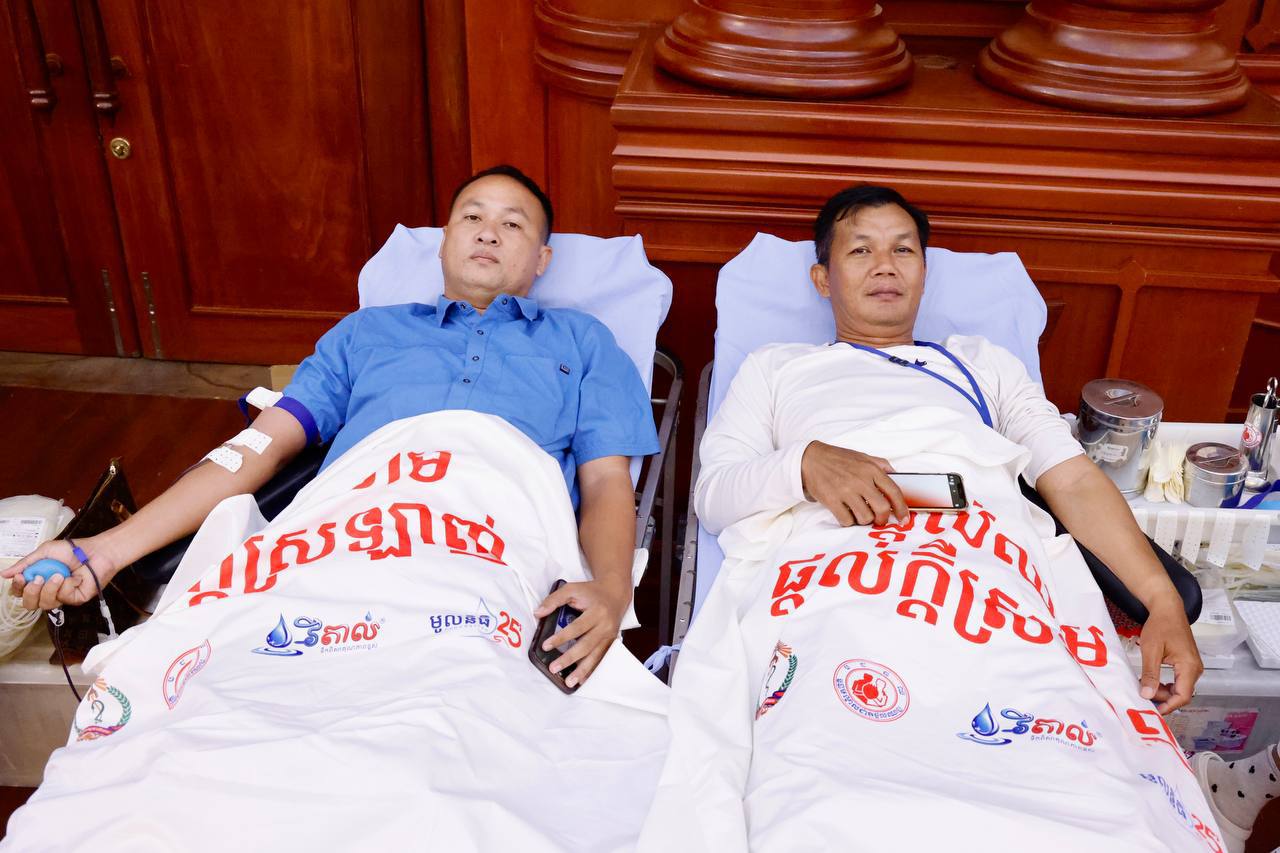 ស្របតាមស្មារតីរួបរួមប្រកៀកស្មាការពារជាតិ ក្រោមការដឹកនាំប្រកបដោយប្រតិភាណឈ្លាសវៃម៉ឺងម៉ាត់សម្ដេចមហាបវរធិបតី ហ៊ុន ម៉ាណែត នាយករដ្ឋមន្ត្រីនៃព្រះរាជាណាចក្រកម្ពុជា និងមគ្គុទេសក៍ដឹកនាំតម្រង់ទិសប្រកបដោយបទពិសោធជ្រៅជ្រះខ្ពង់ខ្ពស់សម្ដេចតេជោ ហ៊ុន សែន ប្រធានព្រឹទ្ធសភា នៅព្រឹកថ្ងៃទី៣ ខែសីហា ឆ្នាំ២០២៥ នេះ ឯកឧត្តមអភិសន្តិបណ្ឌិត ស សុខា ឧបនាយករដ្ឋមន្ត្រីរដ្ឋមន្ត្រីក្រសួងមហាផ្ទៃ និងលោកជំទាវ កែ សួនសុភី សសុខា ព្រមទាំងបុត្រាបុត្រី និងថ្នាក់ដឹកនាំ មន្ត្រីរាជការស៊ីវិល មន្ត្រីនគរបាលជាតិ មន្ត្រីពន្ធនាគារ ក្រសួងមហាផ្ទៃ បានច្រៀងចម្រៀងយុទ្ធជន និងបរិច្ចាគឈាម ត្រៀមគាំទ្រកម្លាំងជួរមុខ។
