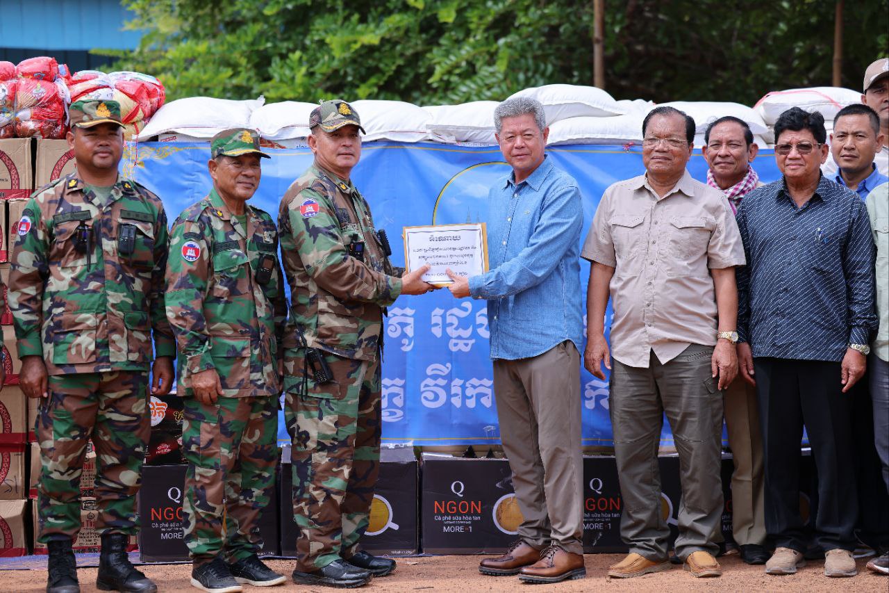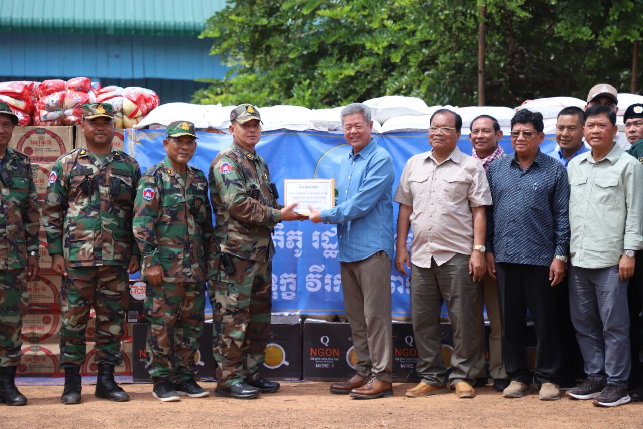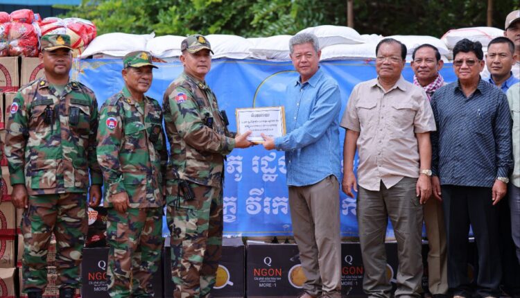 ឯកឧត្តមនូ សាខនប្រធានក្រុមប្រឹក្សាខេត្ត និង ឯកឧត្តម គួច ចំរើន អភិបាល នៃគណៈអភិបាលខេត្តកណ្ដាល យកអំណោយសប្បុរសធម៌មកចែកជូនបងប្អូនវីរកងទ័ពជួរមុខ ឈរជើងការពារបូរណភាពទឹកដីនៅចំនុចខេត្តព្រះវិហារ