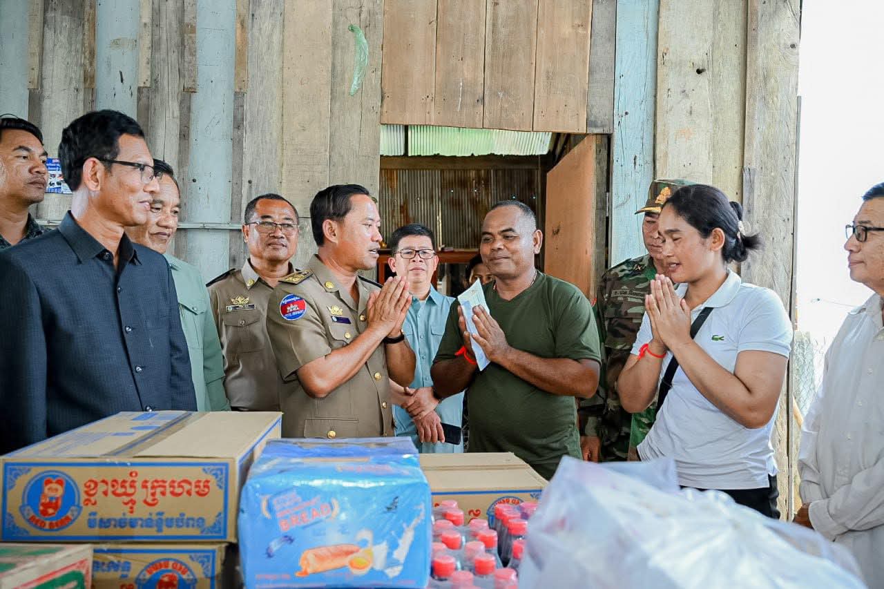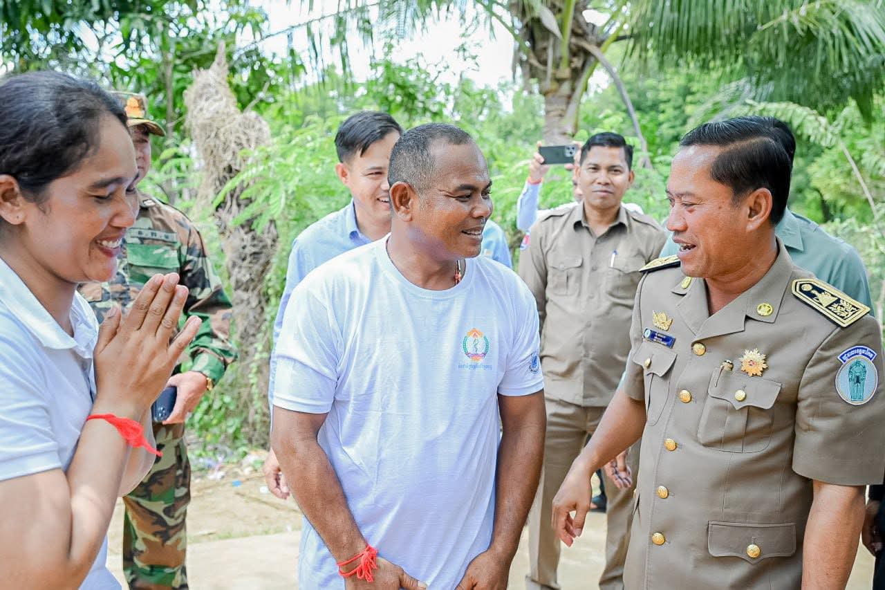តាកែវ៖ អភិបាលខេត្តតាកែវ ឯកឧត្តម វ៉ី សំណាង នៅរសៀលថ្ងៃ អង្គារ៍ ទី០៥ ខែសីហា ឆ្នាំ២០២៥ នេះបានចុះជួបសួរសុខទុក្ខ និងបាននាំយកអំណោយគ្រឿងឧបភោគបរិភោគមួយចំនួន ជូន វីរកងទ័ព ម៉ៅ ណុល រហ័សនាម (រ៉ាំប៉ូស្រុកខ្មែរ) ដែលរស់នៅភូមិត្រពាំងឬស្សី ឃុំសូភី ស្រុកបាទី ខេត្តតាកែវ ដែលបង្ហាញភាពអង់អាចក្លាហាន តាមរយៈការដោះអាវបាញ់កាំភ្លើង ធ្វើការប្រយុទ្ធតបត ដោយមិនខ្លាចញញើត ជាមួយក្រុមទាហ៊ានថៃ ដែលមាន មហិច្ចតាចង់រំលោភឈ្លានពាន ដែនអធិបតេយ្យភាពបូរណភាព ទឹកដីខ្មែរ។