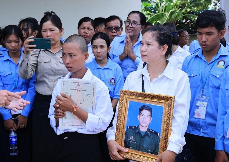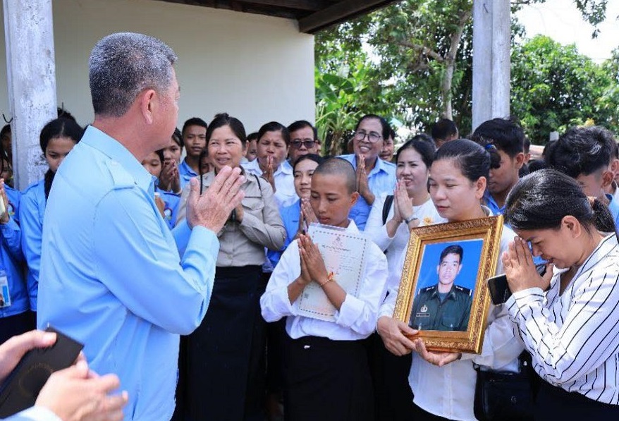 កណ្ដាល ៖ ព្រឹកថ្ងៃទី០៦ ខែសីហា ឆ្នាំ២០២៥ ឯកឧត្ដម គួច ចំរើន អភិបាល នៃគណៈអភិបាលខេត្តកណ្ដាល និងជាប្រធាន (ស.ស.យ.ក) ខេត្តកណ្ដាល បាននាំយកថវិកាឧបត្ថម្ភរបស់ ឯកឧត្តម ហ៊ុន ម៉ានីប្រធានសហភាពសហព័ន្ធយុវជនកម្ពុជា (ស.ស.យ.ក.) ចំនួន៤.០០០.០០០ រៀលនិងប្លង់ដី ប្រគល់ជូន ភរិយាសពព្រឹន្ទបាលទោ រិន វាសនា នាយរងក្រុមទី២ កងអនុសេនាតូចដឹកជញ្ជូន វរសេនាតូច ៣៩៣ កងពលតូចអន្តរាគមន៍លេខ ៩ នៃកងពលធំអន្តរាគមន៍លេខ ៣ ដែលបានពលីជីវិតនៅលើសមរភូមិប្រយុទ្ធទិសមុំបី ខេត្តព្រះវិហារ កាលពីថ្ងៃអាទិត្យទី២៧ ខែកក្កដា ឆ្នាំ២០២៥ ក្នុងជន្មាយុ ២៨ឆ្នាំ នៅភូមិត្រពាំងត្រាច ឃុំដំណាក់អំពិ់ល ស្រុកអង្គស្នួល ខេត្តកណ្តាល។