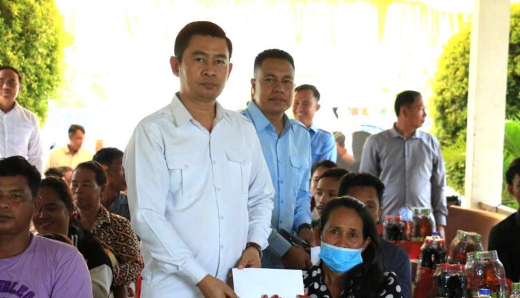 រសៀលថ្ងៃអង្គារ ទី១២ ខែសីហា ឆ្នាំ២០២៥ នេះ ឯកឧត្តមបណ្ឌិត ទូច វណ្ណៈ ប្រធានក្រុមការងាររាជរដ្ឋាភិបាល ចុះមូលដ្ឋានសង្កាត់ជើងទឹក ជាតំណាងដ៏ខ្ពង់ខ្ពស់ឯកឧត្តម ឡាំ ជា រដ្ឋមន្ត្រី ទទួលបន្ទុករដ្ឋលេខាធិការដ្ឋានកិច្ចការព្រំដែន និងជាប្រធានក្រុមការងាររាជរដ្ឋាភិបាលចុះមូលដ្ឋានក្រុងព្រៃវែង និងលោក ម៉ននី បណ្ឌិត អភិបាល នៃគណៈអភិបាលក្រុងព្រៃវែង ព្រមទាំងក្រុមការងារ បានអញ្ជើញចុះជួបសំណេះសំណាល និងប្រគល់អំណោយជូនពលករខ្មែរ ដែលវិលត្រឡប់ពីប្រទេសថៃ និងជនភៀសសឹក ចំនួន ៤២គ្រួសារ នៅក្នុងសង្កាត់ជើងទឹក ក្រុងព្រៃវែង ខេត្តព្រៃវែង។