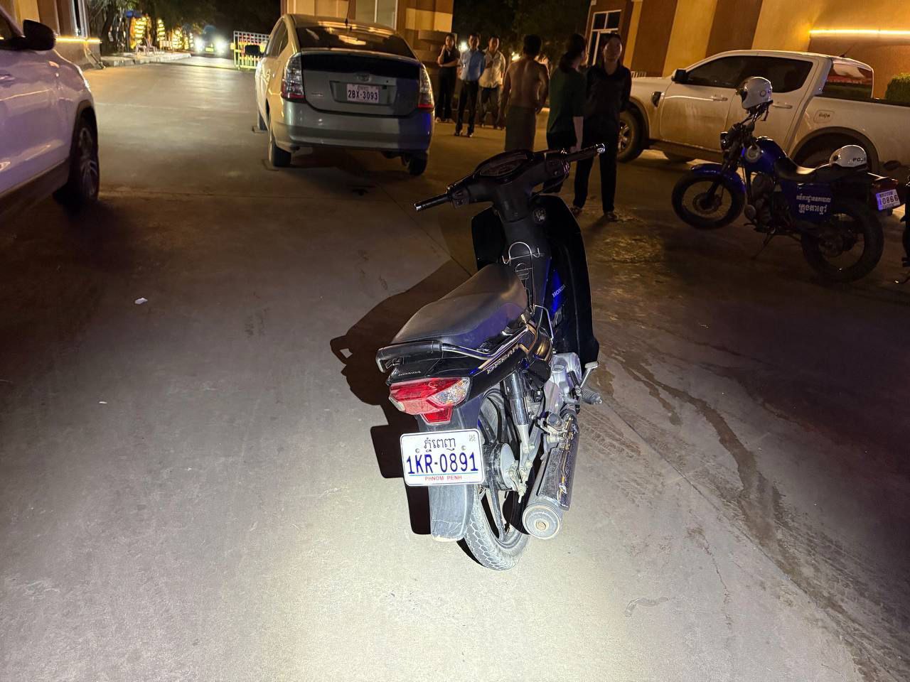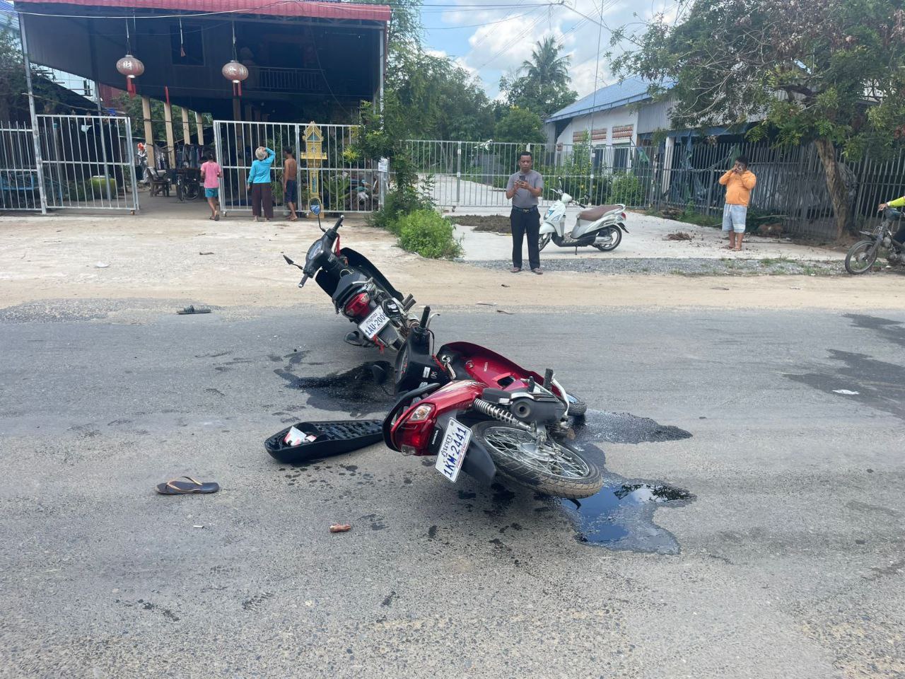 ភូមិព្រែកតាឡៃ ឃុំព្រែកអំបឹល ស្រុកស្អាង ខេត្តកណ្តាល (មិនពាក់មួកសុវត្ថិភាព និងមិនមានកញ្ចក់មើលក្រោយ ) បើកបរទិសដៅពីជើងទៅត្បូង( រងរបួសស្រាល )ត្រូវបានសាច់ញាតិដឹកយកទៅសង្គ្រោះនៅមន្ទីរពេទ្យទាំង០២នាក់ ។ ករណីនេះសមត្ថកិច្ចដាក់សេចក្តីសន្និដ្ធានថា ÷ គឺបណ្តាលមកពីអ្នកជិះម៉ូតូបត់ឆ្លងផ្លូវខ្វះការប្រុងប្រយត្ន័ ចំនែកអ្នកជិះផ្លូវត្រង់ បើកបរក្នុងល្បឿនលឿនពេក ។