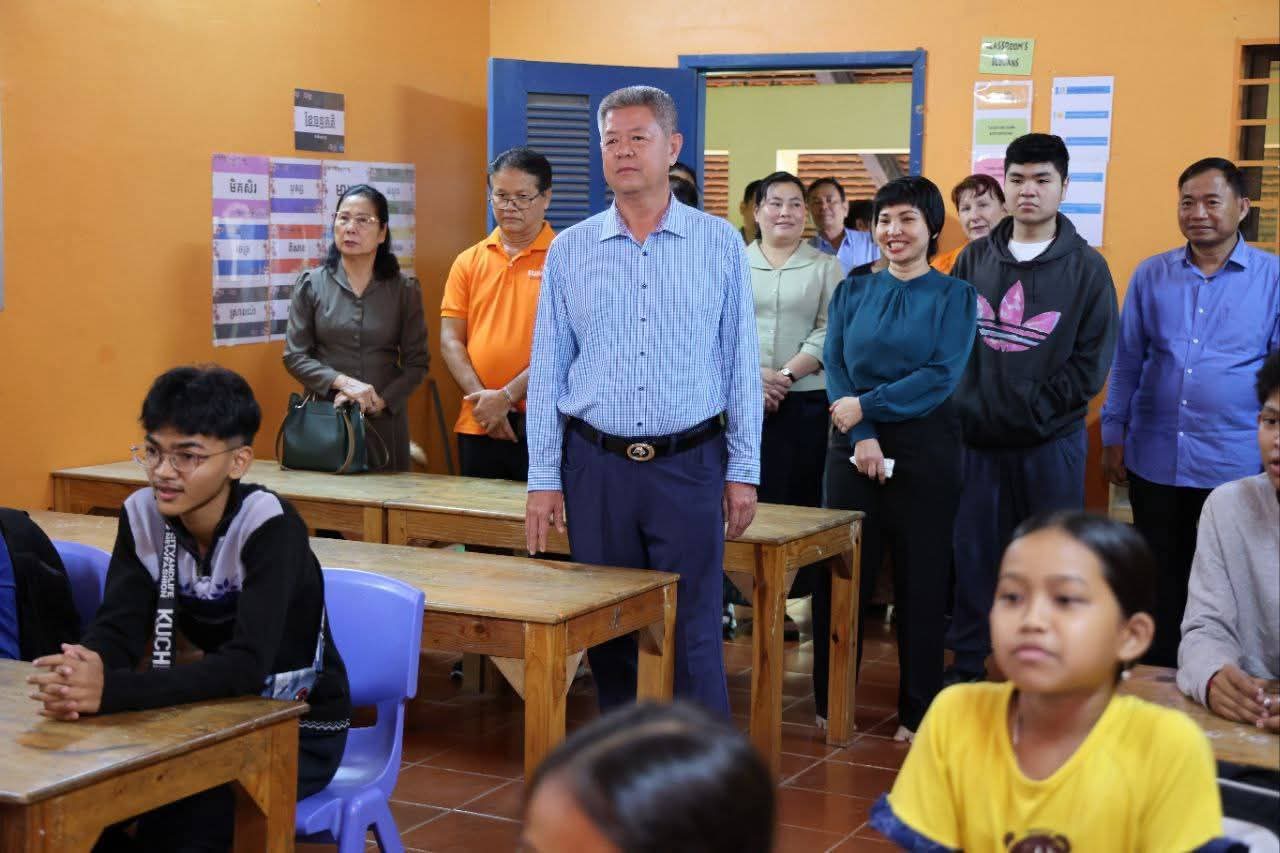 កណ្តាល៖ រសៀលថ្ងៃទី២១ ខែសីហា ឆ្នាំ២០២៥ ឯកឧត្តម គួច ចំរើន លោកជំទាវអ៊ូ  ធីតាពៅ ព្រមទាំងកងកម្លាំង មន្ទីរអង្គភាពជុំវិញខេត្ត និងអាជ្ញាធរក្រុងតាខ្មៅ អញ្ជើញចុះសួរសុខទុក្ខ និងសំណេះសំណាល ជាមួយកុមារនៅអង្គការមជ្ឈមណ្ឌលអរុណរៈ (សាន់រ៉ាយ) ស្ថិតនៅភូមិទួលក្រសាំង សង្កាត់រការខ្ពស់ ក្រុងតាខ្មៅ ខេត្តកណ្តាល។