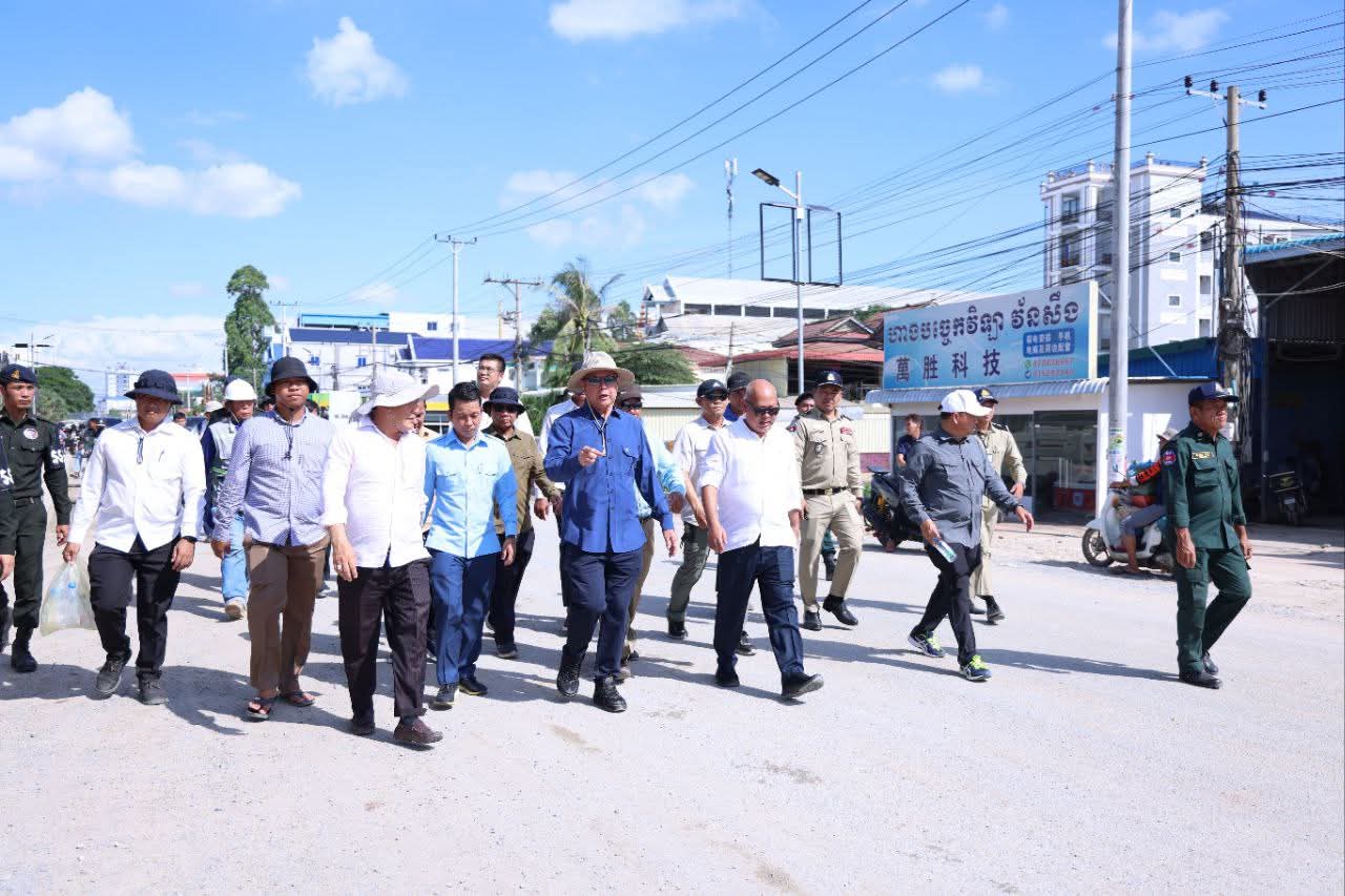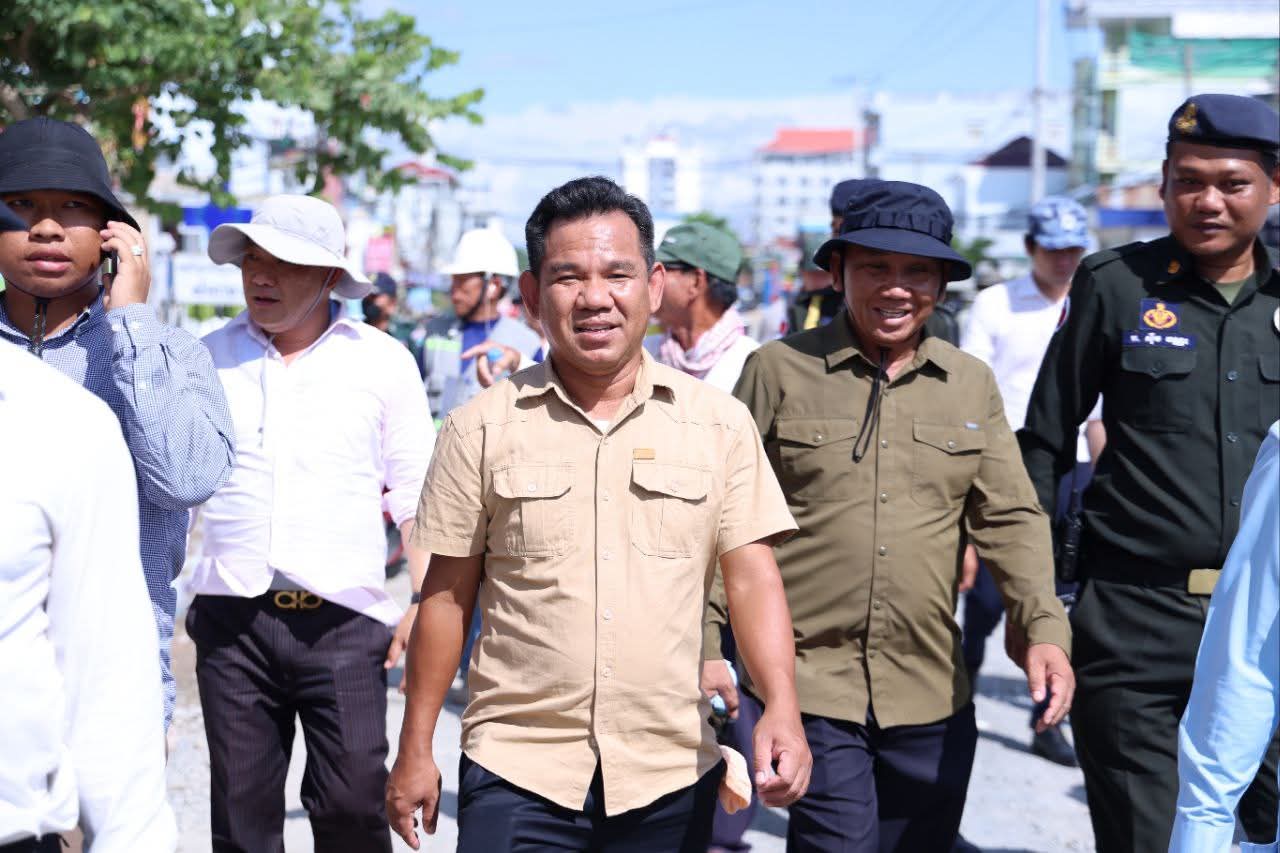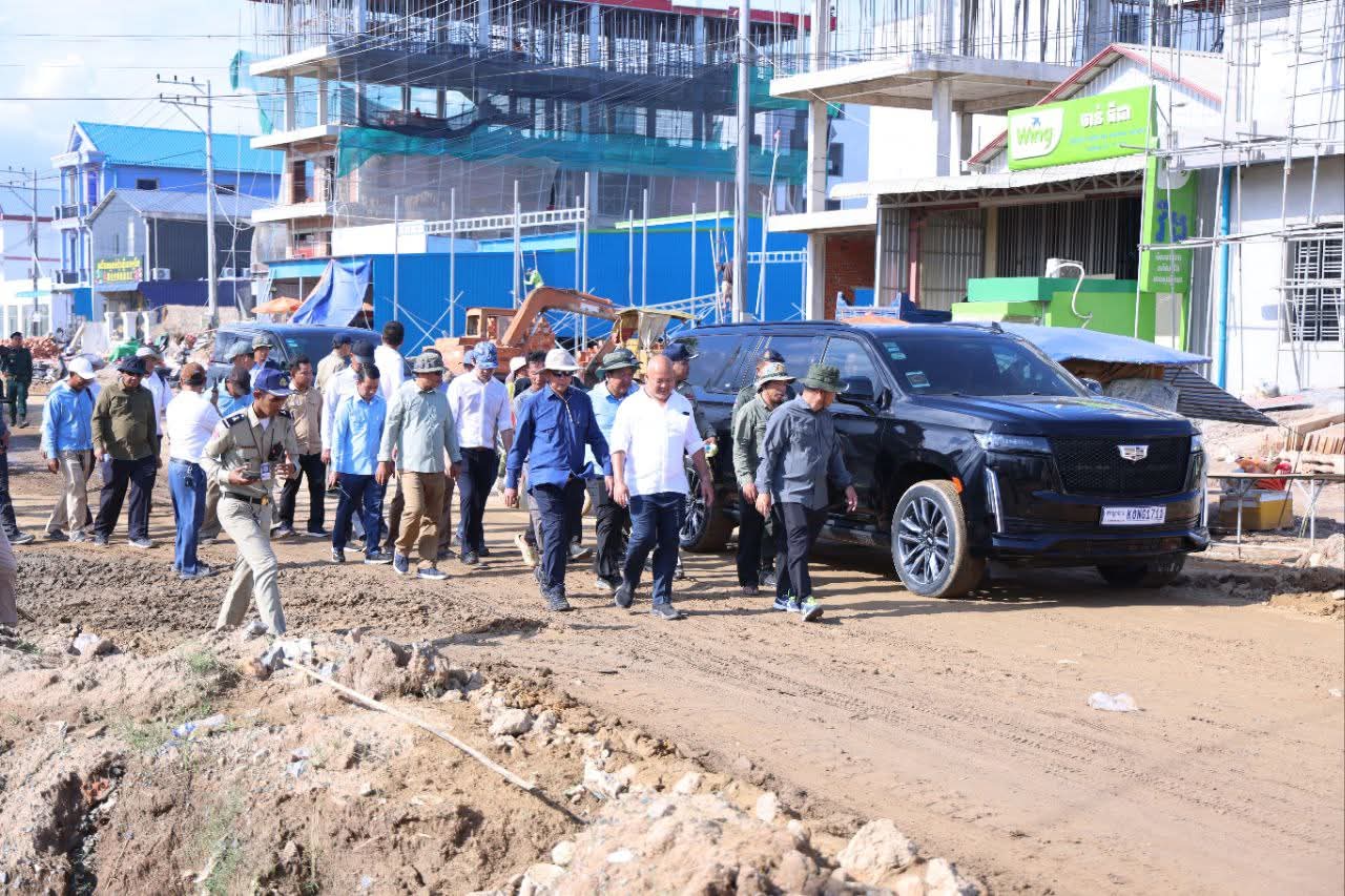 កណ្តាល៖ នារសៀលថ្ងៃទី២២ ខែសីហា ឆ្នាំ២០២៥ ឯកឧត្តម គួច ចំរើន អភិបាល នៃគណៈអភិបាលខេត្តកណ្ដាល អញ្ជើញចុះពិនិត្យវឌ្ឍនភាពការងារស្ថាបនាផ្លូវលេខ១២១៨ (ផ្លូវព្រែកស្បូវ) ការរៀបចំប្រព័ន្ធលូទឹកភ្លៀងតាមបណ្តោយផ្លូវជាតិលេខ២១ និងការងារស្ថាបនាផ្លូវតាមបណ្តោយប្រឡាយ៧៦ ការរបចំសណ្ដាប់ធ្នាប់ របៀបរៀបរយ និងការដាក់តាំងផ្សាយពាណិជ្ជកម្ម ក្នុងក្រុងសំពៅពូន ខេត្តកណ្ដាល។