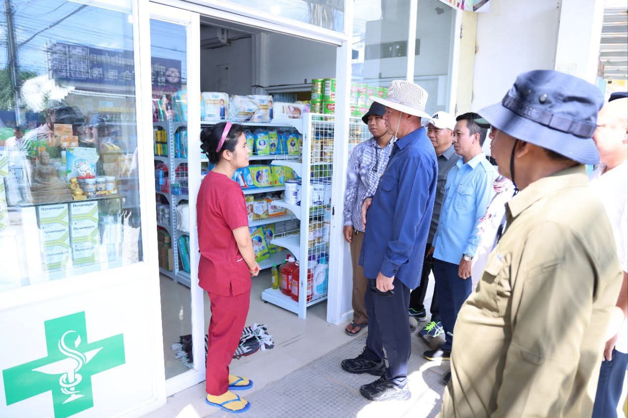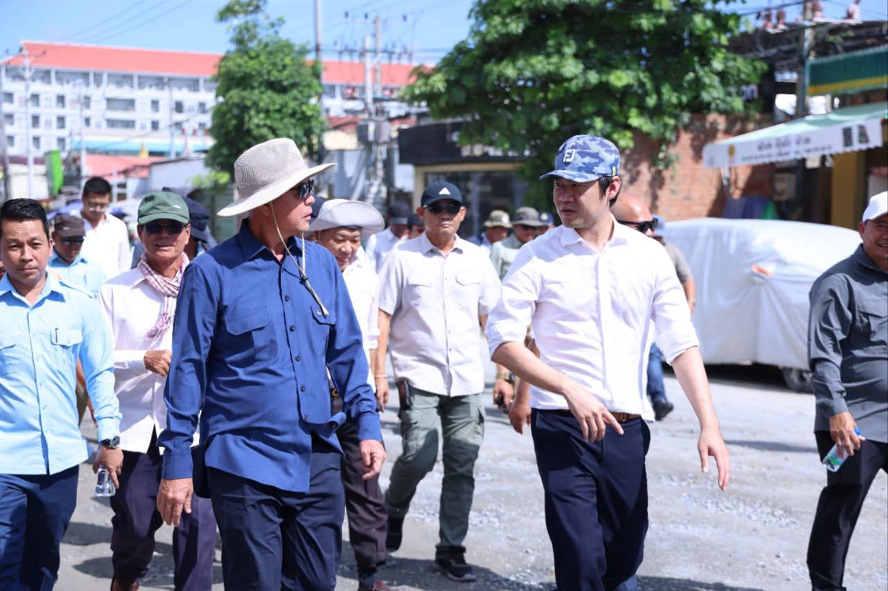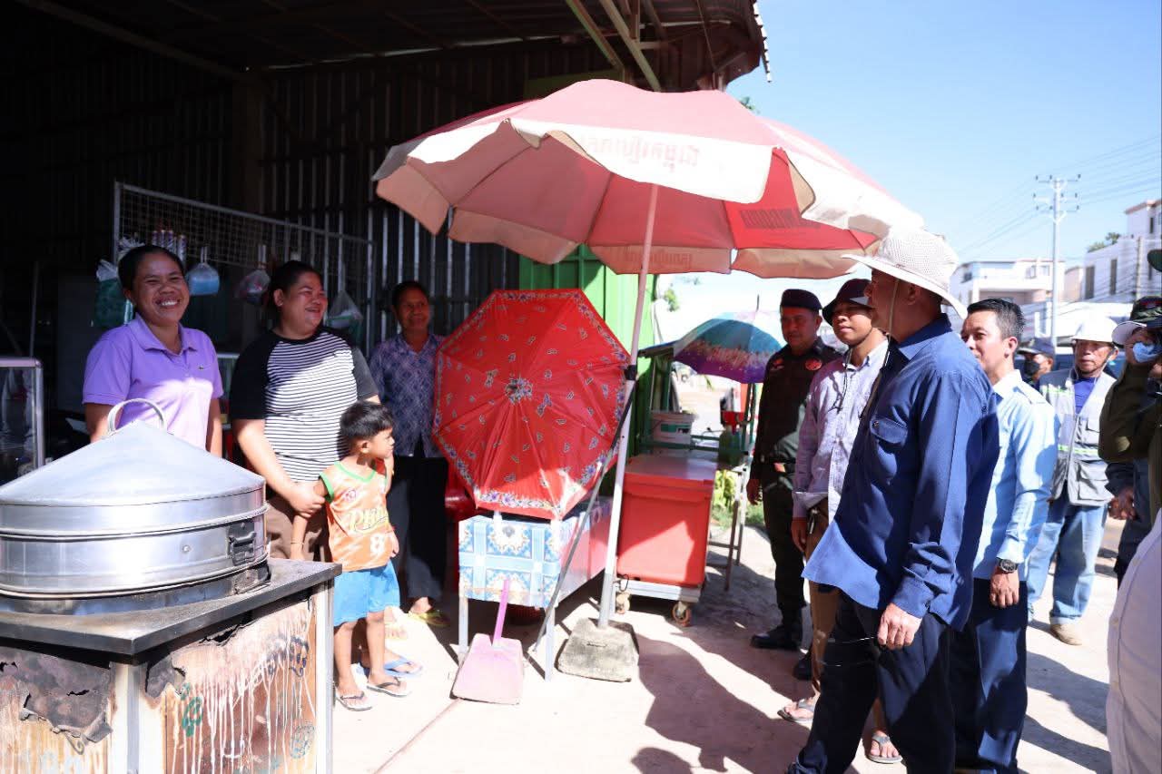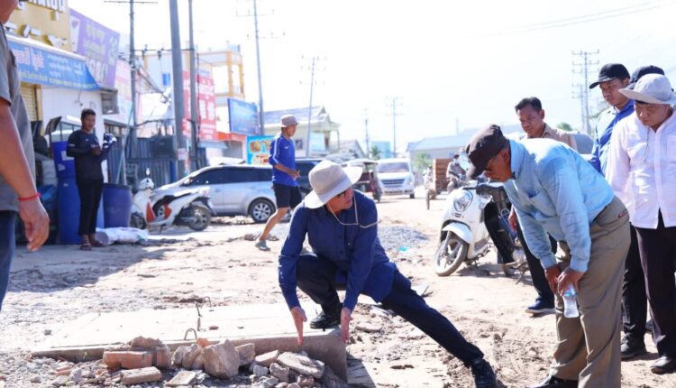 កណ្តាល៖ នារសៀលថ្ងៃទី២២ ខែសីហា ឆ្នាំ២០២៥ ឯកឧត្តម គួច ចំរើន អភិបាល នៃគណៈអភិបាលខេត្តកណ្ដាល អញ្ជើញចុះពិនិត្យវឌ្ឍនភាពការងារស្ថាបនាផ្លូវលេខ១២១៨ (ផ្លូវព្រែកស្បូវ) ការរៀបចំប្រព័ន្ធលូទឹកភ្លៀងតាមបណ្តោយផ្លូវជាតិលេខ២១ និងការងារស្ថាបនាផ្លូវតាមបណ្តោយប្រឡាយ៧៦ ការរបចំសណ្ដាប់ធ្នាប់ របៀបរៀបរយ និងការដាក់តាំងផ្សាយពាណិជ្ជកម្ម ក្នុងក្រុងសំពៅពូន ខេត្តកណ្ដាល។