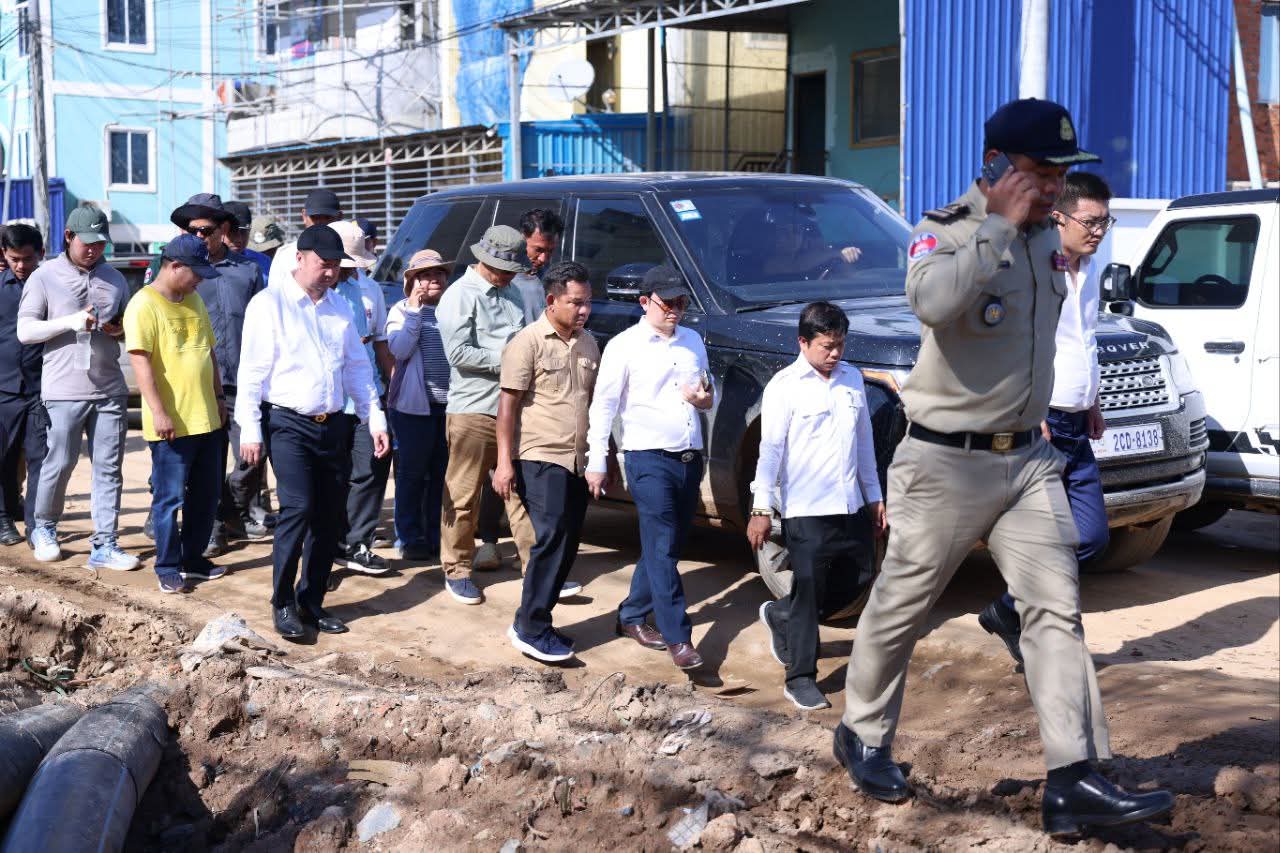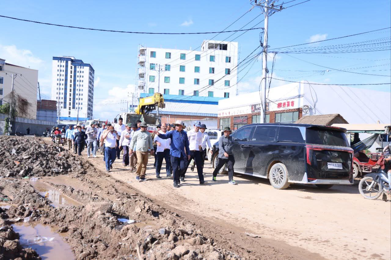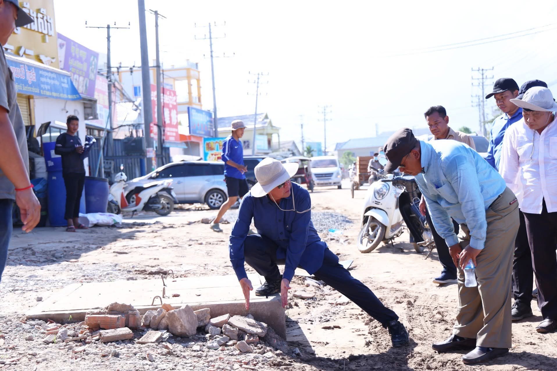 ឯកឧត្តម គួច ចំរើន អញ្ជើញចុះពិនិត្យវឌ្ឍនភាពការងារស្ថាបនាផ្លូវលេខ១២១៨ (ផ្លូវព្រែកស្បូវ) ការរៀបចំប្រព័ន្ធលូទឹកភ្លៀងតាមបណ្តោយផ្លូវជាតិលេខ២១ និងការងារស្ថាបនាផ្លូវតាមបណ្តោយប្រឡាយ៧៦ ក្នុងក្រុងសំពៅពូន ខេត្តកណ្ដាល
