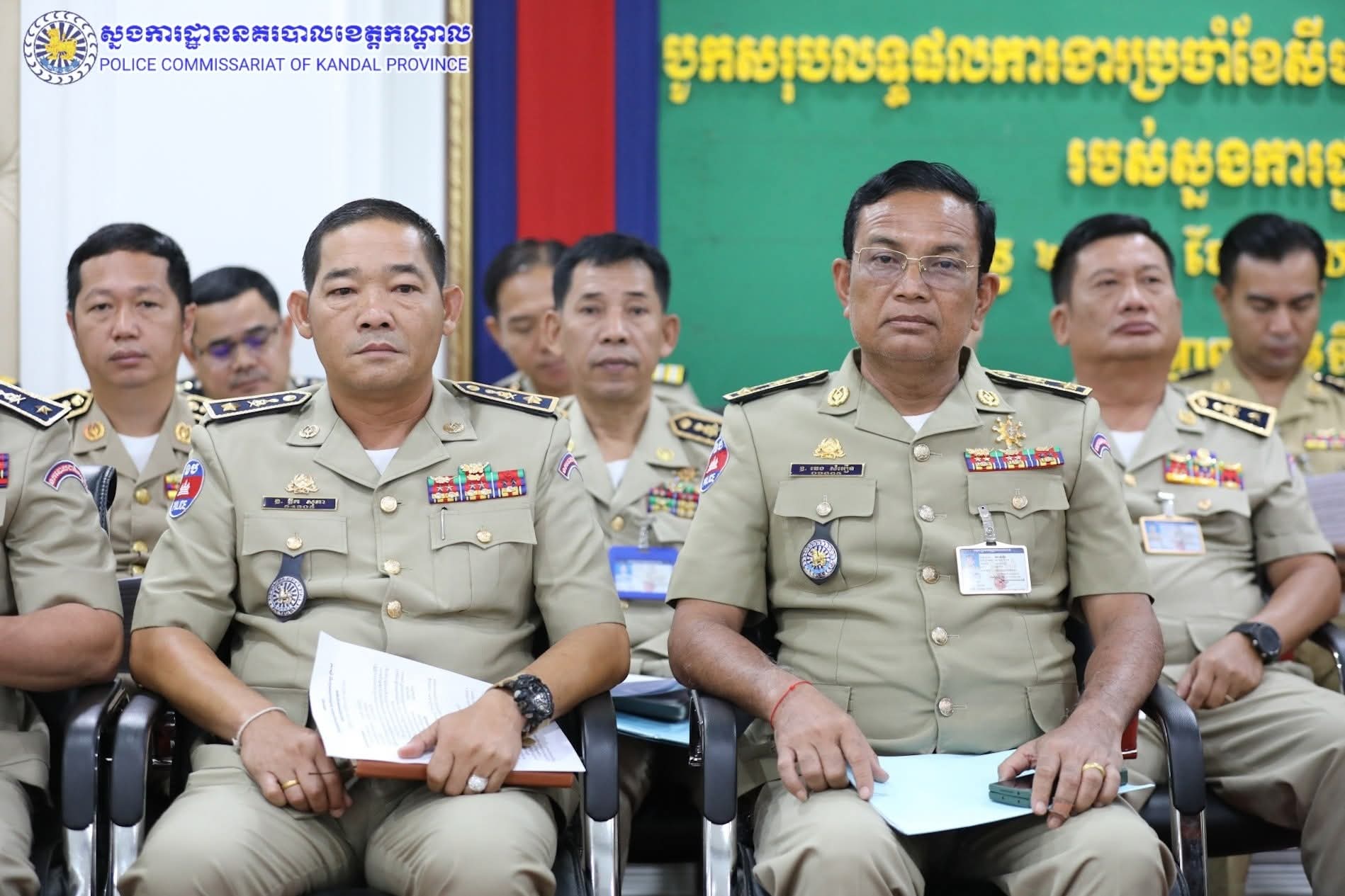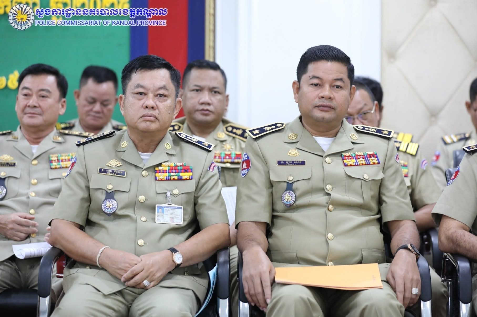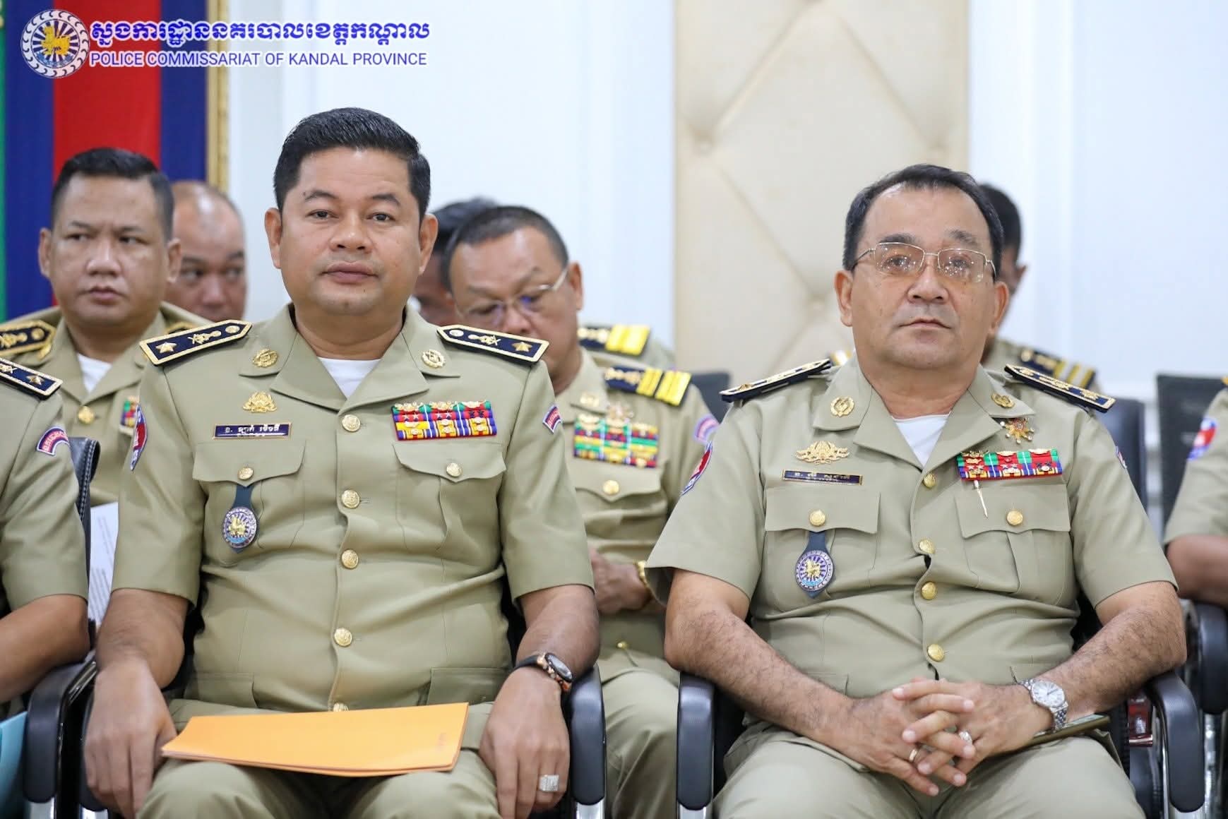ដោយអនុវត្តតាមការដឹកនាំបញ្ជាដ៏ខ្ពង់ខ្ពស់របស់ ឯកឧត្តម នាយឧត្តមសេនីយ៍ អគ្គស្នងការនគរបាលជាតិ លោកឧត្តមសេនីយ៍ទោ ឈឿន សុចិត្ត ស្នងការនគរបាលខេត្តកណ្តាល បានអញ្ជើញជាអធិបតីដឹកនាំកិច្ចប្រជុំបូកសរុបលទ្ធផលការងារប្រចាំខែសីហា និងលើកទិសដៅការងារ ខែកញ្ញា ឆ្នាំ២០២៥ នៅសាលប្រជុំស្នងការដ្ឋាននគរបាលខេត្តកណ្តាល សមាសភាពចូលរួម៖ លោកស្នងការរង លោក-លោកស្រីនាយការិយាល័យ លោកអធិការនគរបាលគ្រប់ស្រុក/ក្រុង លោកមេបញ្ជាការវរៈសេនាតូចនគរបាលការពារព្រំដែនគោកលេខ៦០៥ និងលោកប្រធានប៉ុស្តិ៍នគរបាលច្រកទ្វារអន្តរជាតិជ្រៃធំ៕