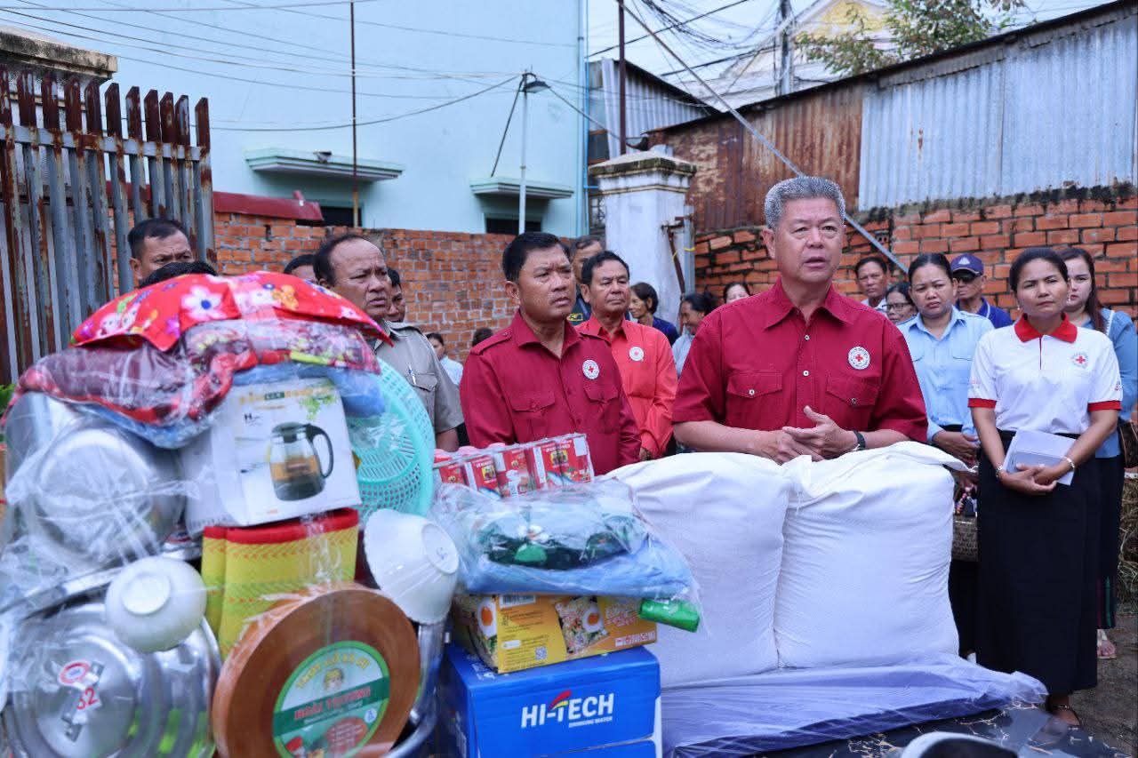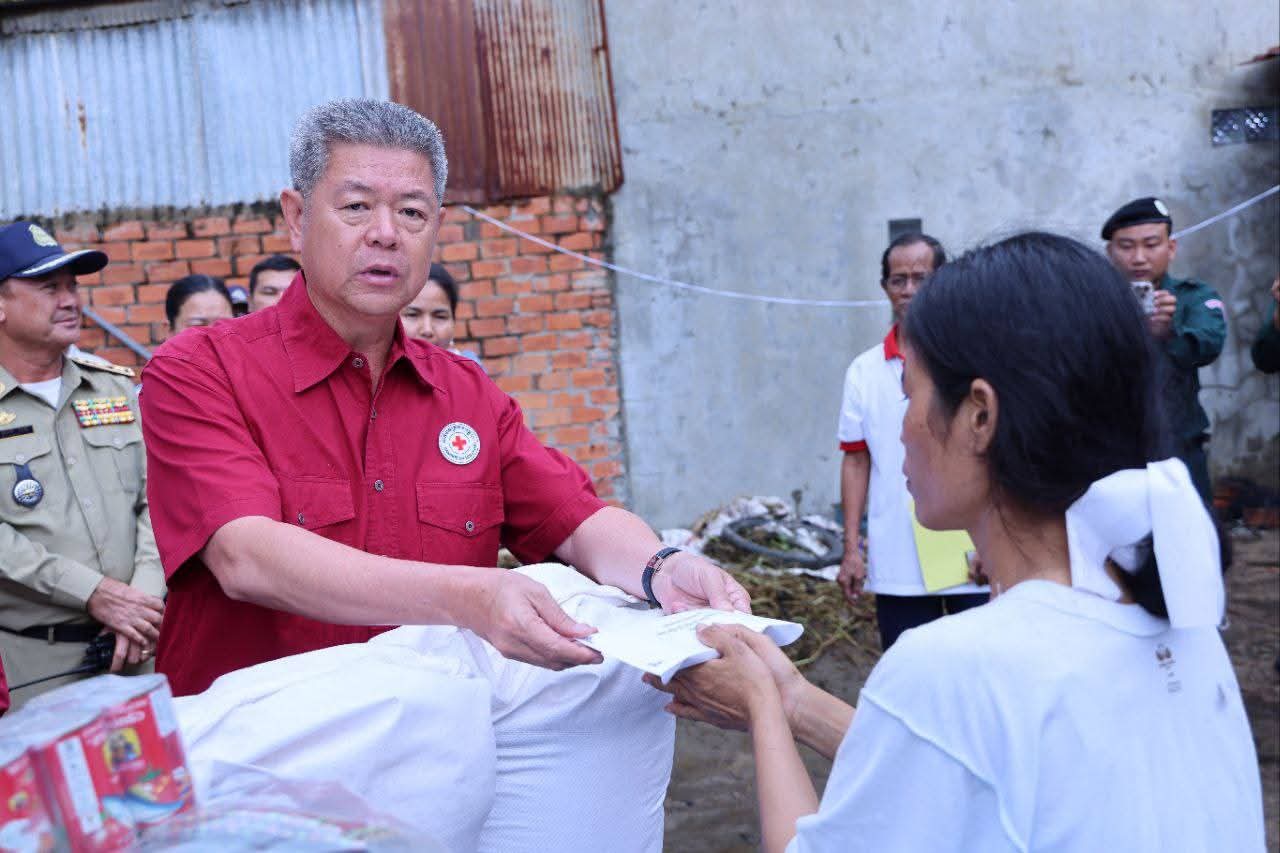 កណ្តាល៖ នាសៀលថ្ងៃទី២៥ ខែសីហា ឆ្នាំ២០២៥ ឯកឧត្តម គួច ចំរើន អភិបាល នៃគណៈអភិបាលខេត្តកណ្តាល និងជាប្រធានគណៈកម្មាធិការសាខាកាកបាទក្រហមកម្ពុជាខេត្ត បានអញ្ជើញចុះសួរសុខទុក្ខ និងនាំយកអំណោយមនុស្សធម៌របស់កាកបាទក្រហមកម្ពុជា ដែលមានសម្តេចកិត្តិព្រឹទ្ធបណ្ឌិត ប៊ុន រ៉ានី ហ៊ុនសែន ជាប្រធាន ទៅចែកជូនដល់ប្រជាពលរដ្ឋរងគ្រោះដោយគ្រោះអគ្គិភ័យឆេះផ្ទះ ចំនួន ០១គ្រួសារ កាលពីថ្ងៃទី២៣ ខែសីហា ឆ្នាំ២០២៥ វេលាម៉ោង១១នឹង៣០នាទី ដែលបណ្ដាឲ្យ ស្រ្តីម្នាក់ជាម្ចាស់ផ្ទះ បានស្លាប់ក្នុងពេលកើតហេតុ ស្ថិតនៅភូមិព្រែកតាពៅ សង្កាត់ដើមមៀន ក្រុងតាខ្មៅ ខេត្តកណ្តាល។