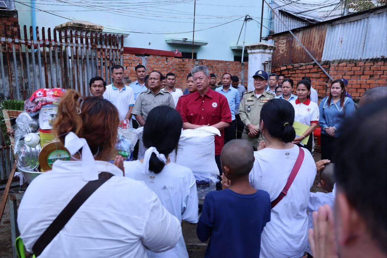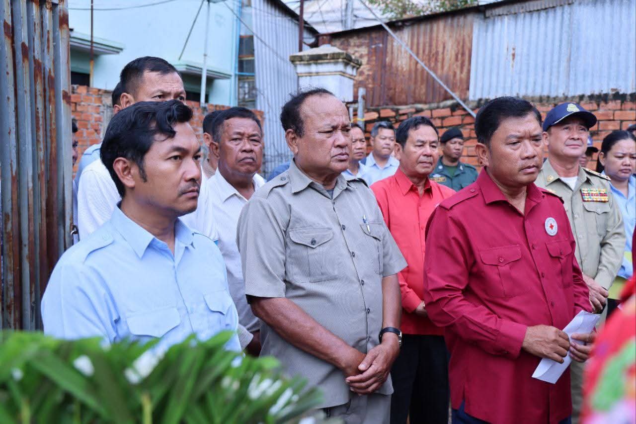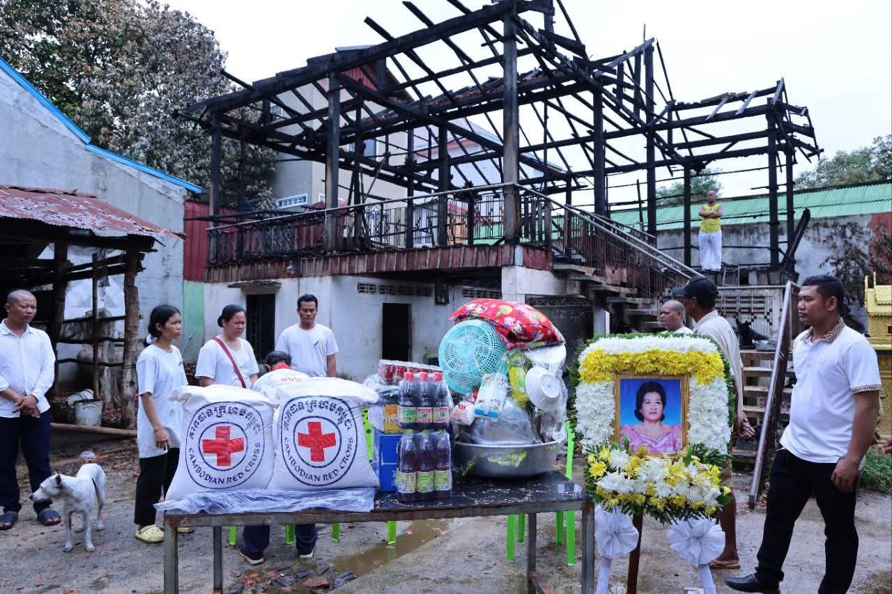 ឯកឧត្តម គួច ចំរើន អញ្ជើញចូលរួមរំលែកទុក្ខ និងនាំយកអំណោយមនុស្សធម៌ពីសាខាកាកបាទក្រហមកម្ពុជាខេត្តកណ្តាល ជូនប្រជាពលរដ្ឋរងគ្រោះដោយអគ្គិភ័យឆេះផ្ទះ ចំនួន០១គ្រួសារ បណ្ដាលឱ្យស្លាប់ម្នាក់ នៅក្រុងតាខ្មៅ