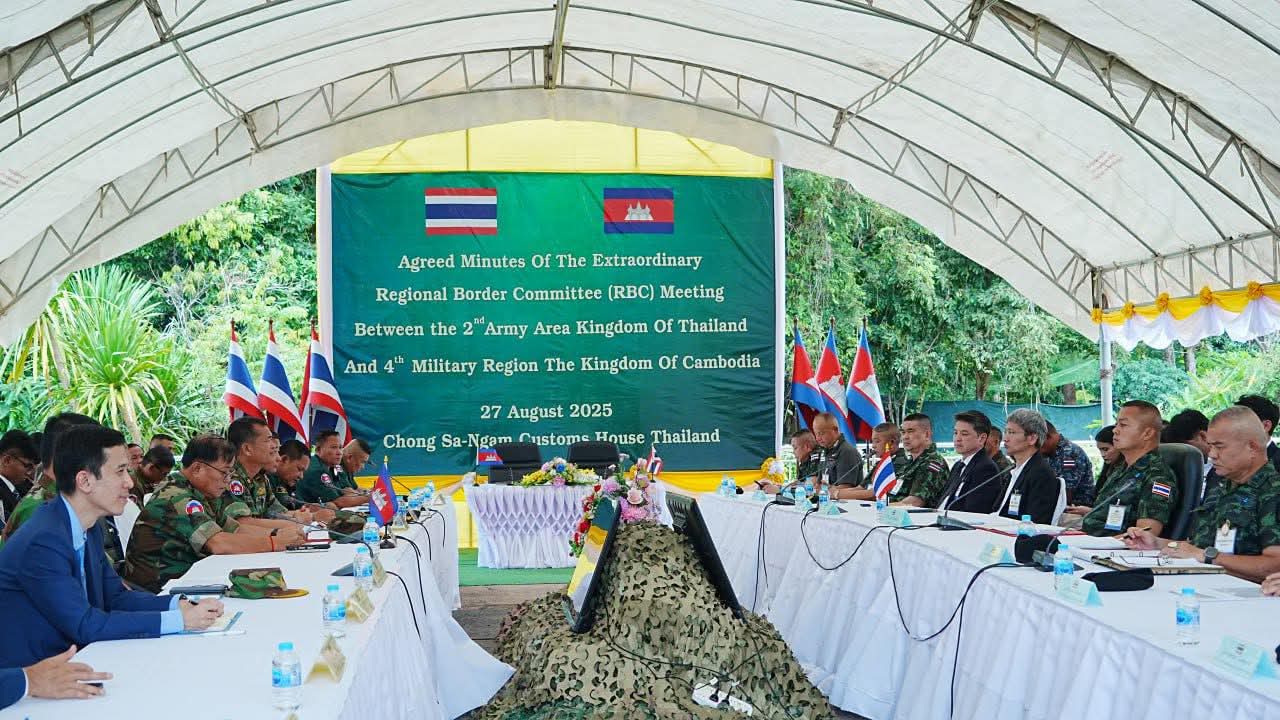 កិច្ចប្រជុំវិសាមញ្ញរបស់គណៈកម្មាធិការព្រំដែនថ្នាក់យោធភូមិភាគកម្ពុជា-ថៃ (RBC) បានចាប់ផ្តើមនៅម៉ោង១១៖០០នាទីព្រឹក និងបានបញ្ចប់ដោយជោគជ័យ នៅវេលាម៉ោង១១៖៥៣នាទីព្រឹក ថ្ងៃទី២៧ ខែសីហា ឆ្នាំ២០២៥។