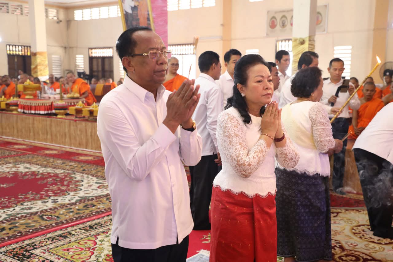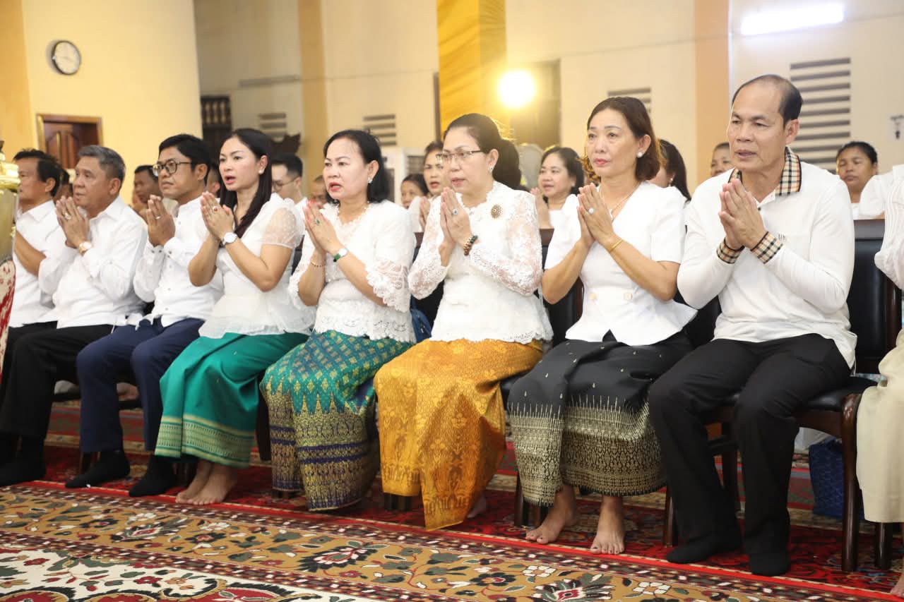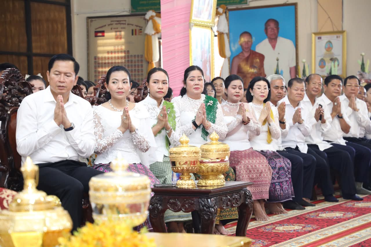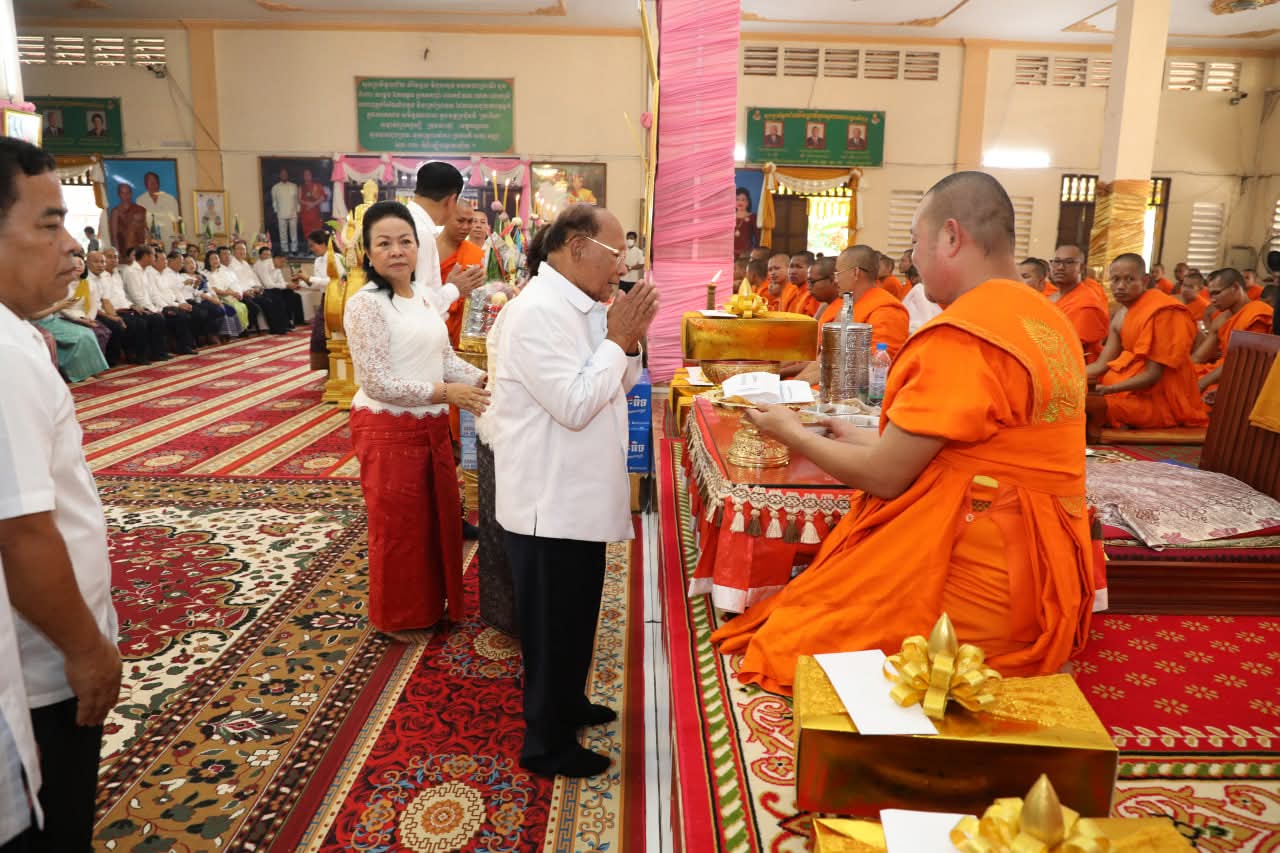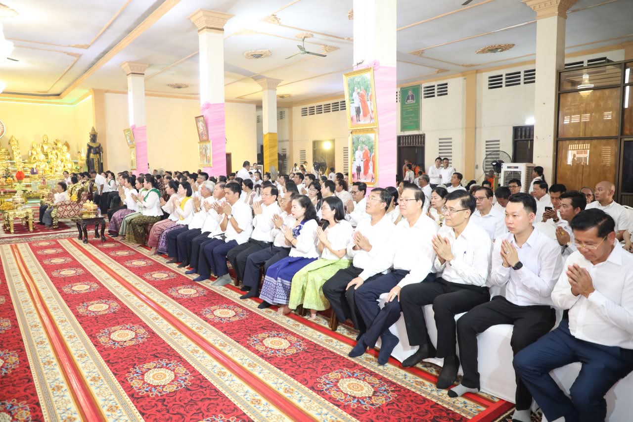 សម្តេចអគ្គមហាពញាចក្រី និងសម្តេចធម្មវិសុទ្ធវង្សា បានអញ្ជើញប្រតិបត្ដិព្រះធម៌ សូត្រមន្ដ នមស្ការចម្រើនព្រះបរិត្ដ រាប់បាត្រ ប្រគេនព្រះសង្ឃ បង្សុកូល ឧទ្ទិសកុសលផលបុណ្យជូនដល់វិញ្ញាណក្ខន្ធបុព្វការីជន មានមាតាបិតា ជីដូនជីតា ញាតិកាទាំង៧សន្ដាន និងជូន ចំពោះវិញ្ញាណក្ខន្ធបុព្វបុរសអ្នកស្នេហាជាតិ ដែលបានពលី អាយុជីវិត ដើម្បីភាពគង់វង្សនៃបូរណភាពទឹកដី ជាតិមាតុភូមិឱ្យ ទទួលបានសុខសន្ដិភាព ភាពរីកចម្រើនសម្បូររុងរឿង។