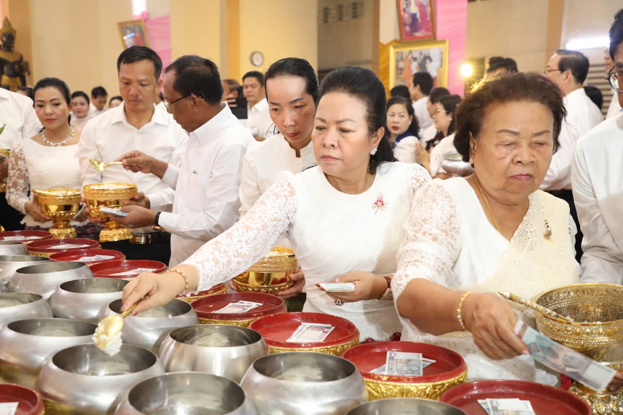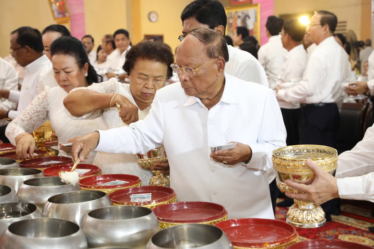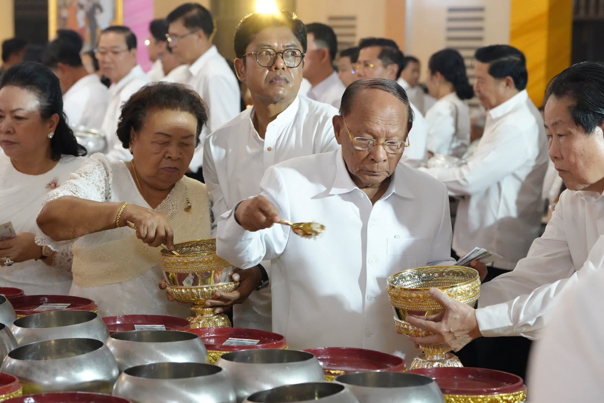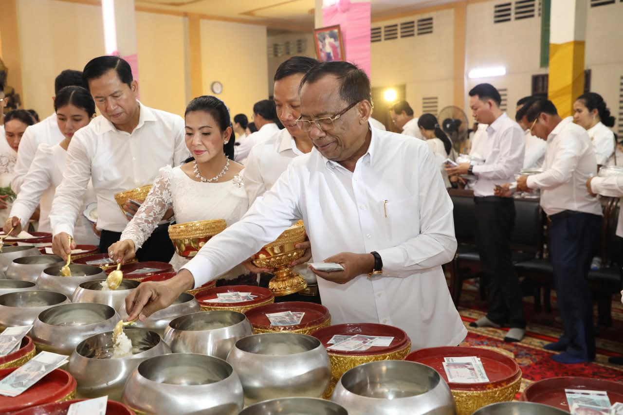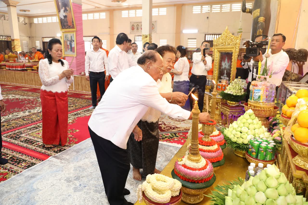 សម្តេចអគ្គមហាពញាចក្រី និងសម្តេចធម្មវិសុទ្ធវង្សា បានអញ្ជើញប្រតិបត្ដិព្រះធម៌ សូត្រមន្ដ នមស្ការចម្រើនព្រះបរិត្ដ រាប់បាត្រ ប្រគេនព្រះសង្ឃ បង្សុកូល ឧទ្ទិសកុសលផលបុណ្យជូនដល់វិញ្ញាណក្ខន្ធបុព្វការីជន មានមាតាបិតា ជីដូនជីតា ញាតិកាទាំង៧សន្ដាន និងជូន ចំពោះវិញ្ញាណក្ខន្ធបុព្វបុរសអ្នកស្នេហាជាតិ ដែលបានពលី អាយុជីវិត ដើម្បីភាពគង់វង្សនៃបូរណភាពទឹកដី ជាតិមាតុភូមិឱ្យ ទទួលបានសុខសន្ដិភាព ភាពរីកចម្រើនសម្បូររុងរឿង។
