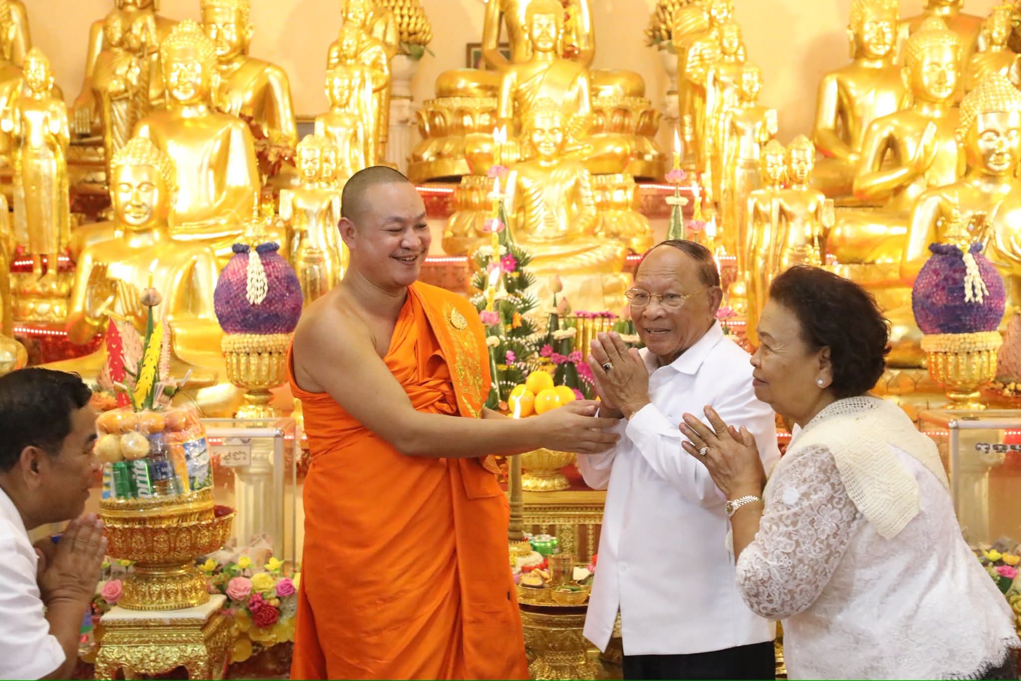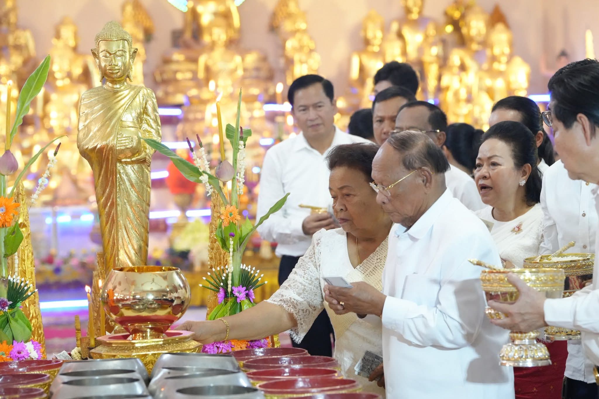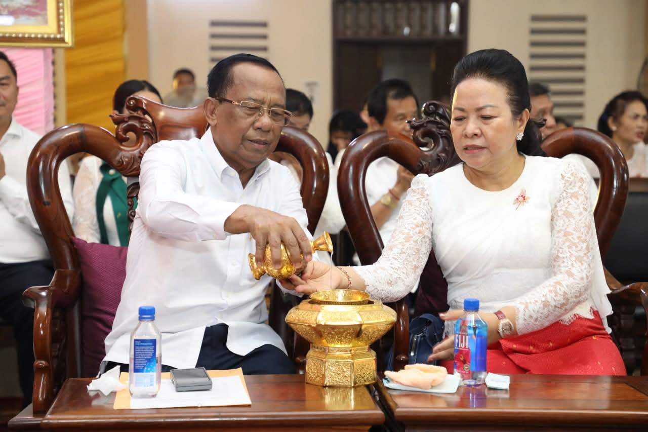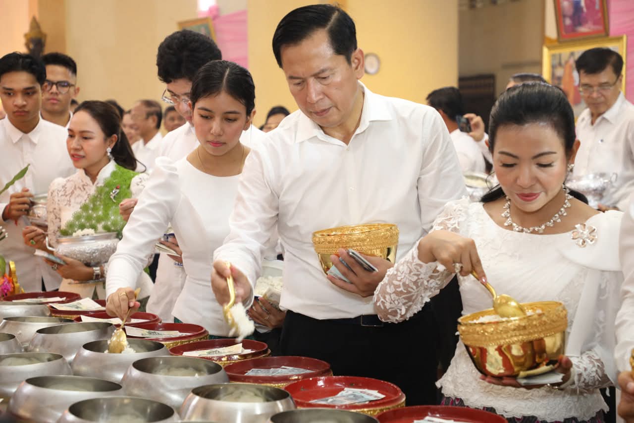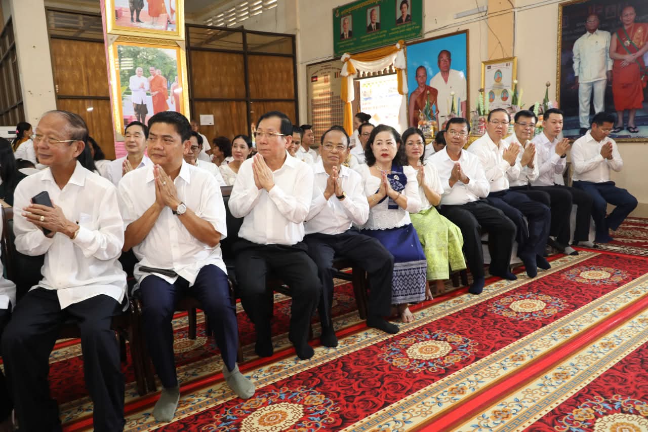 សម្តេចអគ្គមហាពញាចក្រី និងសម្តេចធម្មវិសុទ្ធវង្សា បានអញ្ជើញប្រតិបត្ដិព្រះធម៌ សូត្រមន្ដ នមស្ការចម្រើនព្រះបរិត្ដ រាប់បាត្រ ប្រគេនព្រះសង្ឃ បង្សុកូល ឧទ្ទិសកុសលផលបុណ្យជូនដល់វិញ្ញាណក្ខន្ធបុព្វការីជន មានមាតាបិតា ជីដូនជីតា ញាតិកាទាំង៧សន្ដាន និងជូន ចំពោះវិញ្ញាណក្ខន្ធបុព្វបុរសអ្នកស្នេហាជាតិ ដែលបានពលី អាយុជីវិត ដើម្បីភាពគង់វង្សនៃបូរណភាពទឹកដី ជាតិមាតុភូមិឱ្យ ទទួលបានសុខសន្ដិភាព ភាពរីកចម្រើនសម្បូររុងរឿង។