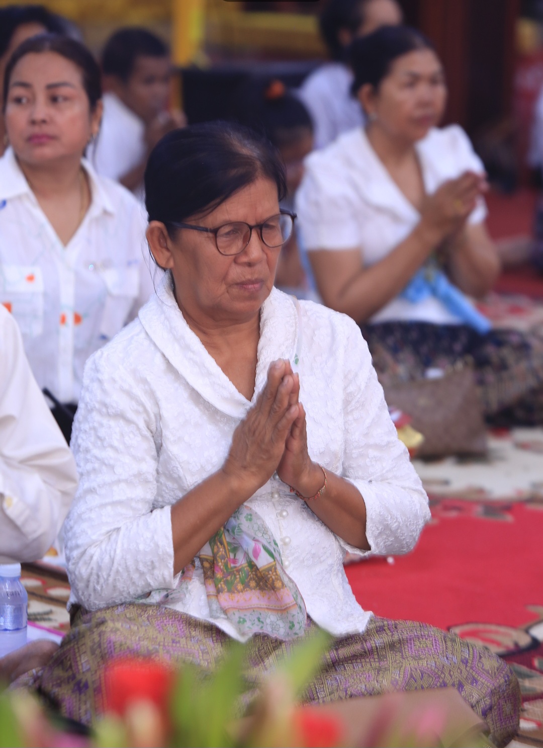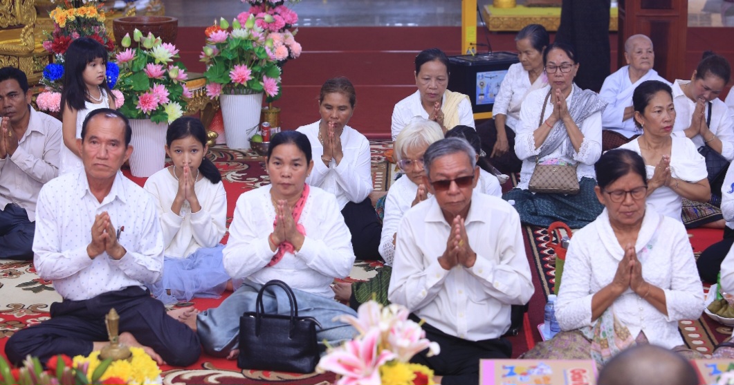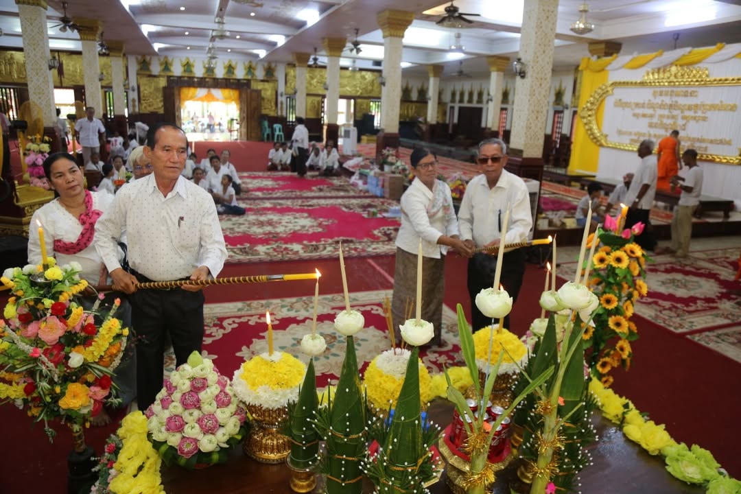 បន្ទាប់ពីធ្វើកិច្ចគោរពបូជា ផ្កាទៀនធូក ចំពោះព្រះពុទ្ធរូបព្រះសម្មាសាម្ពុទ្ធ និងនមសកា ព្រះរតនត្រ័យ ទៅតាមគន្លងព្រះធម៌ព្រះសម្មាសាម្ពុទ្ធរួច បានវេរប្រគេននូវទ័យ្យទានវត្ថុដល់ព្រះសង្ឃ សម្រាប់ប្រើប្រាស់ទៅតាមពុទ្ធានុញ្ញាត្តិ ព្រមទាំងបានឧទ្ទិសកុសលផលបុណ្យ ជូនឯកឧត្តម លោកជំទាវ លោកយាយ លោកតា ពុទ្ធបរិស័ទ មន្ត្រីរាជការ និងប្រជាពលរដ្ឋក្នុងខេត្តកណ្ដាលទាំងមូល សូមទទួលបាននូវមគ្គផល កុសលផលបុណ្យ តាមសទ្ធាជ្រះថ្លារៀងៗខ្លួន និងសូមជួបប្រកបតែនូវពុទ្ធពរ ទាំង៥ប្រការ គឺអាយុ វណ្ណ: សុខ: ពល: និង បដិភាណ: កុំបីឃ្លៀងឃ្លាតឡើយ។