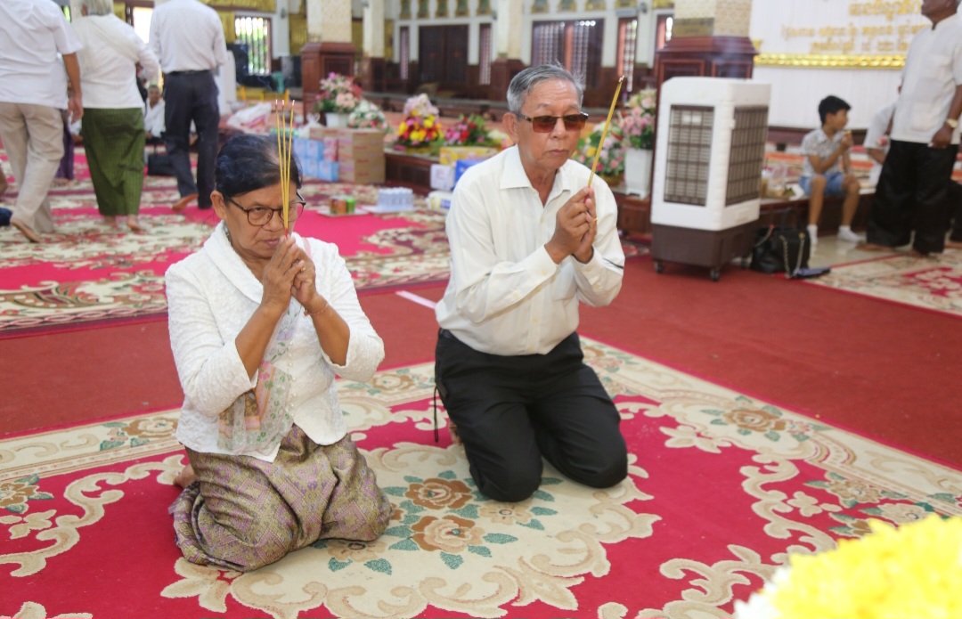 លោកជៀម ខូយ និងភរិយាលោកសុខសុខុននិងភរិយា សូត្រមន្តកាន់បិណ្ឌវេនទី៨ នៅវត្តព្រែកសំរោងស្ថិតនៅសង្កាត់តាខ្មៅ ក្រុងតាខ្មៅ ខេត្តកណ្តាល