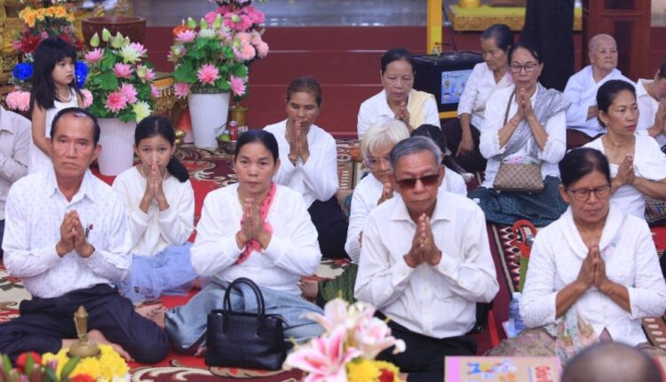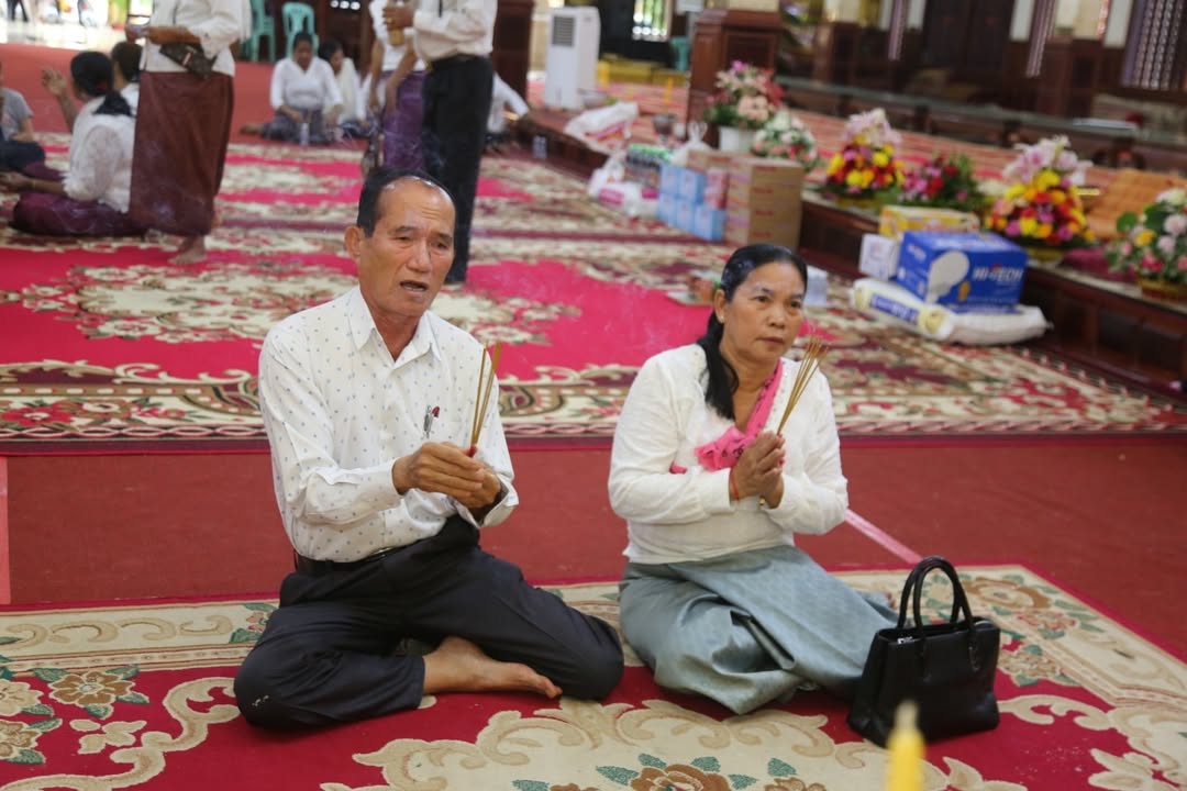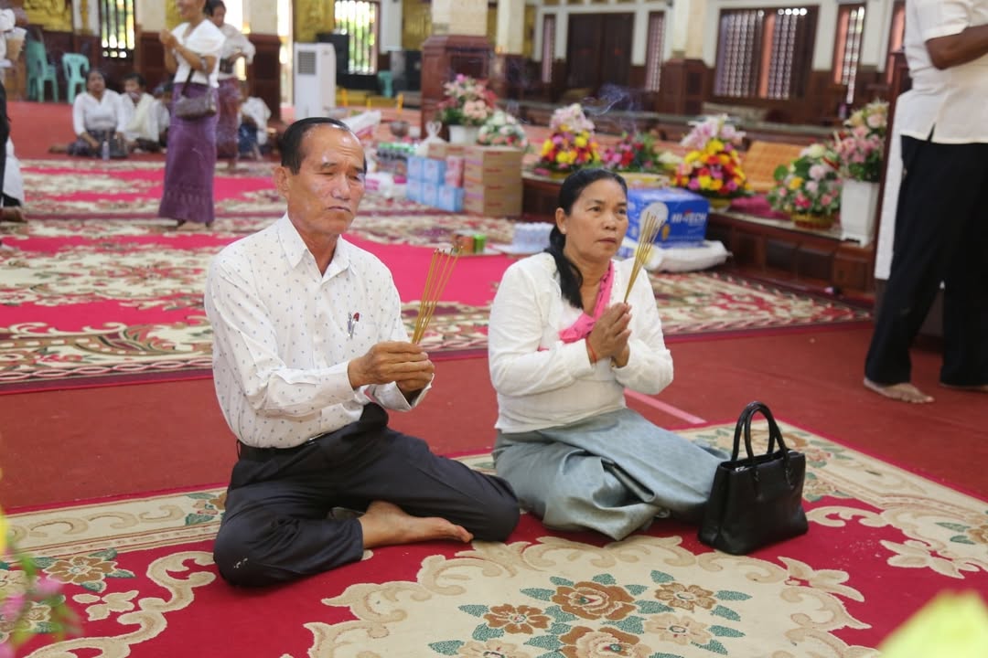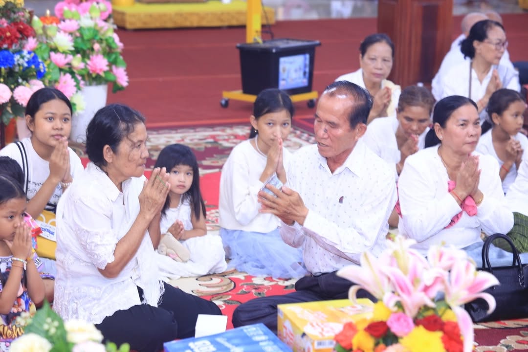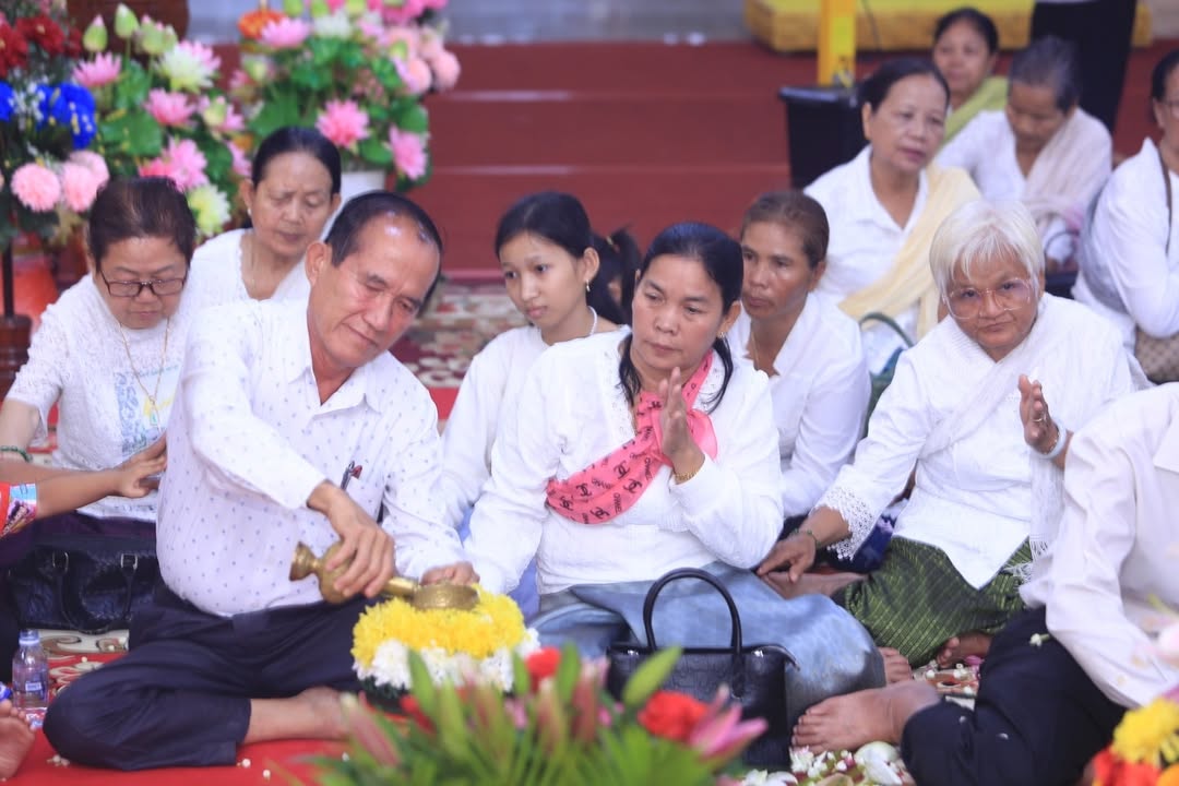 ខេត្តកណ្តាល៖ នៅរសៀល ថ្ងៃអាទិត្យ ៧រោច ខែភទ្របទ ឆ្នាំម្សាញ់ សប្តស័ក ពុទ្ធសករាជ ២៥៦៩ ត្រូវនឹងថ្ងៃទី១៤ ខែកញ្ញា ឆ្នាំ២០២៥ លោកជៀម ខូយជាចៅសង្កាត់តាខ្មៅនិងរិយាព្រមទាំងកូនចៅ និងលោកហ៊ុន សុខុនចៅសង្កាត់់ស្វាយរលំនិងភរិយាលោកលោកស្រី សមាជិកក្រុមប្រឹក្សាសង្កាត់ទាំងពីរ មេភូមិអនុភូមិជំនួយការភូមិទាំងពីររ និងប្រជាពុទ្ធបរិស័ទ បានអញ្ជើញចូលរួមក្នុងពិធីសូត្រមន្តកាន់បិណ្ឌទី៨ ព្រមទាំងបានធ្វើបទនមស្ការព្រះរតនត្រៃ សមាទានសីល និមន្តព្រះសង្ឃចម្រើនព្រះបរិត្ត ប្រគេនទេយ្យវត្ថុដល់ព្រះសង្ឃ នៅវត្តព្រែកសំរោង ស្ថិតភូមិព្រែកសំរោង សង្កាត់តាខ្មៅ ក្រុងតាខ្មៅ ខេត្តកណ្តាល។