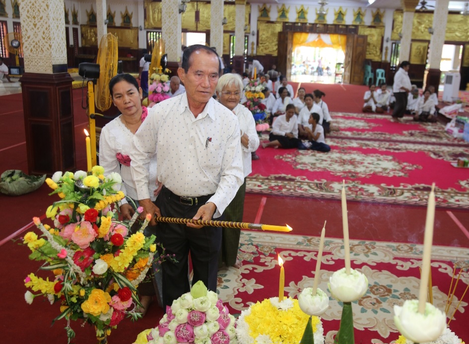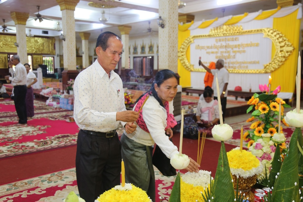បន្ទាប់ពីធ្វើកិច្ចគោរពបូជា ផ្កាទៀនធូក ចំពោះព្រះពុទ្ធរូបព្រះសម្មាសាម្ពុទ្ធ និងនមសកា ព្រះរតនត្រ័យ ទៅតាមគន្លងព្រះធម៌​ព្រះសម្មាសាម្ពុទ្ធរួច បានវេរប្រគេននូវទ័យ្យទានវត្ថុដល់ព្រះសង្ឃ សម្រាប់ប្រើប្រាស់ទៅតាមពុទ្ធានុញ្ញាត្តិ ព្រមទាំងបានឧទ្ទិសកុសលផលបុណ្យ ជូនឯកឧត្តម លោកជំទាវ លោកយាយ លោកតា ពុទ្ធបរិស័ទ មន្ត្រីរាជការ និងប្រជាពលរដ្ឋក្នុងខេត្តកណ្ដាលទាំងមូល សូមទទួលបាននូវមគ្គផល កុសលផលបុណ្យ តាមសទ្ធាជ្រះថ្លារៀងៗខ្លួន និងសូមជួបប្រកបតែនូវពុទ្ធពរ ទាំង៥ប្រការ គឺអាយុ វណ្ណ: សុខ: ពល: និង បដិភាណ: កុំបីឃ្លៀងឃ្លាតឡើយ។