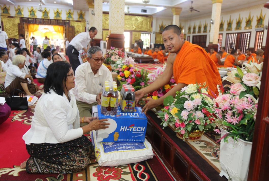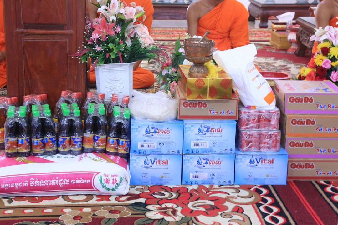 ជាមួយគ្នានោះ លោក ជៀម ខូយ និងលោកស្រីហ៊ាង វួចស្រីព្រមទាំងលោកហ៊ុន សិខុន រួមភរិយាក៏បានប្រគេនព្រះគ្រូចៅអធិការវត្តបច្ច័យចំនួន ៤៤០.០០០០រៀល សម្រាប់កសាងសមិទ្ធផលនានា នៅវត្តព្រែកសំរោង។