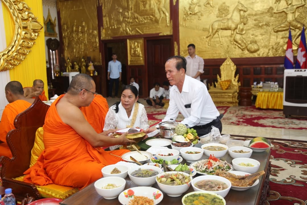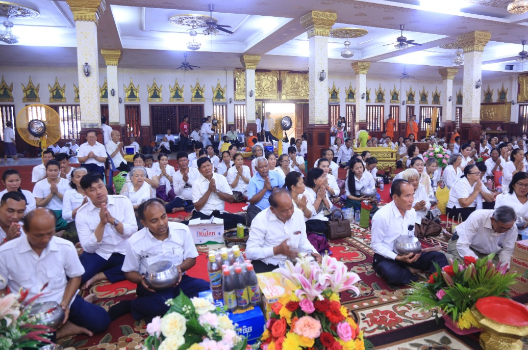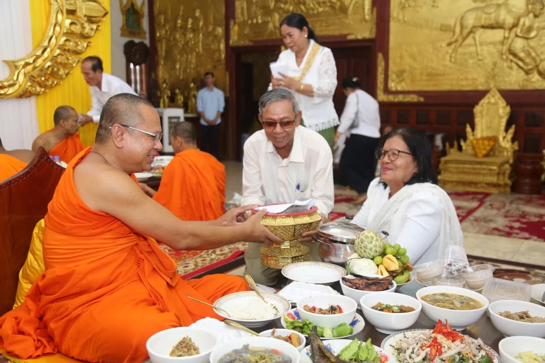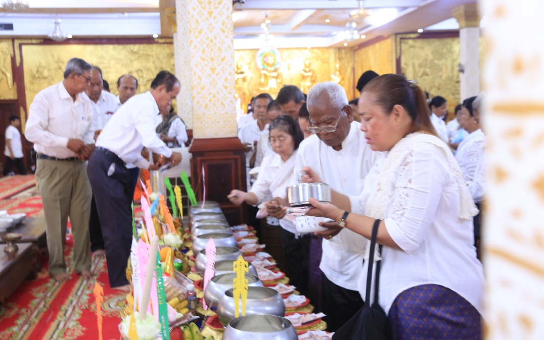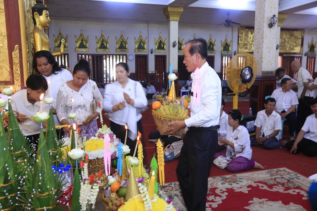 លោក ជៀម ខូយ និងលោកស្រីហ៊ាង វួចស្រីព្រមទាំងកូនចៅ និងលោកហ៊ុន សុខុនព្រមទាំងភរិយាកាន់បិណ្ឌវេនទី៨ នៅវត្តព្រែកសំរោស្ថិតក្នុងសង្កាត់តាខ្មៅ ក្រុងតាខ្មៅ ខេត្តកណ្តាល