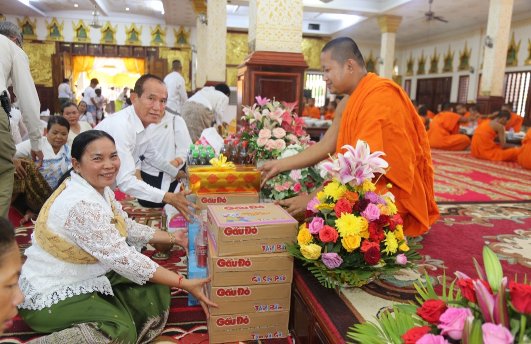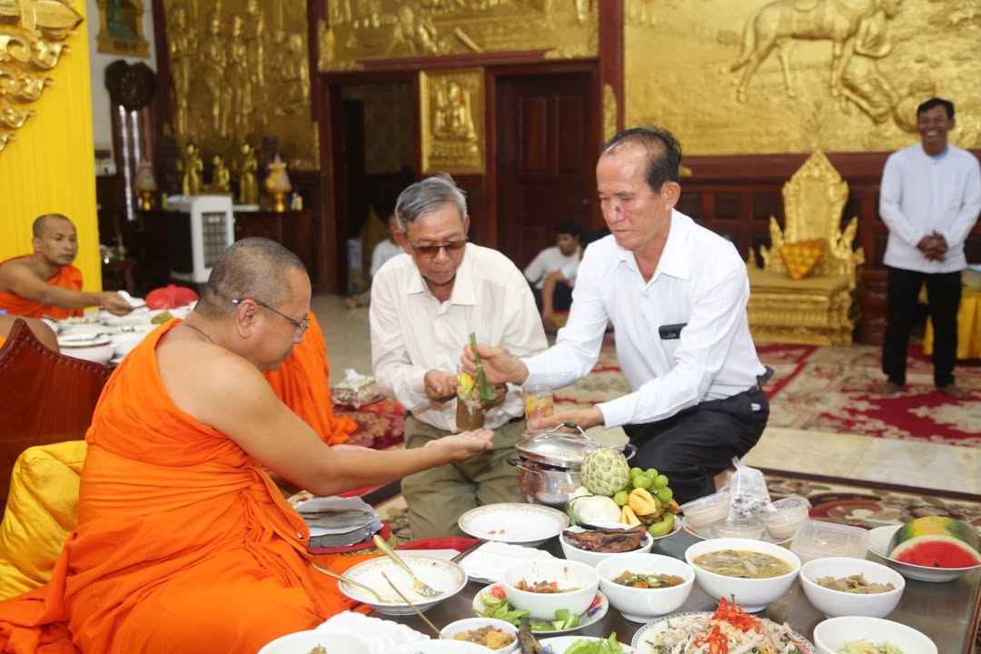 នាឱកាសនោះ លោក ជៀម ខូយ និងលោកស្រីហ៊ាង វួចស្រីលោកហ៊ុន សុខុន ភរិយារួមជាមួយ ក្រុមប្រឹក្សា និងមេភូមិ អនុភូមិជំនួយការភូមិទាំងពីរ បានរួមគ្នាធ្វើកិច្ចនមស្សការបង្សុកូល ព្រមទាំងបាននាំយកនូវទេយ្យទាន និងបច្ច័យវេរប្រគេនជូនព្រះសង្ឃ ដើម្បីឧទ្ទិសនូវផល្លាអានិសង្សជូនទៅដល់វិញ្ញាណក្ខន្ធបុព្វការីជន មានមាតាបិតា ជីដូនជីតា ញាតិការទាំងប្រាំពីរសន្តានជាដើម។