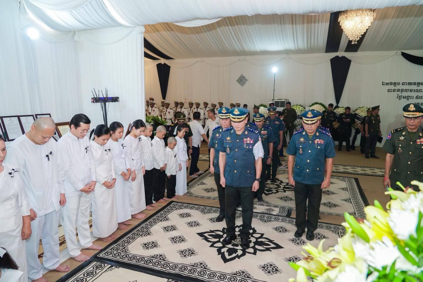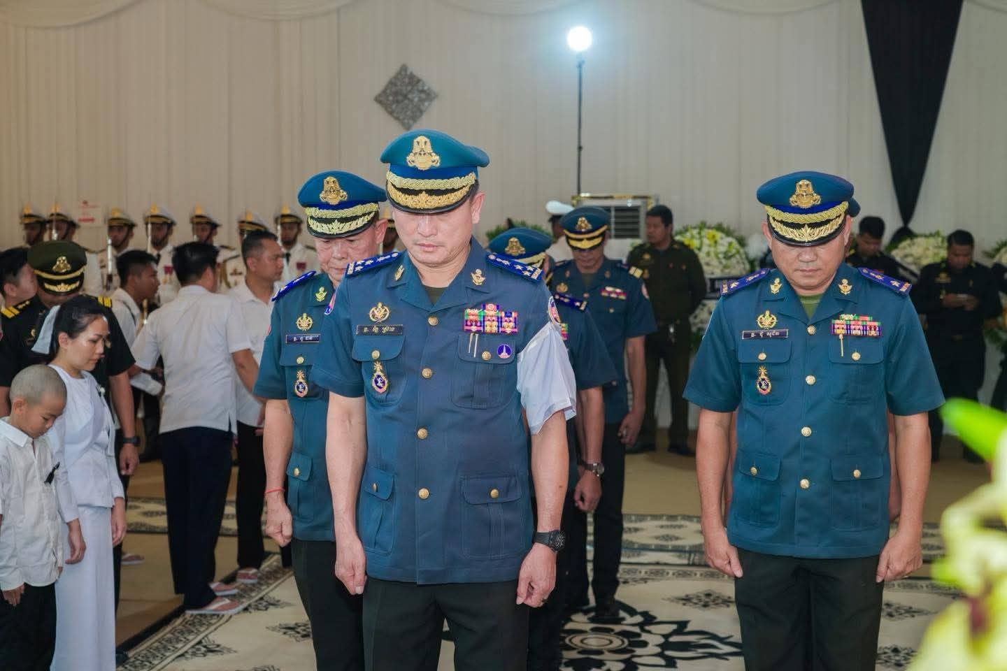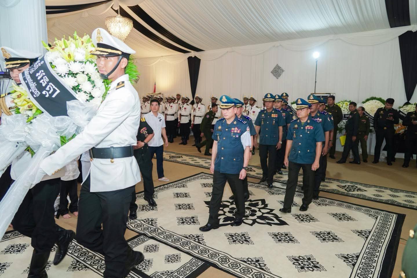 (ភ្នំពេញ)៖ នារសៀលថ្ងៃទី១៨ ខែកញ្ញា ឆ្នាំ២០២៥ លោកឧត្តមសេនីយ៍ឯក រ័ត្ន ស្រ៊ាង មេបញ្ជាការរង កងរាជអាវុធហត្ថលើផ្ទៃប្រទេស ជា មេបញ្ជាការ កងរាជអាវុធហត្ថ រាជធានីភ្នំពេញ បានដឹកនាំប្រតិភូចូលរួមគោរពវិញ្ញាណក្ខន្ធសព ឯកឧត្តម នាយឧត្តមសេនីយ៍ ហេង បូរិន្ទ រដ្ឋលេខាធិការ ក្រសួងការពារជាតិ ដែលបានទទួលមរណភាព នៅថ្ងៃទី១៦ ខែកញ្ញា ឆ្នាំ២០២៥ វេលាម៉ោង ២:២៥នាទីរសៀល ដោយរោគគាពាធ ក្នុងជន្មាយុ៦៩ឆ្នាំ។ សពតម្កល់ធ្វើបុណ្យតាមប្រពៃណីនៅគេហដ្ឋាននៃសពស្ថិតនៅភូមិគ្រឹះលេខ BT2-786-790 ភូមិគៀនឃ្លាំង សង្កាត់ជ្រោយចង្វារ ខណ្ឌជ្រោយចង្វារ (តំបន់អភិវឌ្ឍន៍ OCIC) រាជធានីភ្នំពេញ។