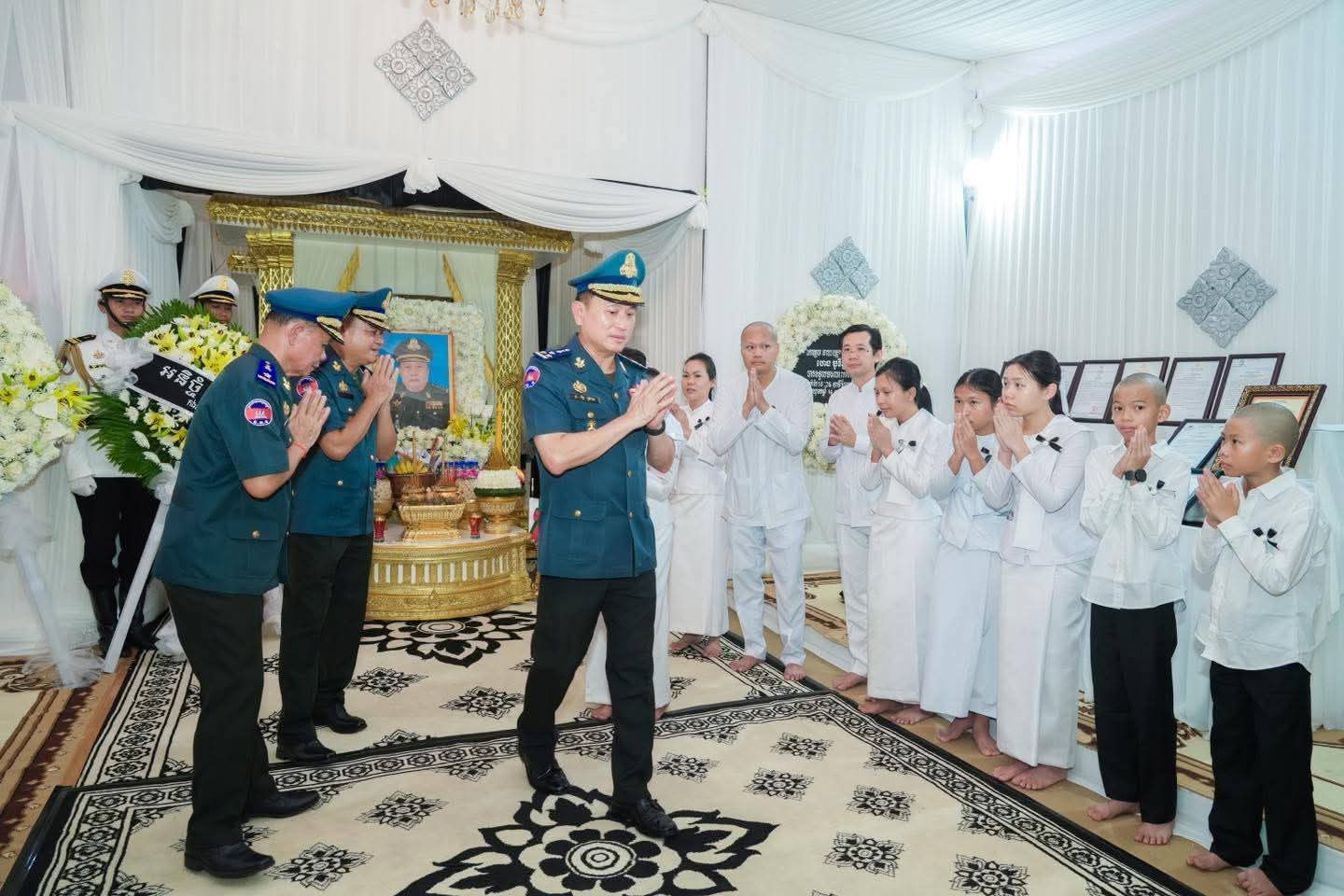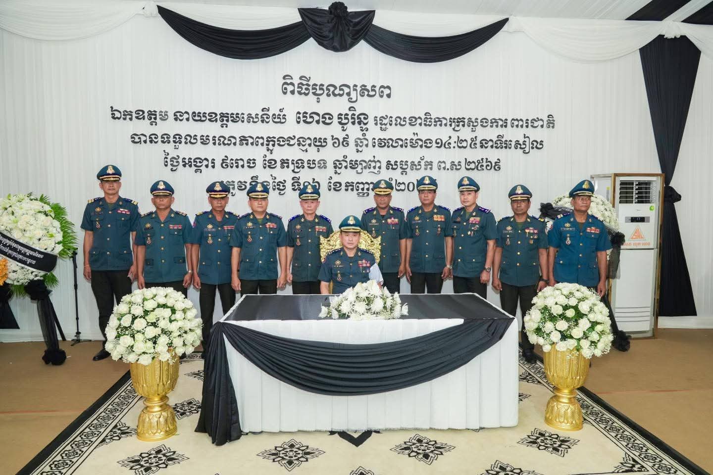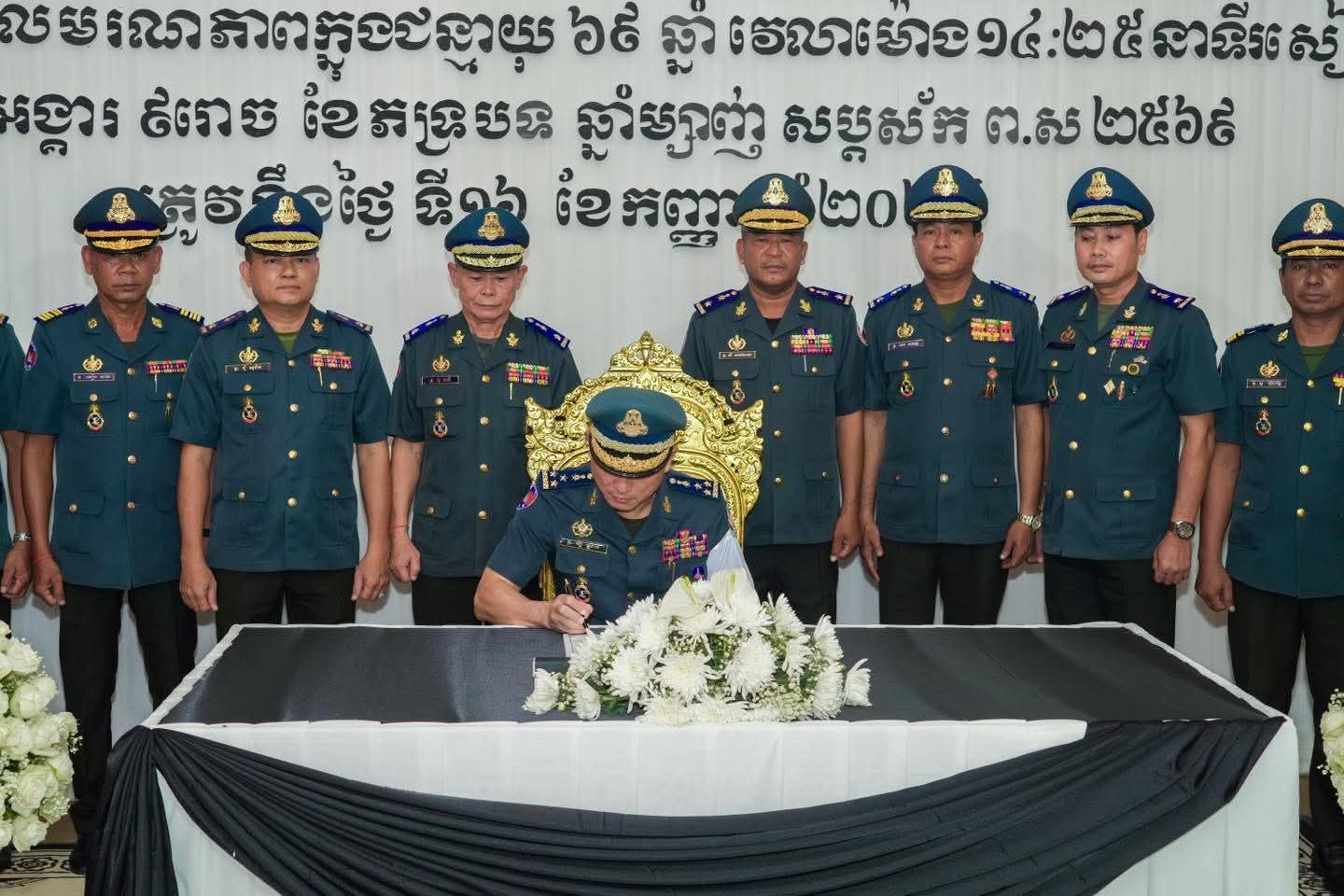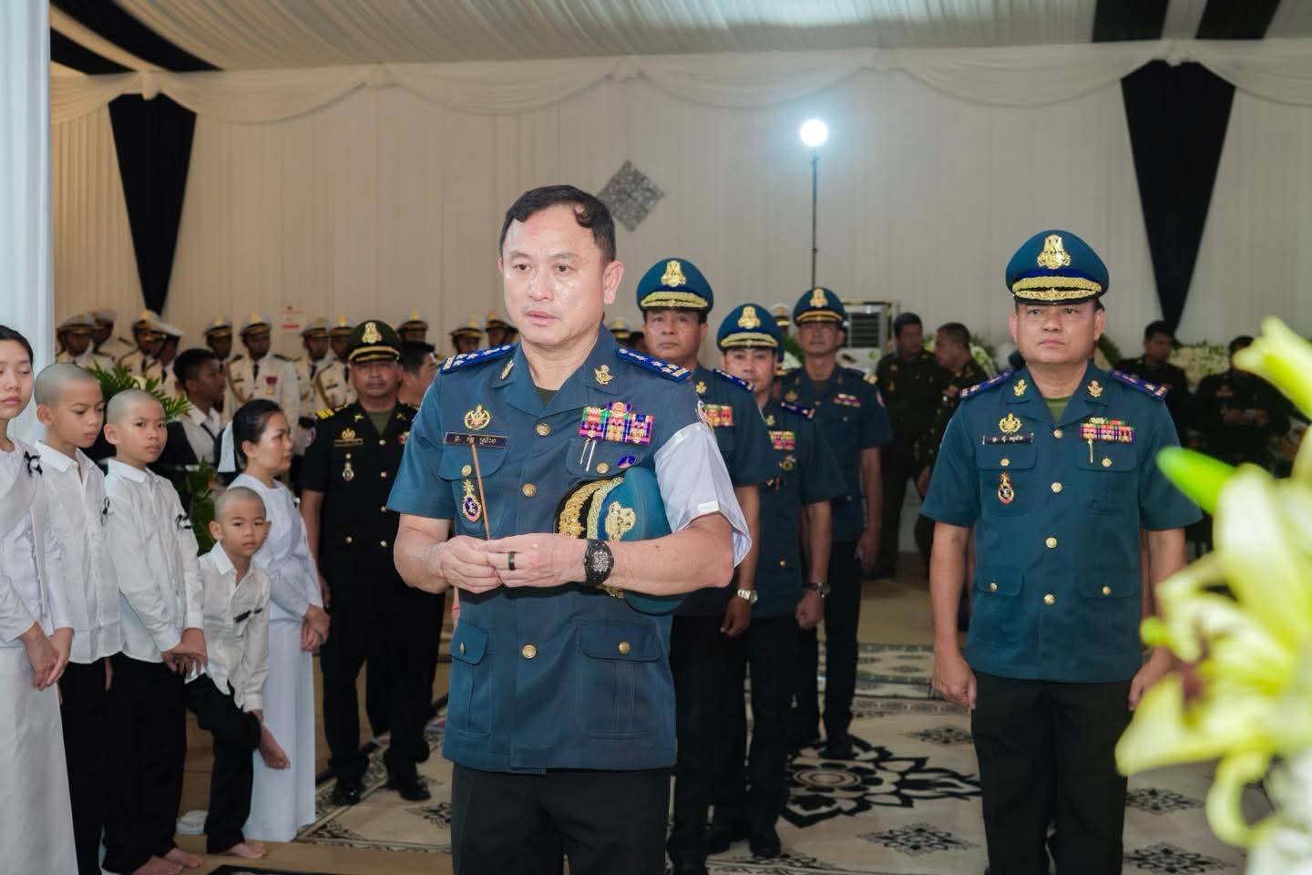 (ភ្នំពេញ)៖ នារសៀលថ្ងៃទី១៨ ខែកញ្ញា ឆ្នាំ២០២៥ លោកឧត្តមសេនីយ៍ឯក រ័ត្ន ស្រ៊ាង មេបញ្ជាការរង កងរាជអាវុធហត្ថលើផ្ទៃប្រទេស ជា មេបញ្ជាការ កងរាជអាវុធហត្ថ រាជធានីភ្នំពេញ បានដឹកនាំប្រតិភូចូលរួមគោរពវិញ្ញាណក្ខន្ធសព ឯកឧត្តម នាយឧត្តមសេនីយ៍ ហេង បូរិន្ទ រដ្ឋលេខាធិការ ក្រសួងការពារជាតិ ដែលបានទទួលមរណភាព នៅថ្ងៃទី១៦ ខែកញ្ញា ឆ្នាំ២០២៥ វេលាម៉ោង ២:២៥នាទីរសៀល ដោយរោគគាពាធ ក្នុងជន្មាយុ៦៩ឆ្នាំ។ សពតម្កល់ធ្វើបុណ្យតាមប្រពៃណីនៅគេហដ្ឋាននៃសពស្ថិតនៅភូមិគ្រឹះលេខ BT2-786-790 ភូមិគៀនឃ្លាំង សង្កាត់ជ្រោយចង្វារ ខណ្ឌជ្រោយចង្វារ (តំបន់អភិវឌ្ឍន៍ OCIC) រាជធានីភ្នំពេញ។