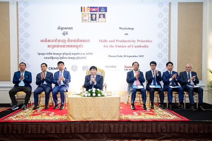 (ភ្នំពេញ)៖ ឯកឧត្ដម ហេង សួរ រដ្ឋមន្ត្រីក្រសួងការងារ និងបណ្ដុះបណ្ដាលវិជ្ជាជីវៈ បានអញ្ជើញជាអធិបតីក្នុងពិធីបើកសិក្ខាសាលា ស្ដីពី “អាទិភាពជំនាញ និងផលិតភាពសម្រាប់អនាគតកម្ពុជា” នាព្រឹកថ្ងៃទី៣០ ខែកញ្ញា ឆ្នាំ២០២៥នេះ នៅសណ្ឋាគាររ៉ាហ្វល ឡឺរ៉ូយ៉ាល់ ដែលរៀបចំដោយសហព័ន្ធនិយោជក និងសមាគមពាណិជ្ជកម្មកម្ពុជា (CAMFEBA) មានការចូលរួមពីថ្នាក់ដឹកនាំ និងមន្ត្រីជំនាញរបស់ក្រសួងការងារ និងបណ្តុះបណ្តាលវិជ្ជាជីវៈ, ស្ថាប័នពាក់ព័ន្ធ, តំណាងនិយោជក, តំណាងកម្មករនិយោជិត, អង្គការអន្តរជាតិខាងការងារ (ILO) ដៃគូអភិវឌ្ឍន៍ និងដៃគូសង្គមជាច្រើនទៀត។