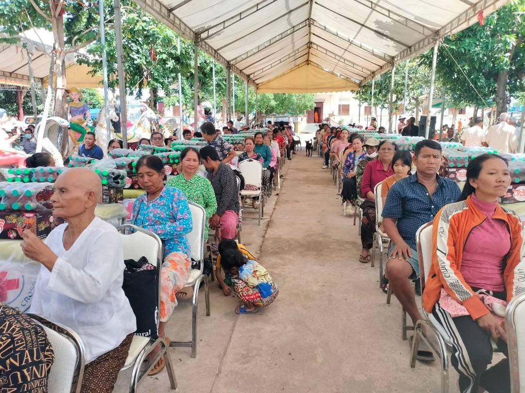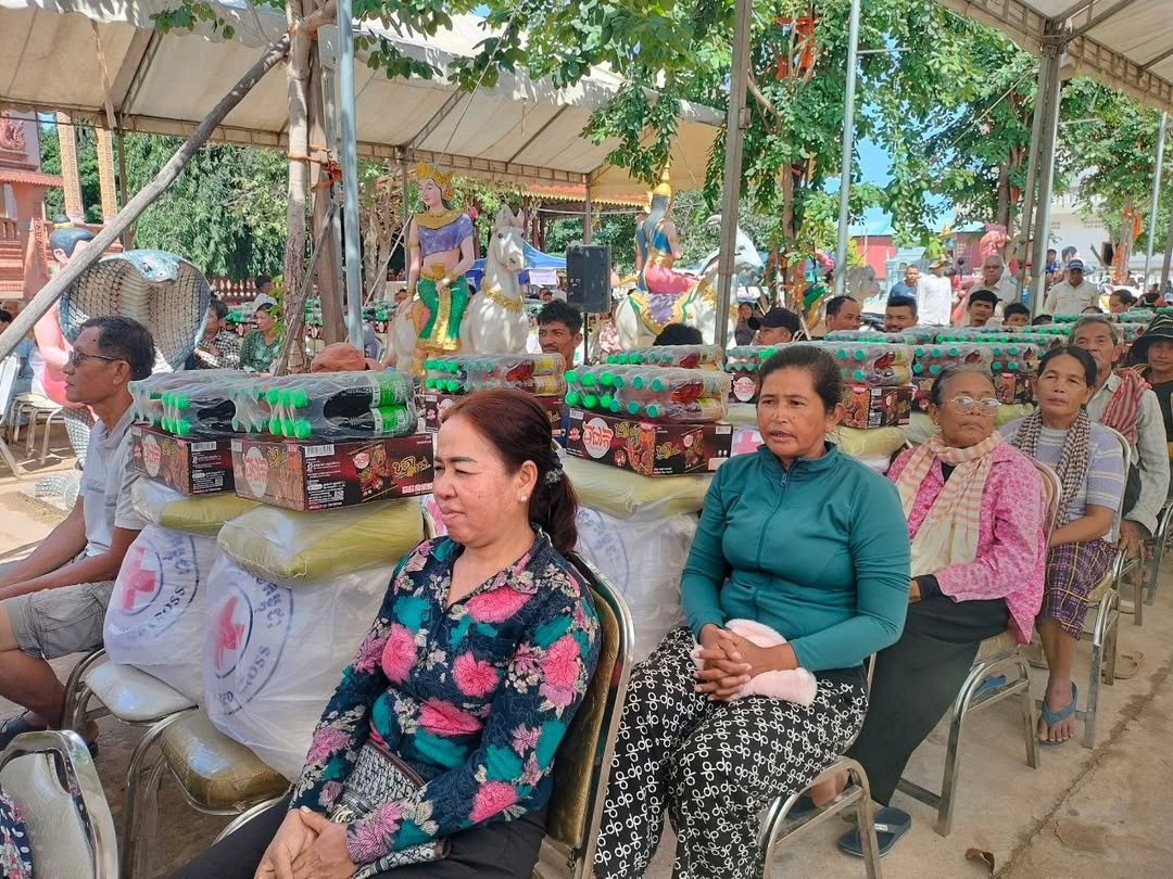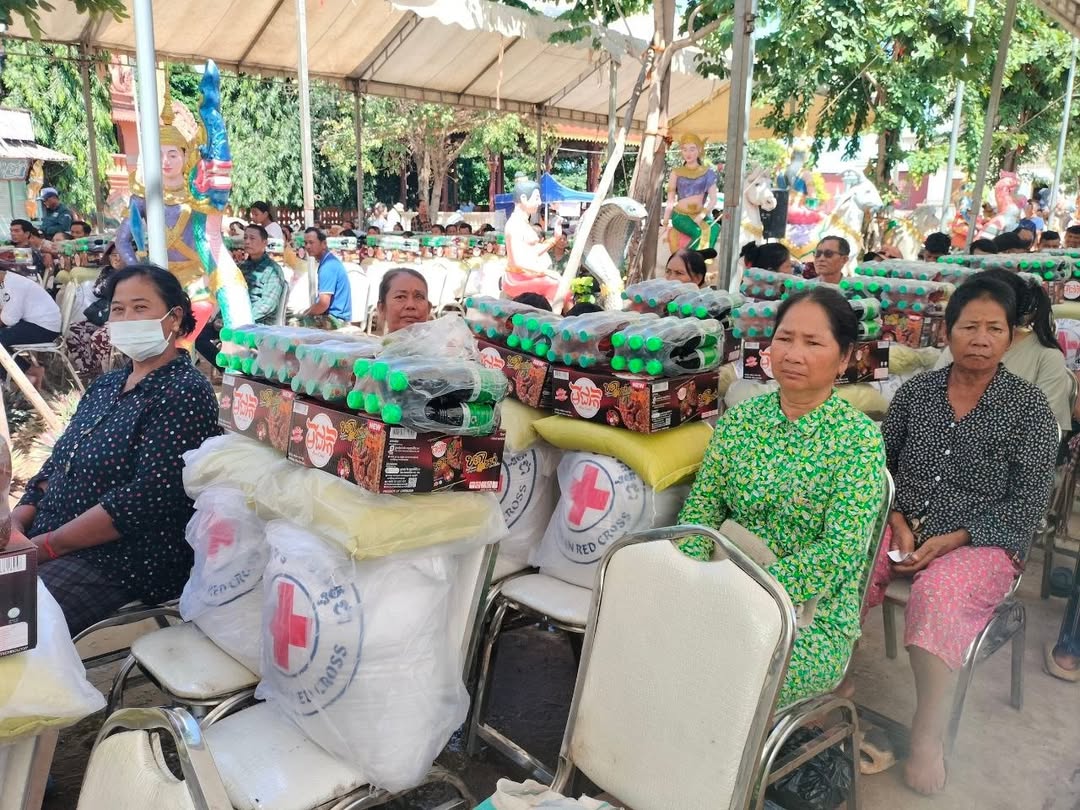 ប្រតិភូសាខាបានឧបត្ថម្ភអំណោយជូនជនរងគ្រោះក្នុង១គ្រួសារទទួលបាន៖ អង្ករ ២៥ គីឡូក្រាម មី ១កេស ទឹកស៊ីអុីវ ១យួរ ទឹកត្រី ១យួរ និងថវិកាចំនួន ៥ម៉ឺនរៀល។ ជាមួយគ្នានេះផងដែរ អនុសាខា កក្រក ស្រុកកៀនស្វាយ បានផ្តល់ជូនបន្ថែមក្នុង ១គ្រួសារ អង្ករ ១០គីឡូក្រាម និងថវិកា ២ម៉ឺនរៀល។