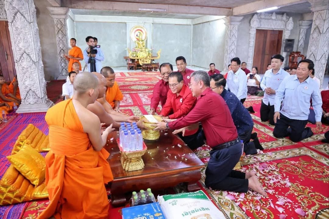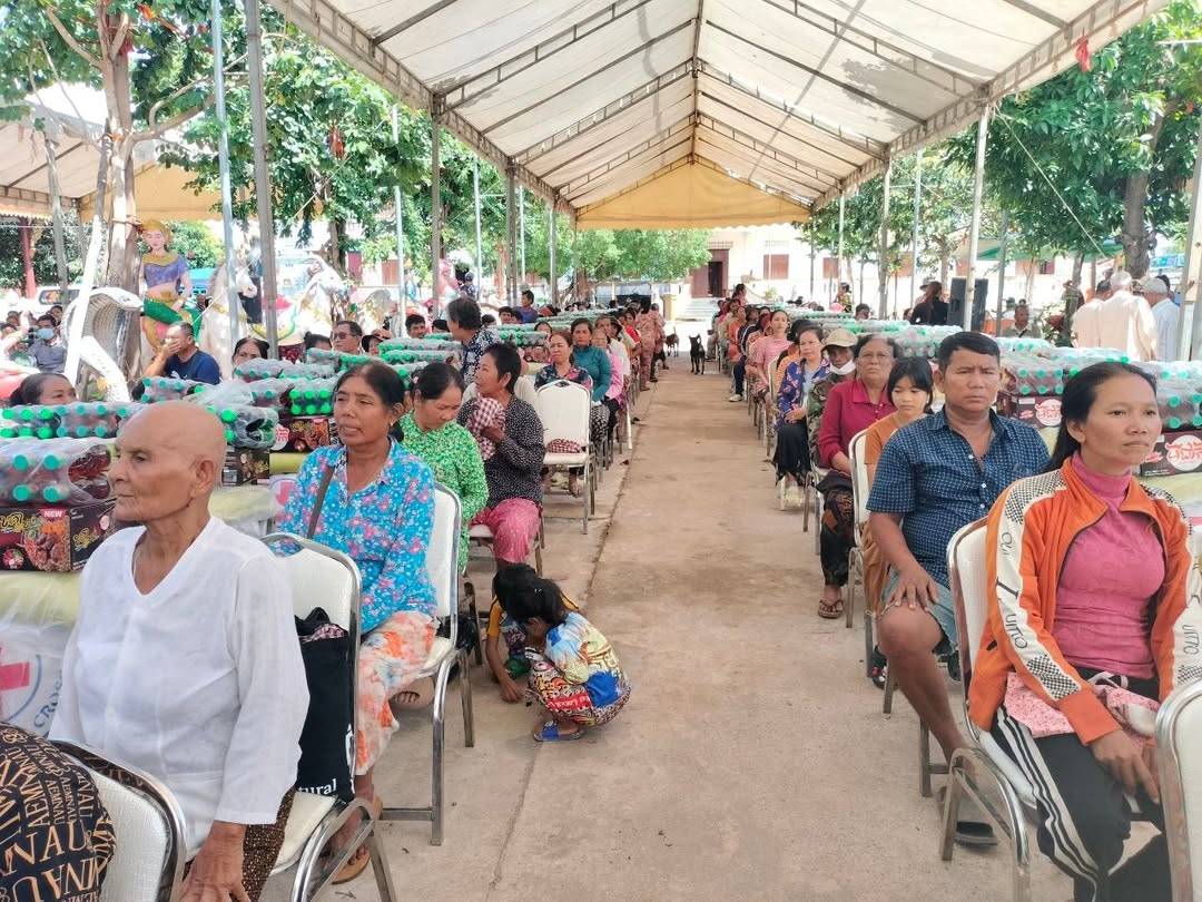 សូមបញ្ជាក់ជូនថា បន្ទាប់ពីប្រតិភូសាខា បានចុះពិនិត្យផ្ទាល់ដល់លំនៅឋានរបស់បងប្អូនរងគ្រោះរួចមក និងមុនពិធីសំណេះសំណាល ប្រតិភូសាខាក៏បានចូលក្រាបថ្វាយបង្គំព្រះចៅអធិការវត្ត និងព្រះសង្ឃនៅក្នុងវត្តកោះប្រាក់ទាំងមូល ដែលកំពុងគង់ស្នាក់នៅសិក្សារៀនសូត្រក្នុងទីអារាមនេះ ប្រមាណជាង ២០០អង្គ ព្រមទាំងបានប្រគេននូវទេយ្យវត្ថុរួមមាន អង្ករ ១០តោន ,មី ១០០កេស ,ទឹកត្រី ២០យួរ ,ទឹកស៊ីអុីវ ២០យួរ និងបច្ច័យ ចំនួន ១០លានរៀលផងដែរ៕