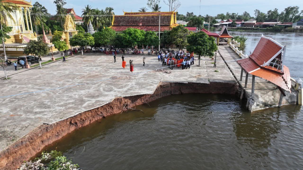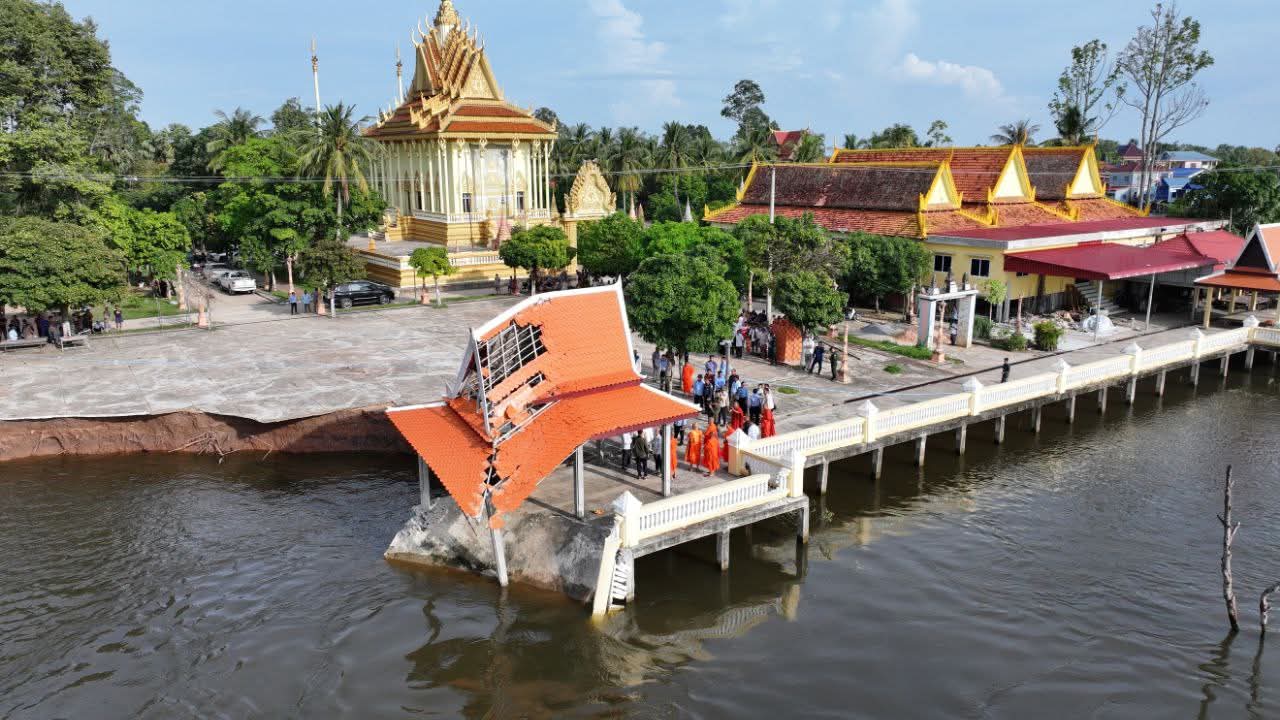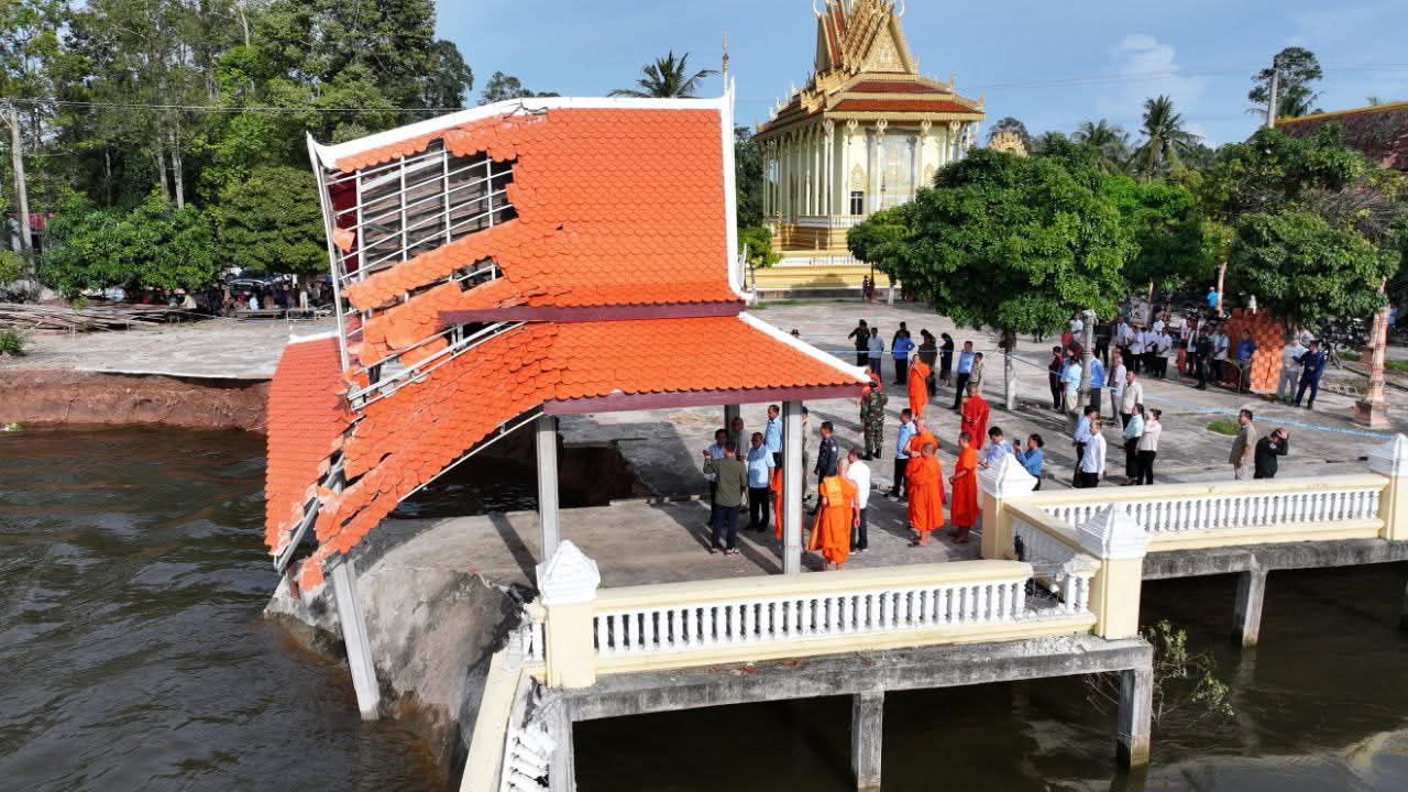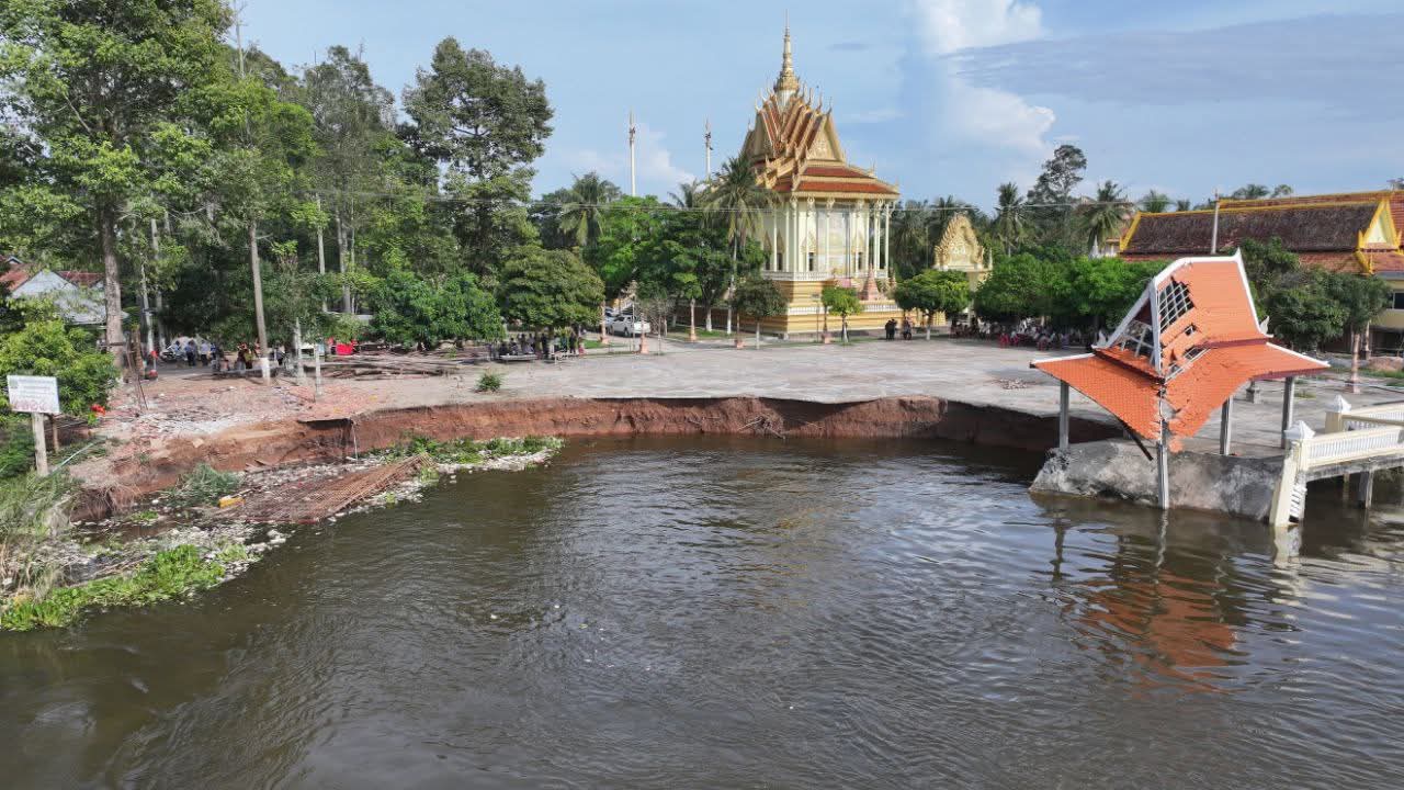 កណ្តាល៖ ច្រាំងមាត់ស្ទឹង ស្ថិតក្នុងឃុំលើកដែក រងការបាក់ស្រុត បណ្តាលមកពីទឹកទន្លេមេគង្គ និងទឹកទន្លេបាសាក់ហូរចូលតាមព្រែកលើកដែក មកប្រសព្វត្រង់ចំណុចមុខវត្តជ្រោយ ស្ថិតនៅក្នុងភូមិសាស្ត្រស្រុកកោះធំ នារសៀលថ្ងៃទី២១ ខែតុលា ឆ្នាំ២០២៥នេះត្រូវបាន ឯកឧត្តម គួច ចំរើន អភិបាល នៃគណៈអភិបាលខេត្តកណ្តាល ដឹកនាំមន្ទីរជំនាញ មន្ត្រីបច្ចេកទេស អាជ្ញាធរដែនដី ព្រះសង្ឃ និងប្រជាពលរដ្ឋចំណុះជើងវត្ត ចុះពិនិត្យជាក់ស្តែងទីតាំងមាត់ស្ទឹងលើកដែក ដែលរងការបាក់ច្រាំង នៅចំណុចវត្តជ្រោយ ភូមិអន្លង់ស្លាត ឃុំលើកដែក ស្រុកកោះធំ ខេត្តកណ្តាល។