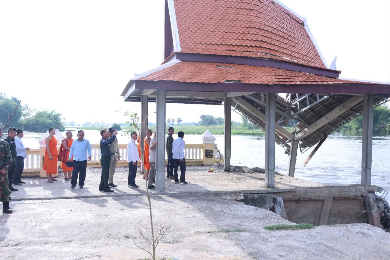 អាជ្ញាធរខេត្តកណ្តាល ចុះពិនិត្យការបាក់ច្រាំងមាត់ស្ទឹង ស្ថិតនៅចំណុចវត្តជ្រោយ ក្នុងឃុំលើកដែក ស្រុកកោះធំ