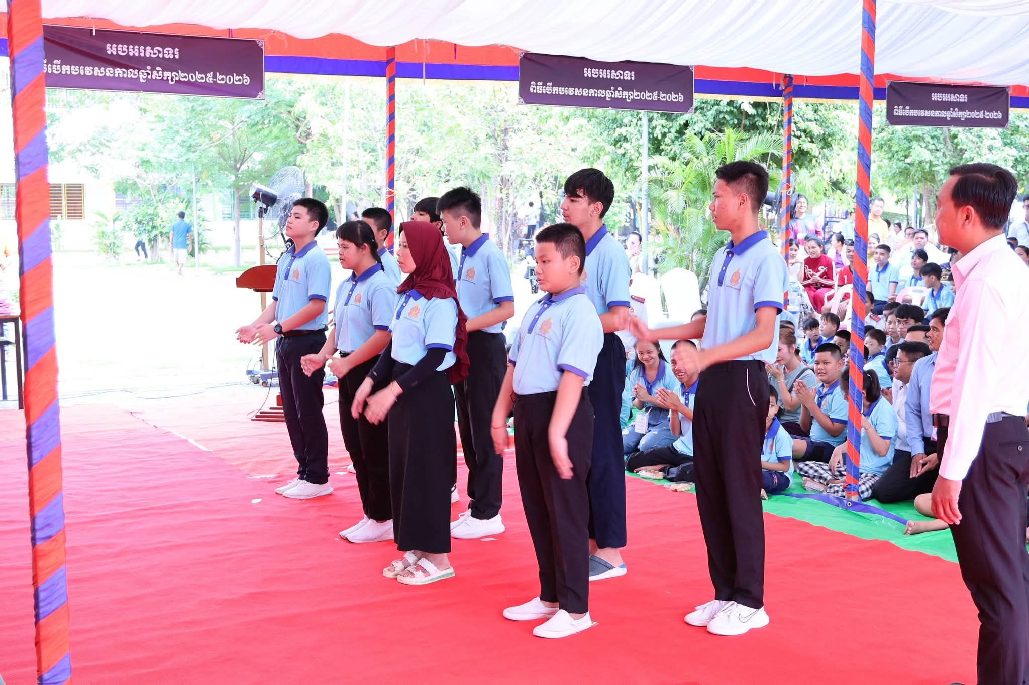 នាឱកាសនោះដែរ ឯកឧត្តមអភិបាលខេត្ត ក៏បានធ្វើការផ្ដាំផ្ញើដល់ក្មួយៗសិស្សានុសិស្ស ត្រូវខិតខំរៀនសូត្រ ប្រកបដោយភាពសប្បាយរីករាយ តាមរយៈការលេង តន្ត្រី សិល្បៈ ឬកីឡា និងស្វែងរកចំណង់ចំណូលចិត្តរបស់ខ្លួន។ ជាពិសេសចំពោះមាតាបិតា អាណាព្យាបាល សូមបង្កើតបរិយាកាសល្អនៅផ្ទះ និងខិតខំបង្ហាត់បង្រៀនជម្រុញក្មួយៗជាកូន ឱ្យចេះជួយធ្វើការងារផ្ទះ ការរៀបចំខ្លួន និងការនិយាយស្តីជាដើម សូមផ្តល់ក្តីស្រឡាញ់ និងការគាំទ្រដល់កូនជានិច្ច និងរក្សាទំនាក់ទំនងជាប់ជិតស្និទ្ធ ជាមួយលោកគ្រូ អ្នកគ្រូ ក្នុងការតម្រង់ទិសកូនទៅកាន់ទេពកោសល្យជំនាញរបស់ពួកគេ។