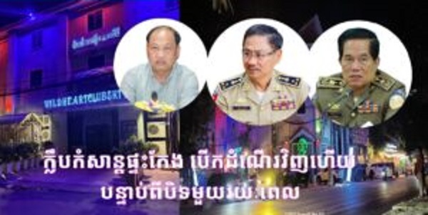 (ភ្នំពេញ )បន្ទាប់ពីក្រុមការងារអង្គភាពសារព័ត៌មានយើង បានធ្វើដំណើរឆ្លងកាត់ ក្លឹបកំសាន្តមួយកន្លែង ស្ថិតនៅ ផ្លូវ៩០ កែង ផ្លូវ ស៊ីសុវត្តិ សង្កាត់ស្រះចក ខណ្ឌដូនពេញ រាជធានីភ្នំពេញ ក្លិបវ៉ាយដ៍ហាតក្លឹប និង ខេធីវី សូមស្វាគមន៍ ក្លឹបកំសាន្តនាពេលរាត្រី ចាប់ផ្តើមបើកពីថ្ងៃទី២៣វិច្ឆិកាឆ្នាំ២០២៥នេះតទៅ អង្គភាពសារព័ត៌មានយើង សូមធ្វើសេចក្តីរាយការណ៍បឋមជា ជូនដល់ ប្រជាប្រិយ៍មិត្ត ជាតិនិងអន្តរជាតិ ដែលមានគោលបំណង ស្តាប់ភ្លេងកំដរអារម្មណ៍ បំបាត់ការនឿយហត់ នាពេលរាត្រី មានសន្តិសុខ ការពារសុវត្តិភាព ជាច្រើននាក់ក្នុងការជួយសម្របសម្រួល ទទួលភ្ញៀវយ៉ាងសកម្ម ដោយមិនអោយប្រជាប្រិយ៍មិត្ត ខកបំណងឡើយ ។