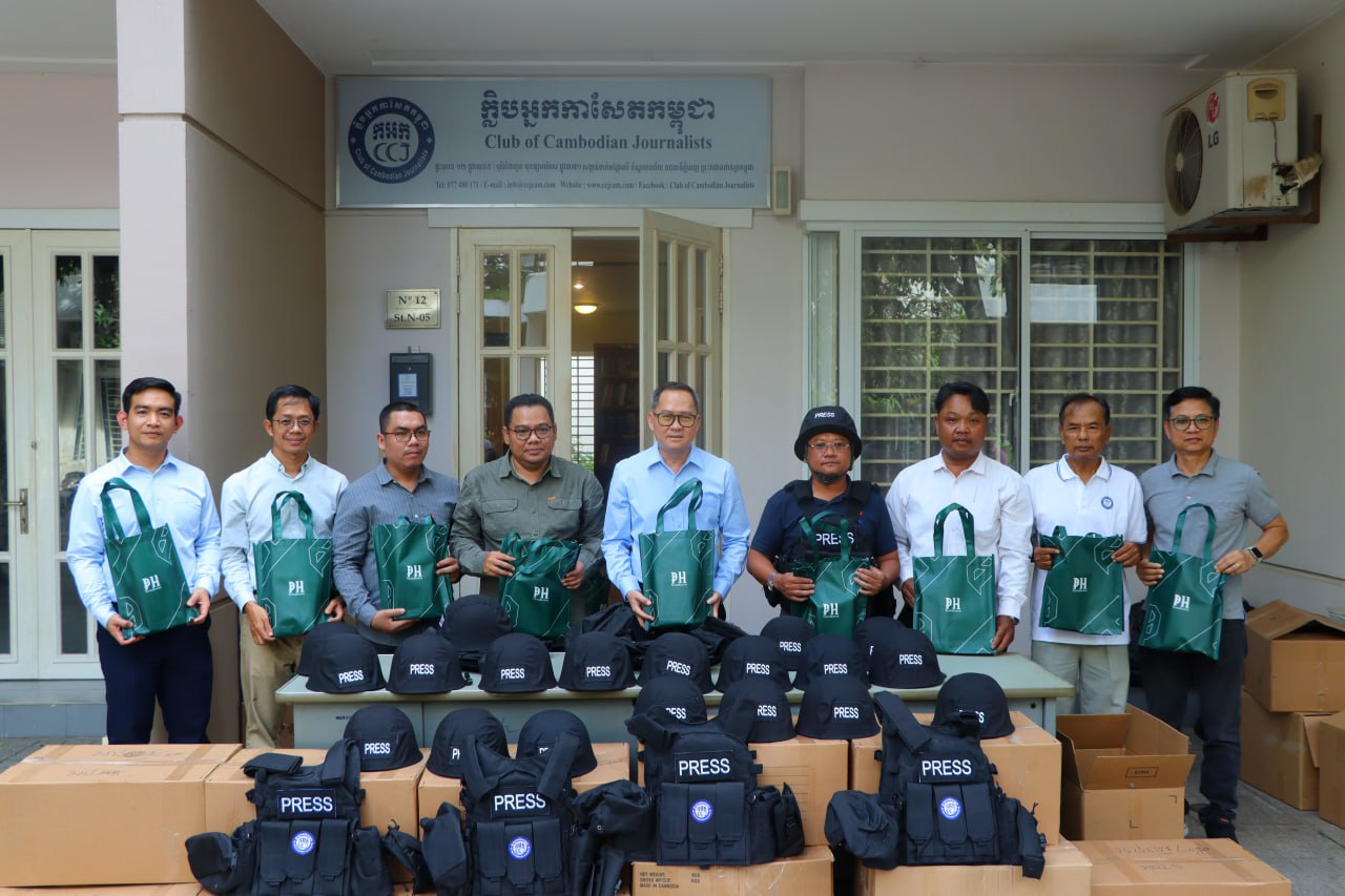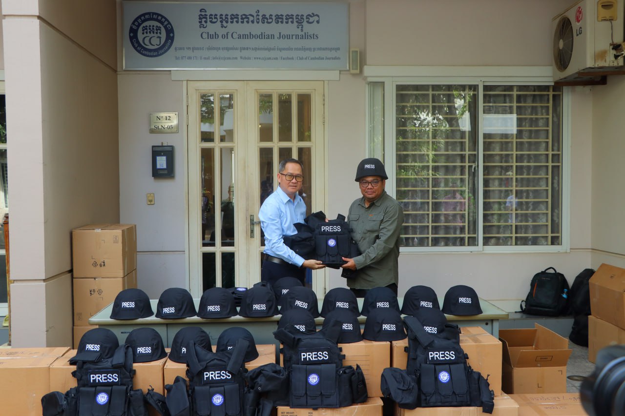 ភ្នំពេញ៖ ក្លិបអ្នកកាសែតកម្ពុជា (ក.អ.ក) នៅថ្ងៃទី២៦ ខែធ្នូ ឆ្នាំ២០២៥ បានចែកអាវក្រោះ និងមួកសុវត្ថិភាពដល់អ្នកសារព័ត៌មានចំនួន៥៧រូប មកពី៣៦ស្ថាប័ន ដើម្បីជួយការពារសុវត្ថិភាពដល់អ្នកសារព័ត៌មានដែលកំពុងបំពេញការងារព័ត៌មាននៅតាមបណ្តោយព្រំដែនកម្ពុជា-ថៃ និងទីកន្លែងងាយរងគ្រោះដទៃទៀតក្នុងអំឡុងពេលដែលទាហានថៃបានវាយប្រហារមកលើកម្ពុជា៕