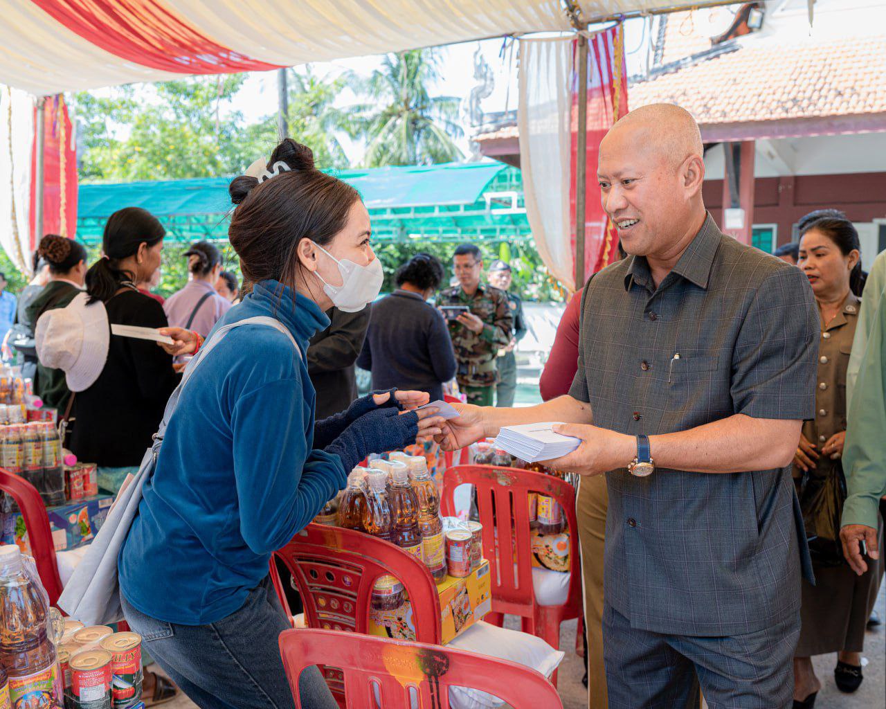 តាកែវ ៖ អភិបាលខេត្តតាកែវ បានអញ្ជើញជួបសំណេះសំណាល សាកសួរសុខទុក្ខ នាំយកគ្រឿងឧបភោគបរិភោគ និងថវិកាមួយចំនួនជូនក្រុមគ្រួសារវីរៈកងទ័ព និងគ្រួសារស៊ីវិលភៀសសឹក ចំនួន២៧៩គ្រួសារ មកពីតាមបណ្តាលខេត្តនានា ជាប់ព្រំដែនកម្ពុជា-ថៃ មកស្នាក់នៅ ជាបណ្តោះអាសន្នក្នុងមូលដ្ឋានស្រុកព្រៃកប្បាស ខេត្តតាកែវ នាព្រឹកថ្ងៃពុធ ទី៣១ ខែធ្នូ ឆ្នាំ២០២៥។