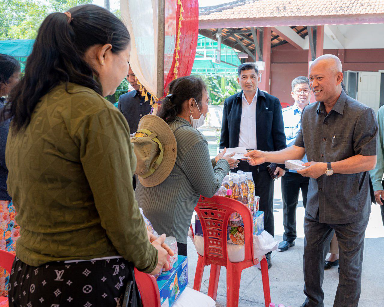 អភិបាលខេត្តតាកែវ អញ្ជើញជួបសំណេះសំណាល សាកសួរសុខទុក្ខ នាំយកគ្រឿងឧបភោគបរិភោគ និងថវិកាមួយចំនួនជូនក្រុមគ្រួសារវីរៈកងទ័ព និងគ្រួសារស៊ីវិលភៀសសឹក ចំនួន២៧៩គ្រួសារ