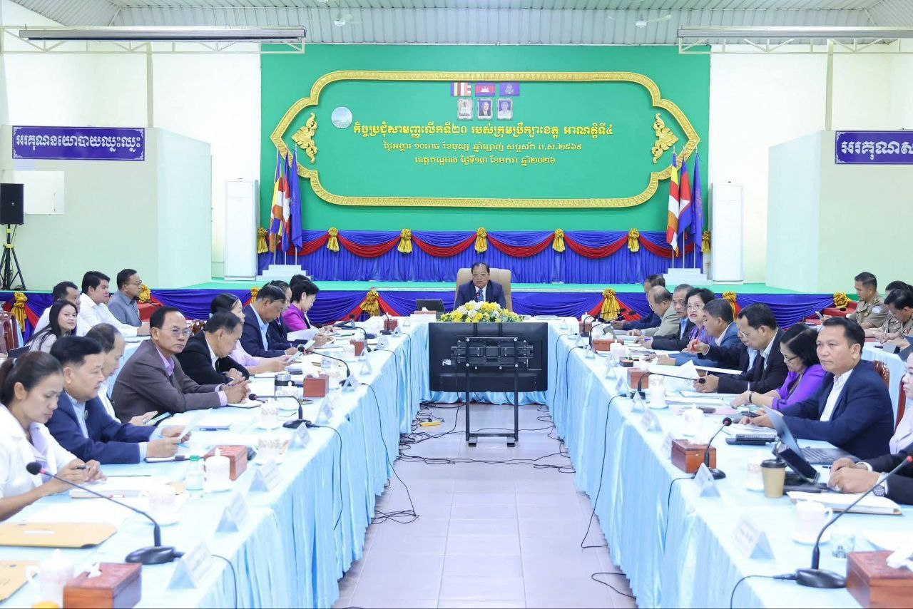 (ខេត្តកណ្តាល) នៅថ្ងៃអង្គារ ១០រោច ខែបុស្ស ឆ្នាំម្សាញ់ សប្តស័ក ពុទ្ធសករាជ ២៥៦៩ ត្រូវនិងថ្ងៃទី១៣ ខែមករា ឆ្នាំ២០២៦នេះ ឯកឧត្តម នូ សាខន ប្រធានក្រុមប្រឹក្សាខេត្ត និងឯកឧត្តម តាំង ម៉េងលាន អភិបាលរងខេត្តតំណាង ឯកឧត្តម គួច ចំរើន អភិបាល នៃគណៈអភិបាលខេត្តកណ្តាល បានដឹកនាំកិច្ចប្រជុំ សាមញក្រុមប្រឹក្សាខេត្តលើកទី២០ អាណត្តិទី៤ ឆ្នាំ២០២៦ ដោយមានការអញ្ជើញចូលរួមពី ឯកឧត្តម លោកជំទាវ សមាជិកក្រុមប្រឹក្សាខេត្ត អភិបាលរងខេត្ត កងកម្លាំងប្រដាប់អាវុធទាំង៣ លោក លោកស្រី ប្រធាន អនុប្រធានមន្ទីរអង្គភាពនានាជំវិញខេត្ត នាយក នាយករងរដ្ឋបាលសាលាខេត្ត និងនាយក នាយករងទីចាត់ការអង្គភាពចំណុះសាលាខេត្តជាច្រើនរូប។