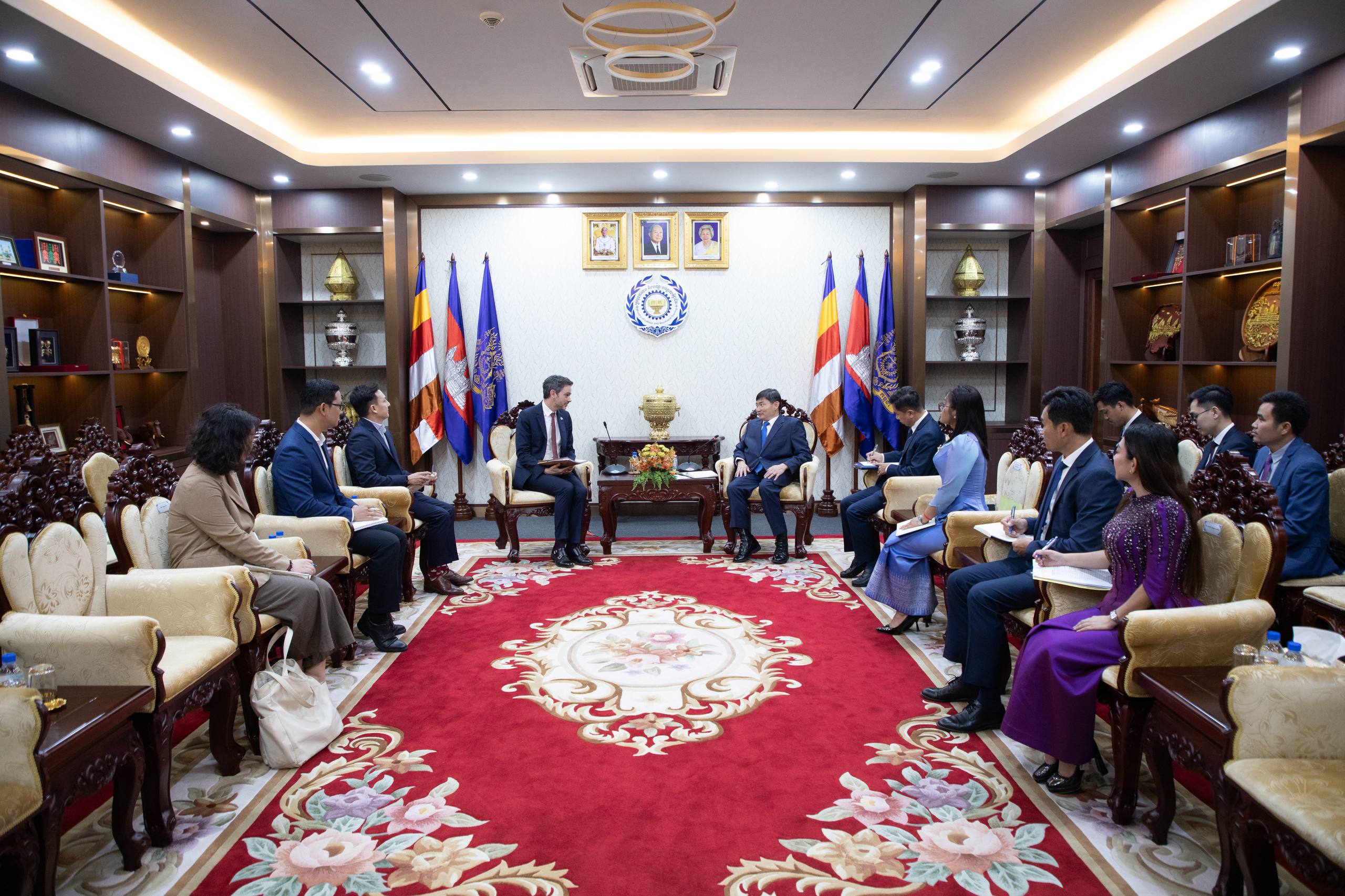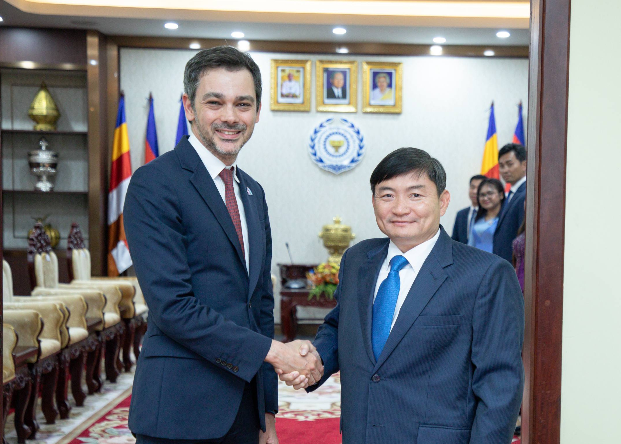 (ភ្នំពេញ)៖ នាទីស្តីការក្រសួង រសៀលថ្ងៃអង្គារ ទី២៧ ខែមករា ឆ្នាំ២០២៦ ឯកឧត្តម ហេង សួរ រដ្ឋមន្ត្រីក្រសួងការងារ និងបណ្តុះបណ្តាលវិជ្ជាជីវៈ បានទទួលជួបសម្តែងការគួរសម និងពិភាក្សាការងារជាមួយ ឯកឧត្តម Flavio Bonetti តំណាងអង្គការយូណេស្កូ (UNESCO) ថ្មីប្រចាំកម្ពុជា ដើម្បីពង្រឹងកិច្ចសហប្រតិបត្តិការលើវិស័យការងារ និងការបណ្ដុះបណ្ដាលបច្ចេកទេស និងវិជ្ជាជីវៈឱ្យកាន់តែមានសក្តានុពល។